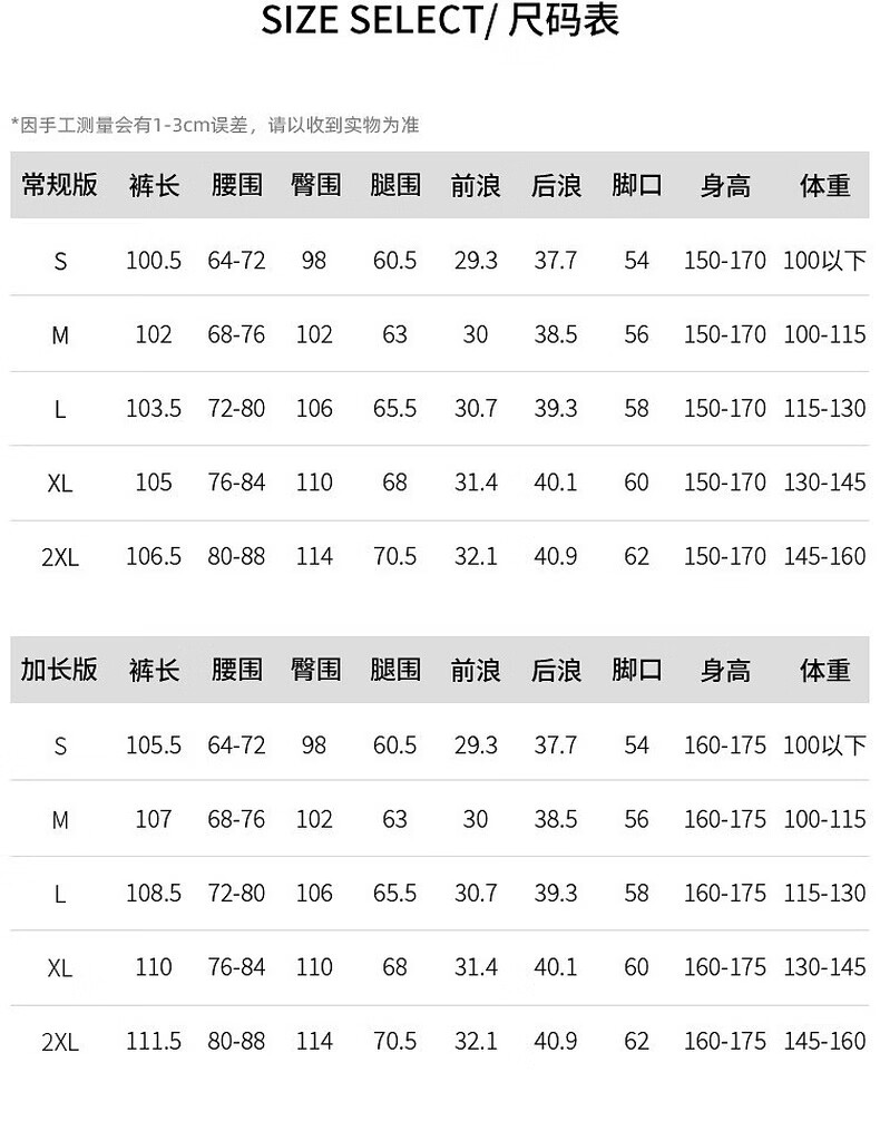 Outseam (cm) 99 cm 101.5 cm 104 cm 106.5 cm 109 cm