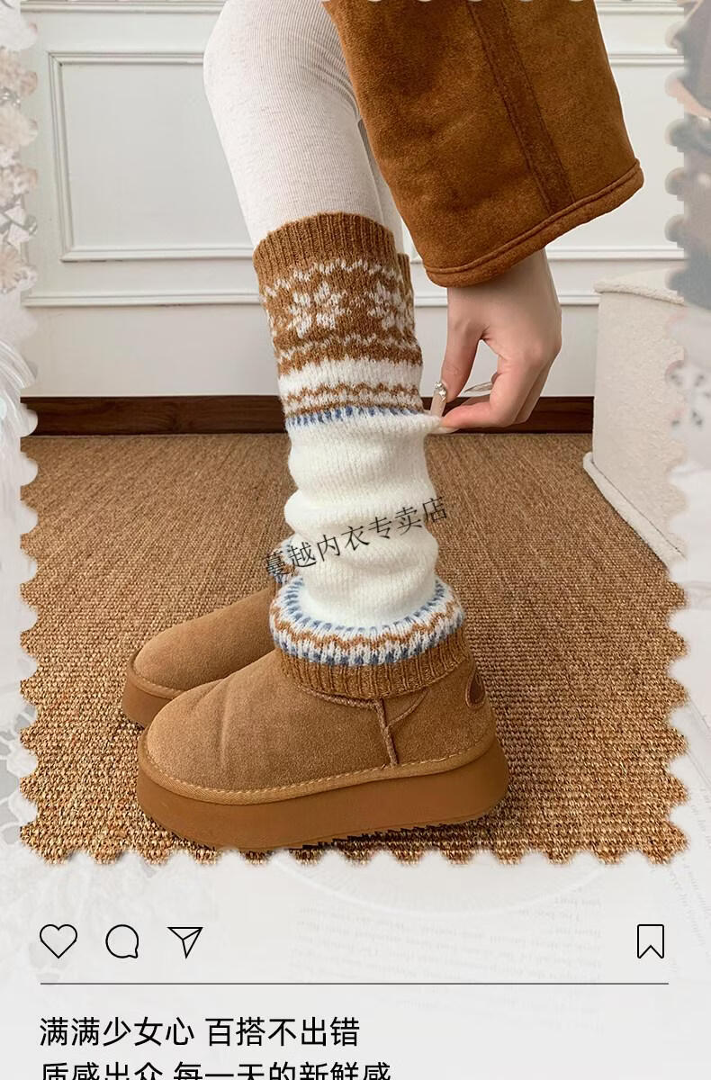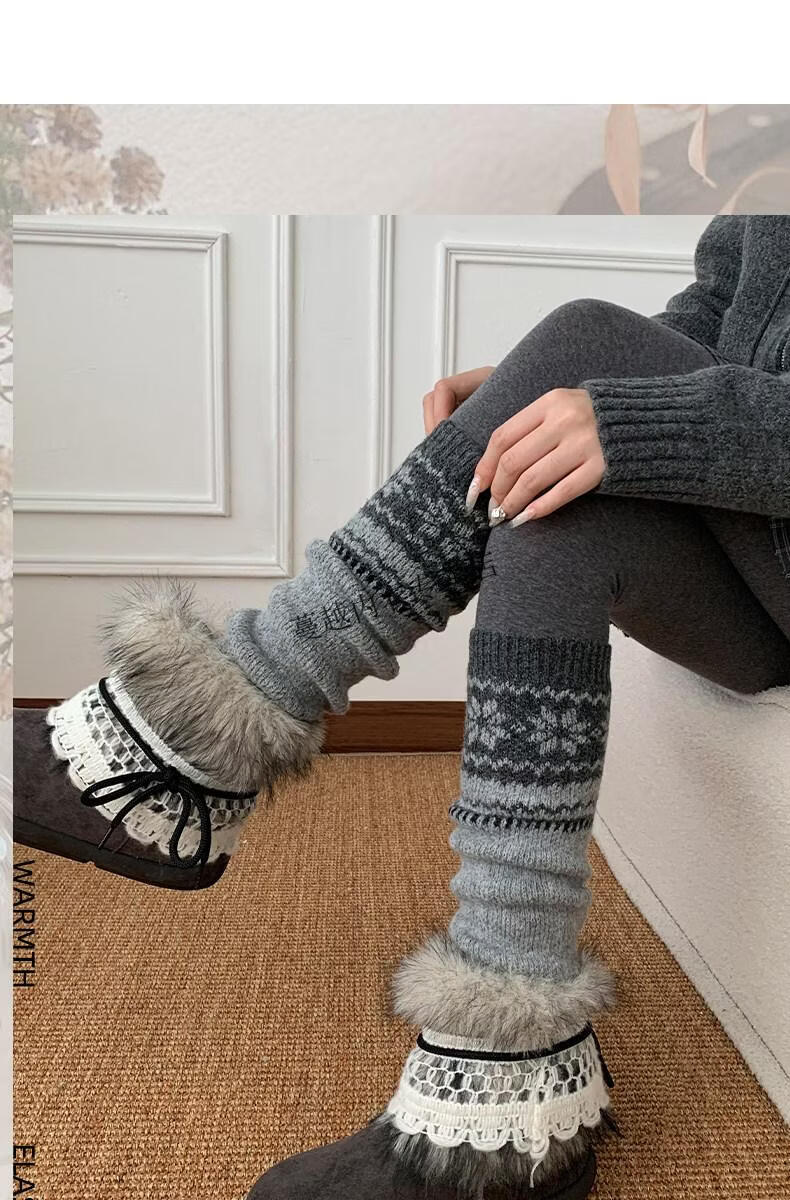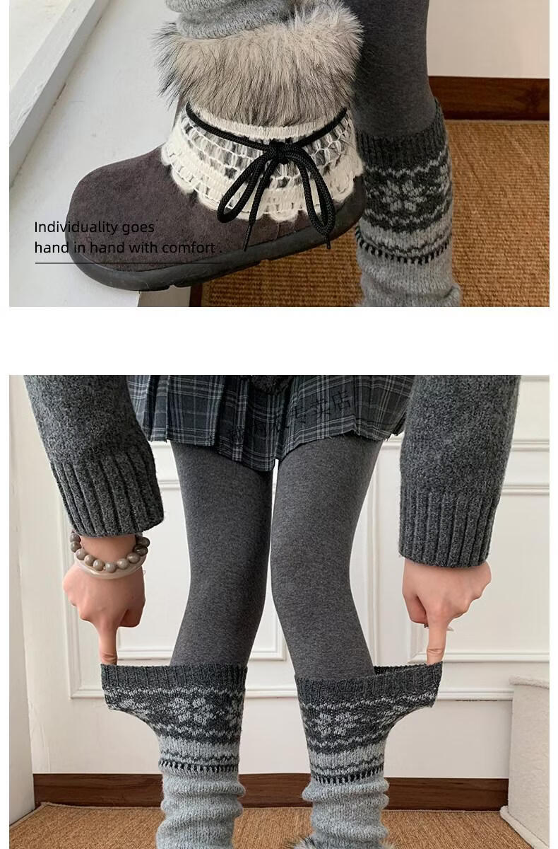 Modal Fair Isle heap socks autumn and winter knitted gray calf socks y2k Christmas snowflake mid-calf leg sleeves for women to keep warm gray one size