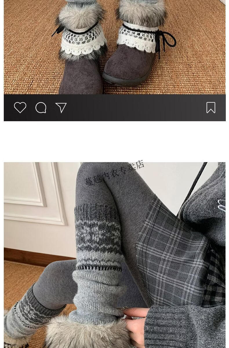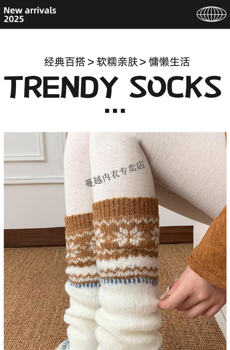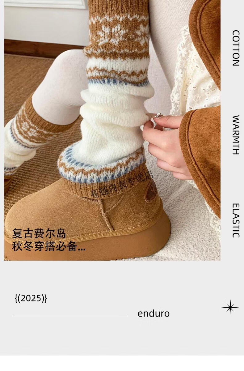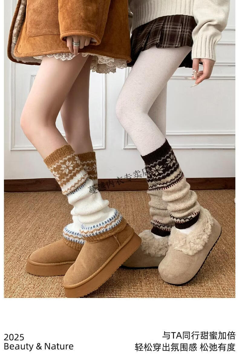 Modal Fair Isle heap socks autumn and winter knitted gray calf socks y2k Christmas snowflake mid-calf leg sleeves for women to keep warm gray one size