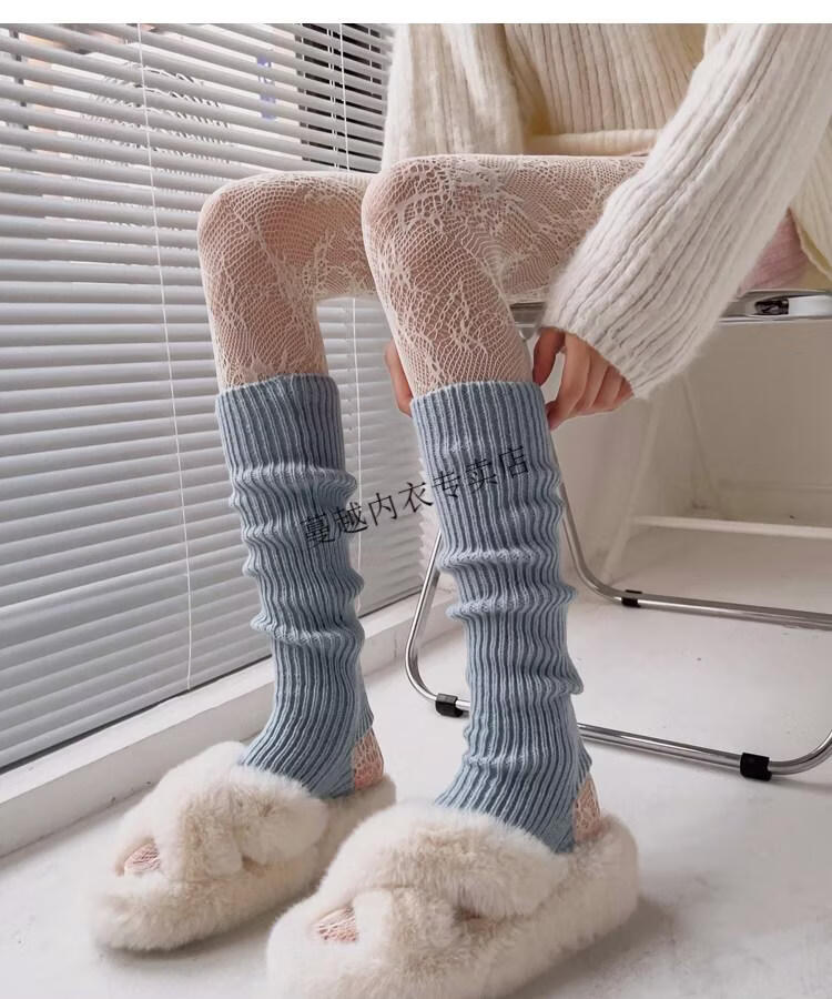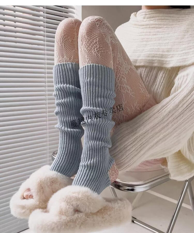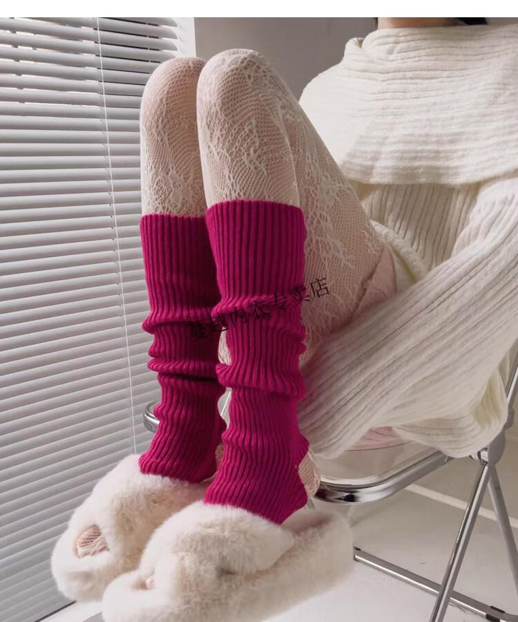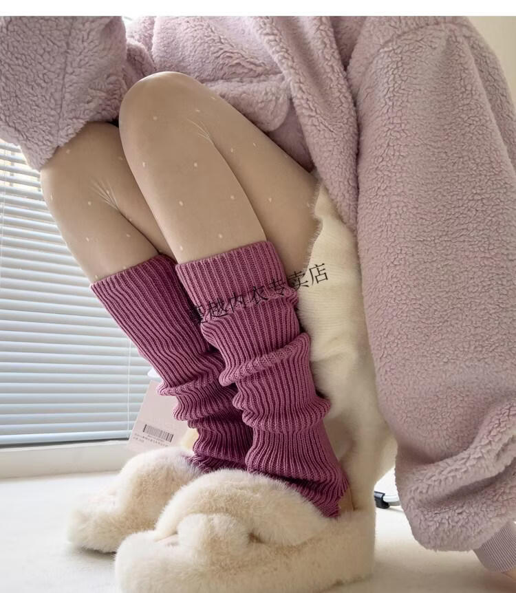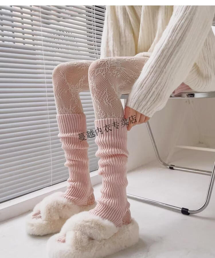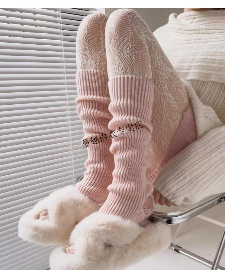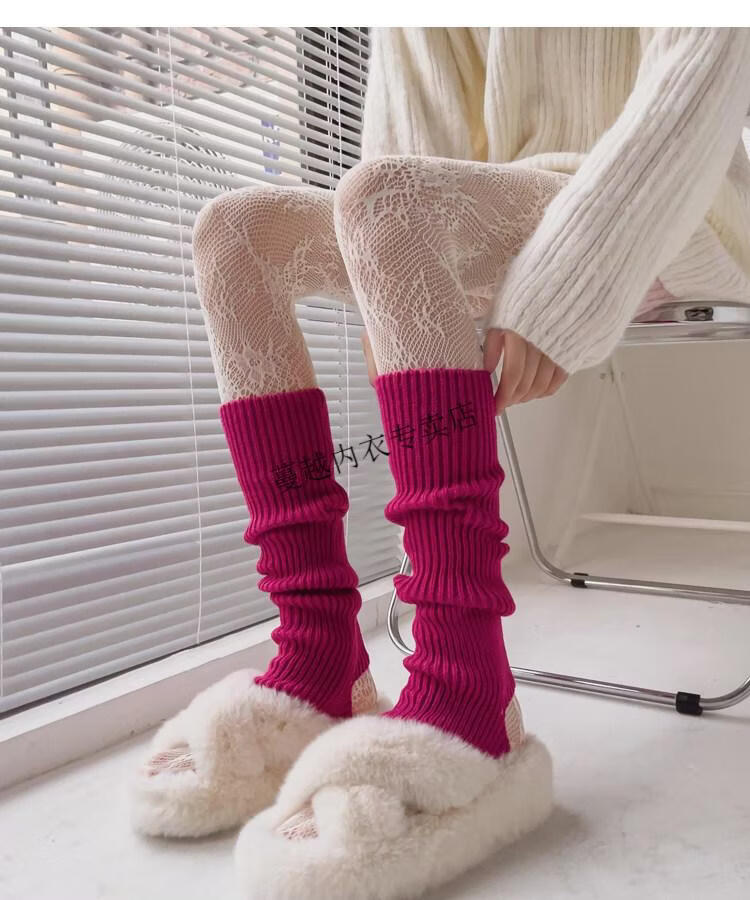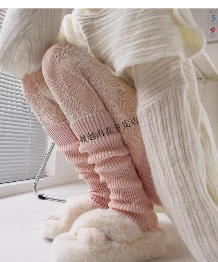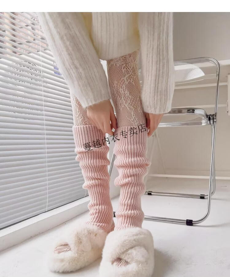 Modal pink socks for women in autumn and winter thickened warm knitted leg covers black mid-calf pile socks Japanese JK white calf socks light pink one size