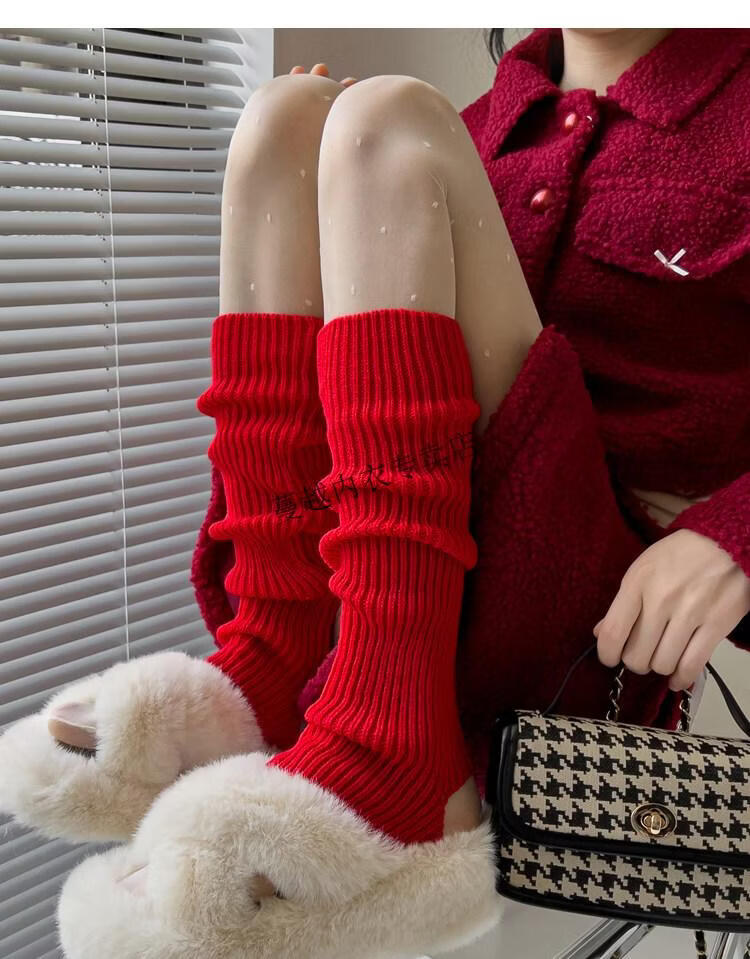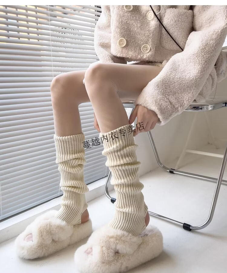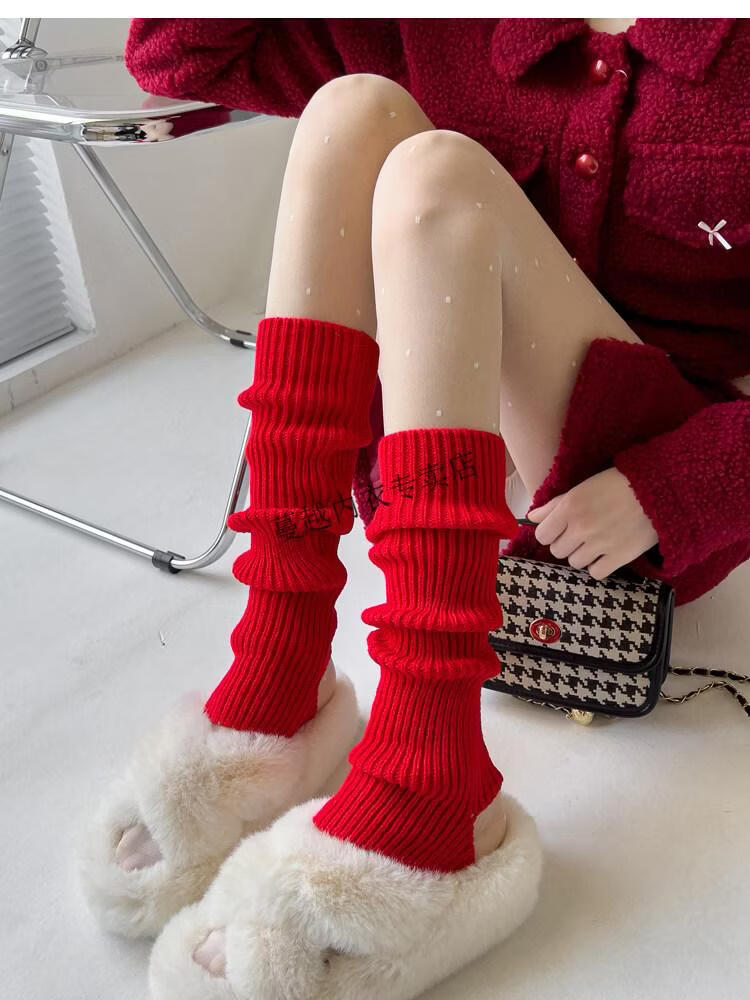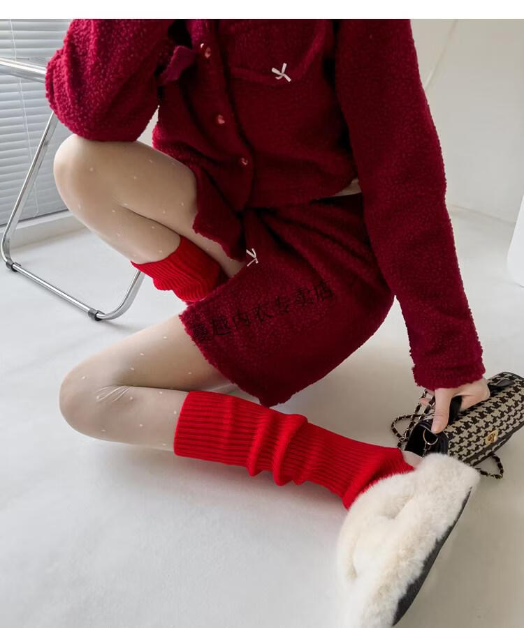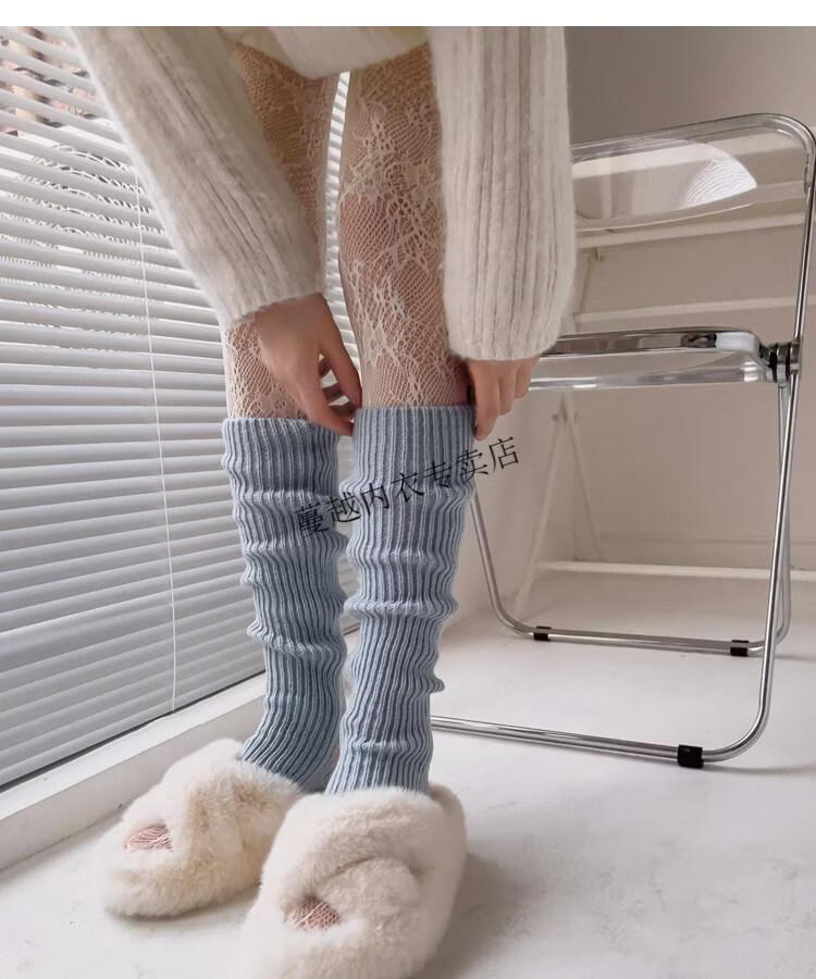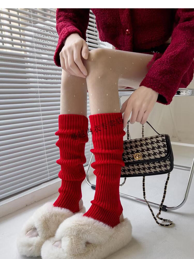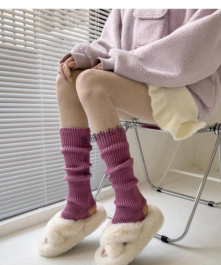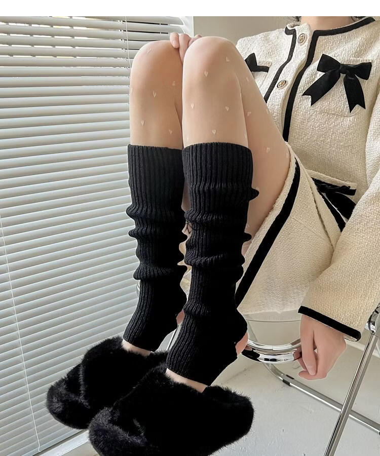 Modal pink socks for women in autumn and winter thickened warm knitted leg covers black mid-calf pile socks Japanese JK white calf socks light pink one size
