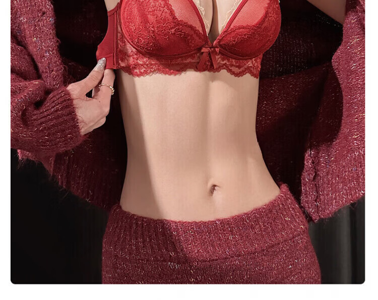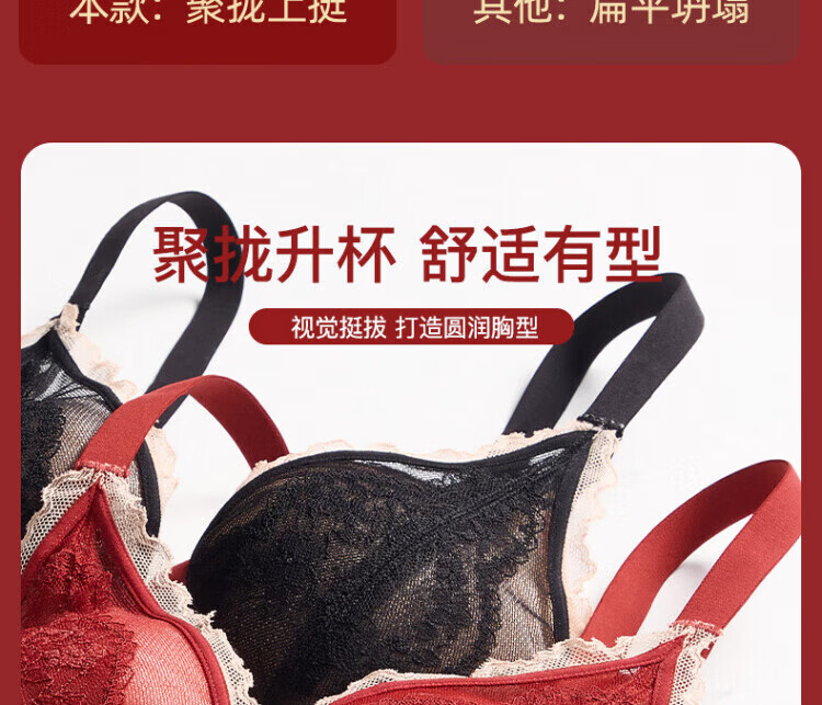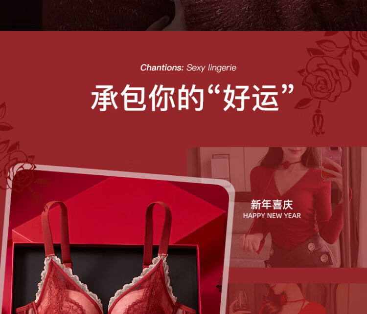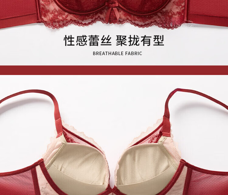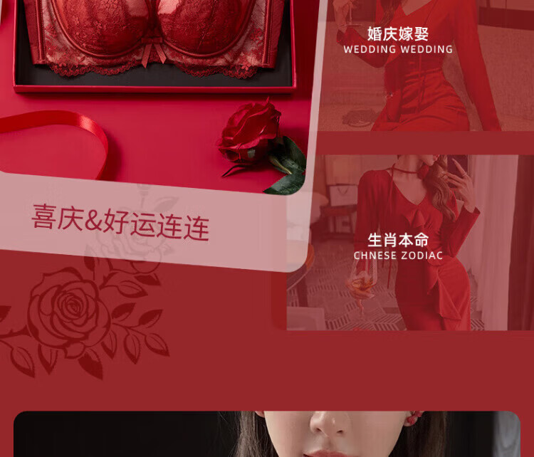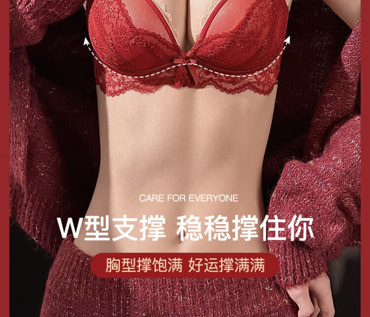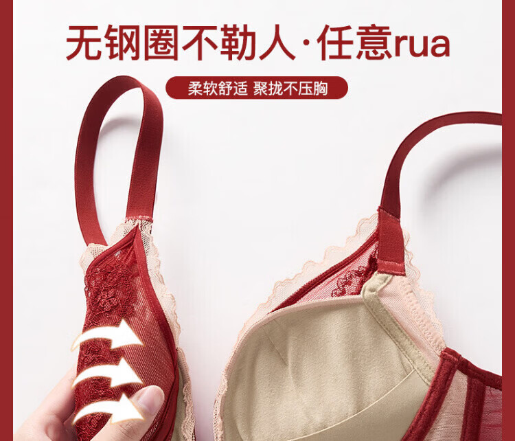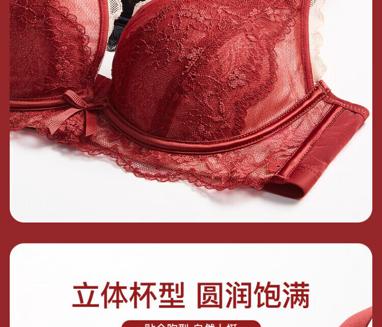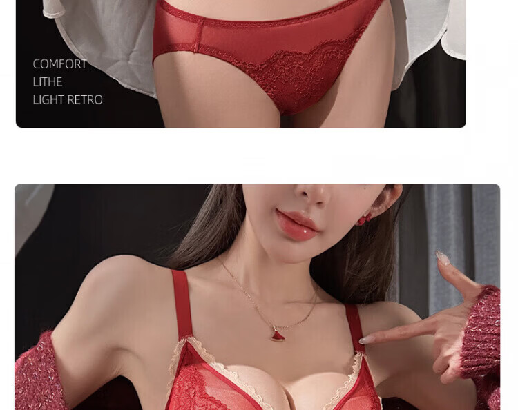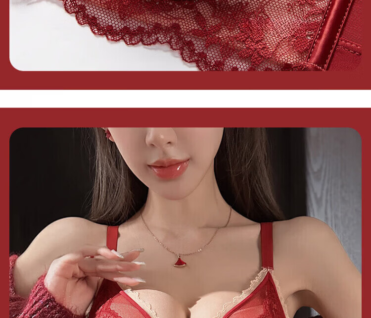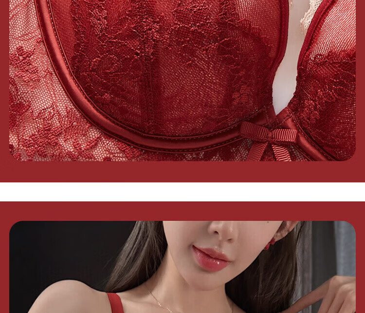 Agent Provocateur Light Luxury Brand Year of the Horse Benmingnian Underwear Women's Red Small Breast Push-Up Support Secondary Breast Sexy Lace Bra Set Red-Set 70A 32 (Koi Benming Red)