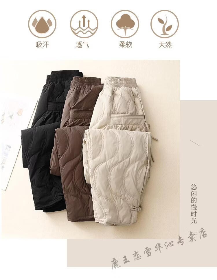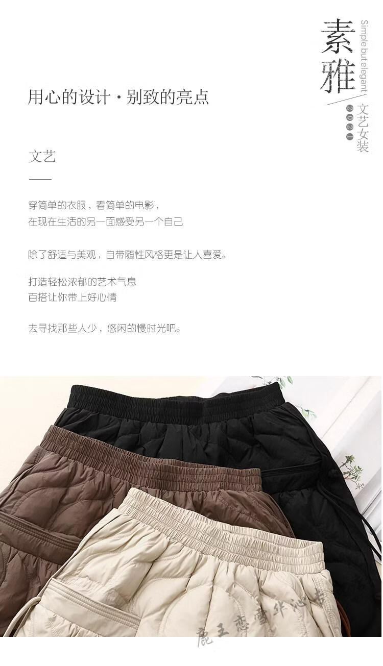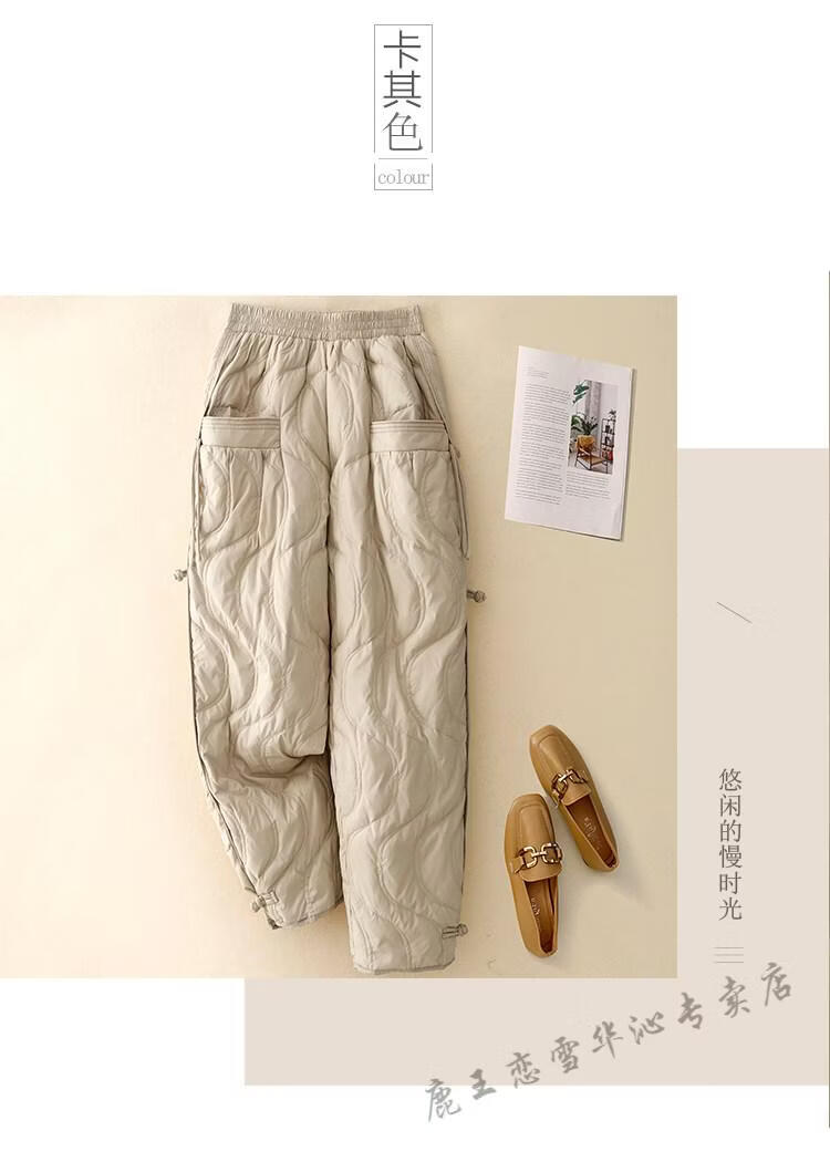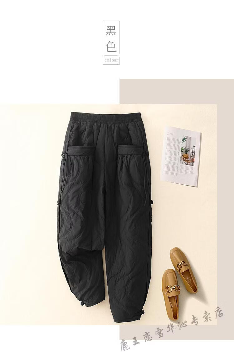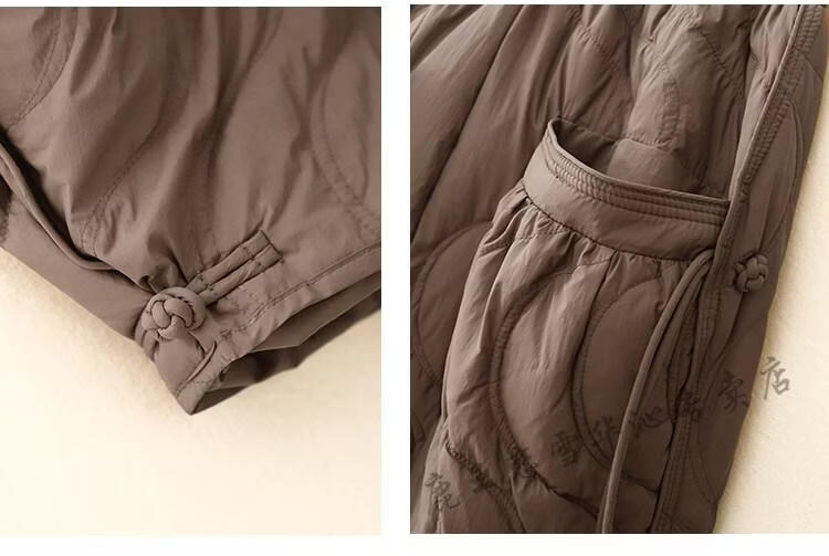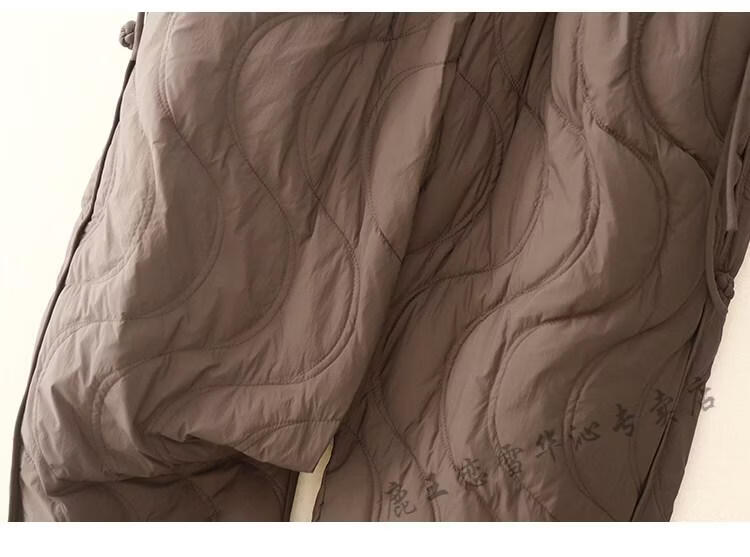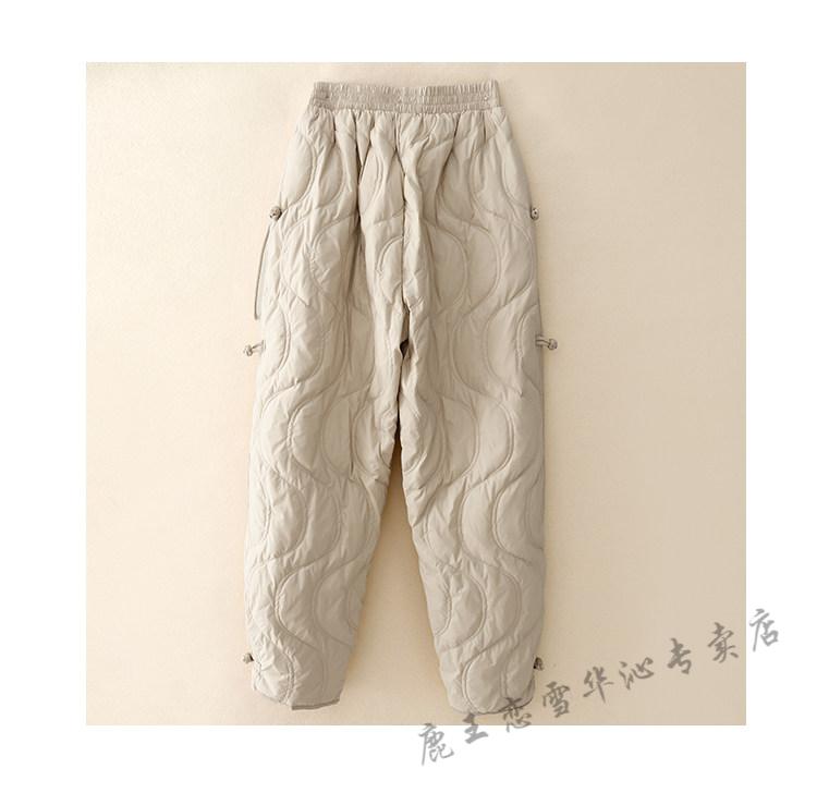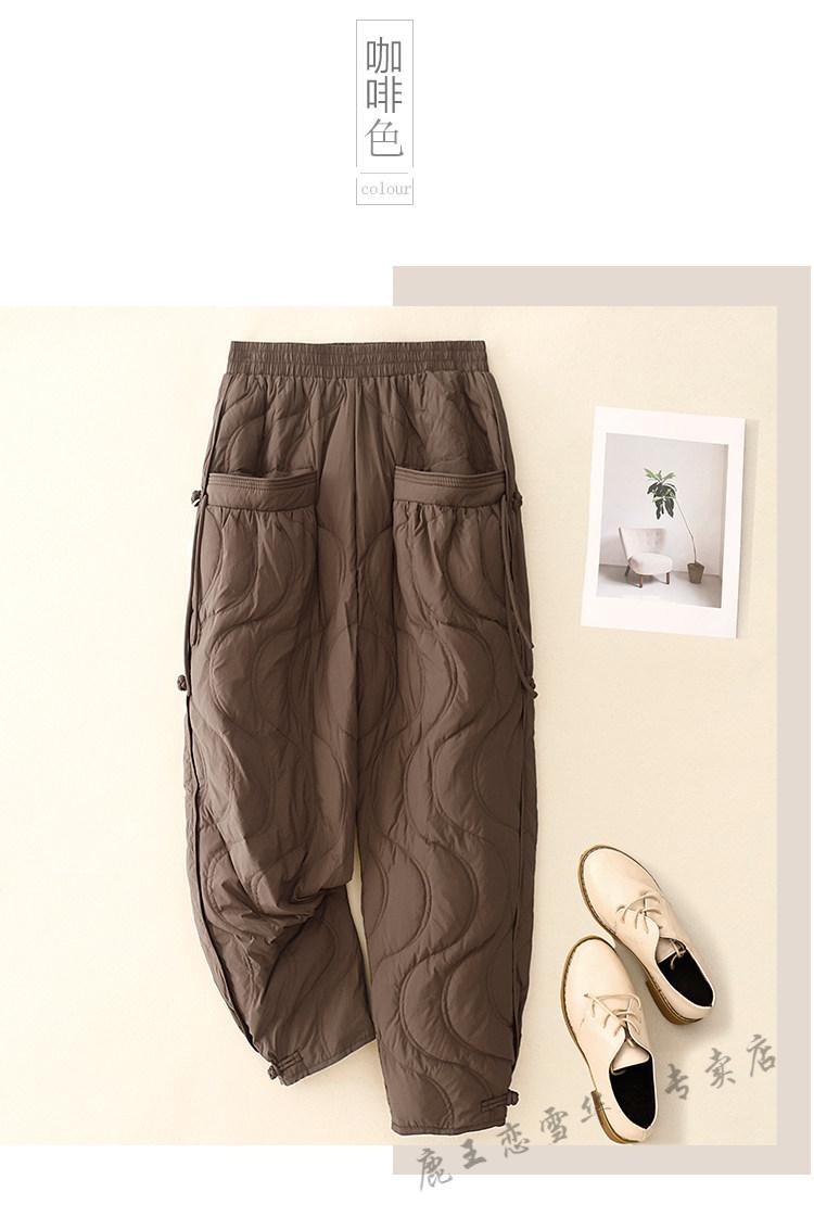 Lu Wang Lianxue retro buckle down cotton pants for women winter outer wear warm bloomers harem casual pants coffee color M