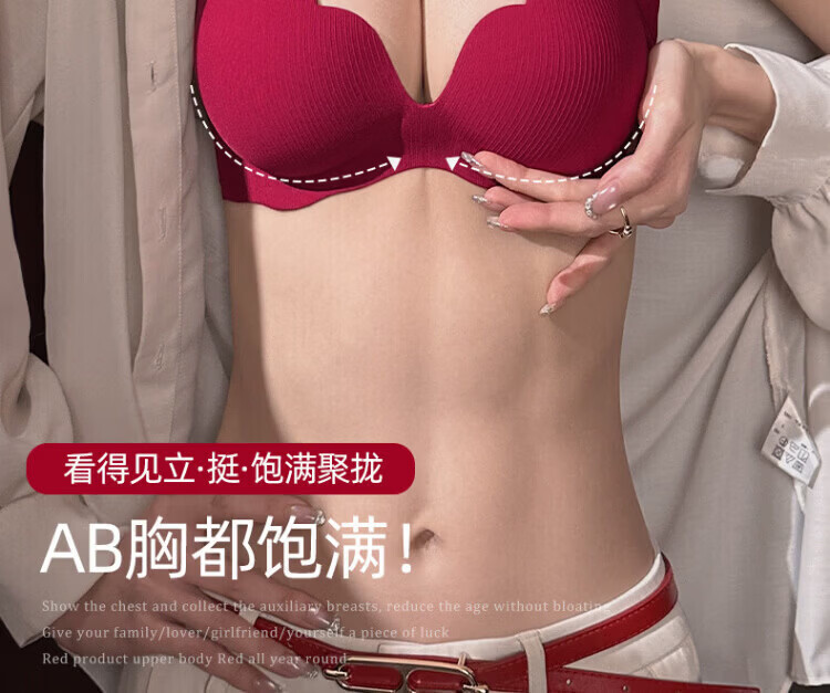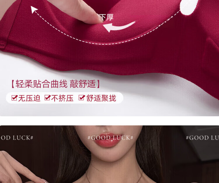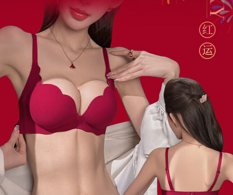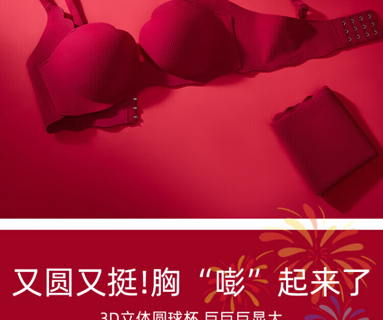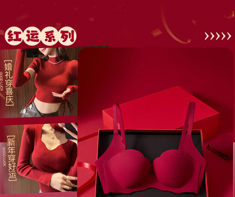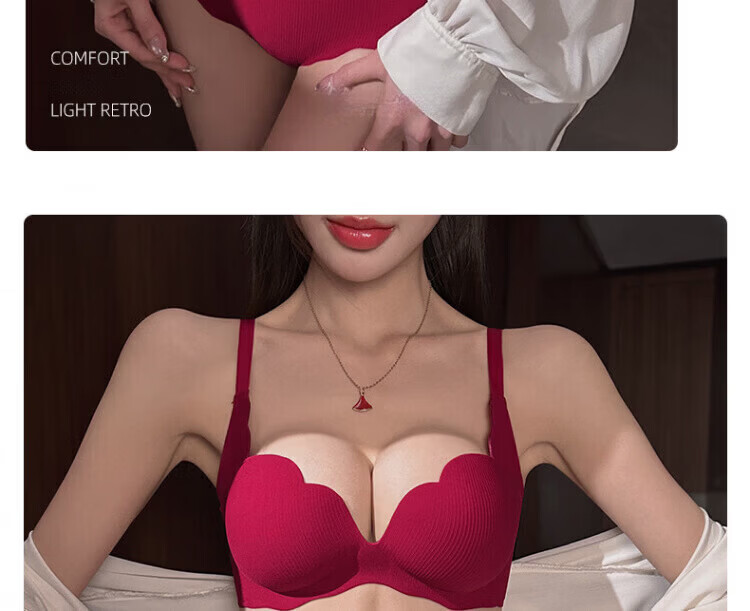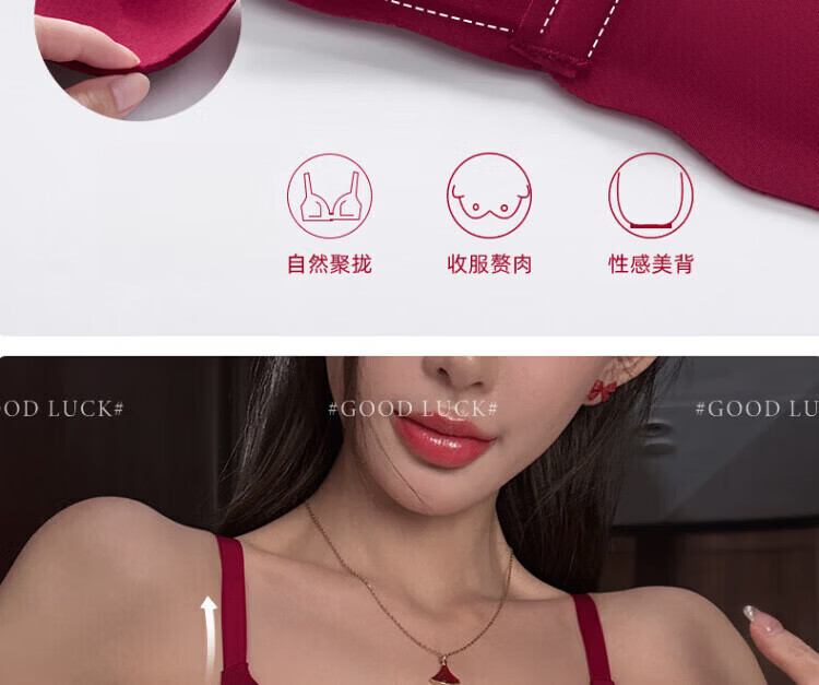 Agent Provocateur Light Luxury Brand Year of the Horse Ben Ming Nian Underwear for Women Push Up Small Breasts to Show Bigger Side Breasts Anti-Sagging Seamless Bra Set Burgundy - Set 70A 32 (Koi Ben Ming Nian)