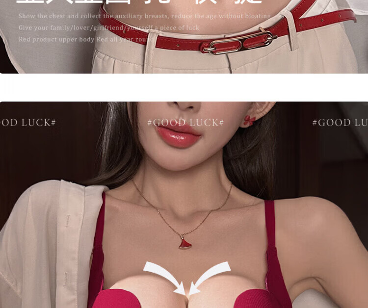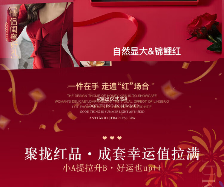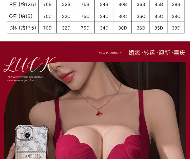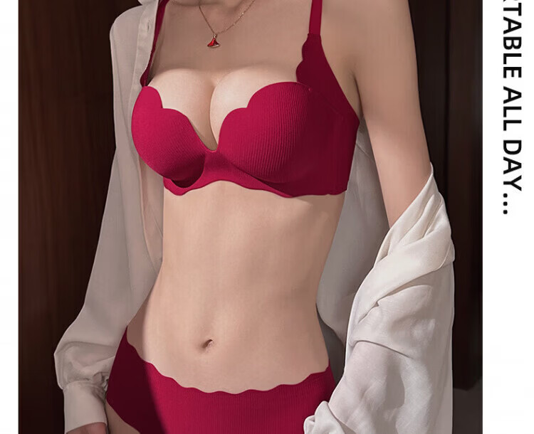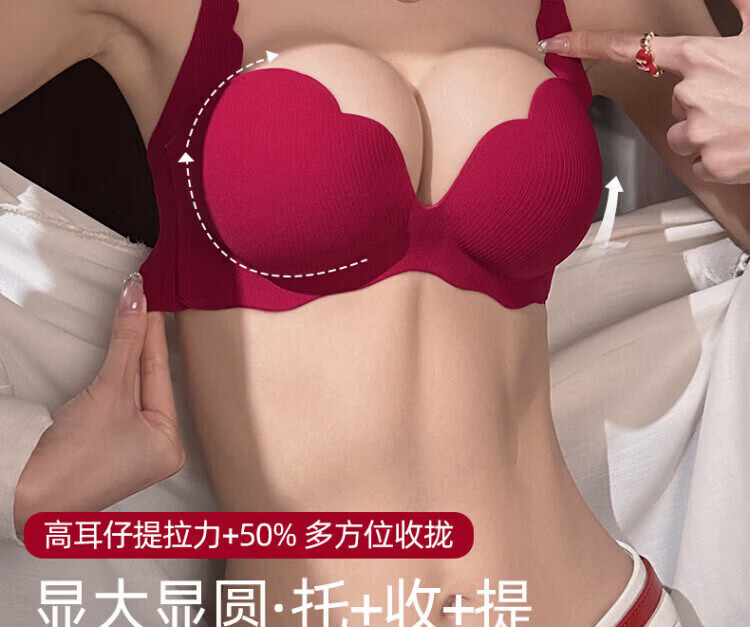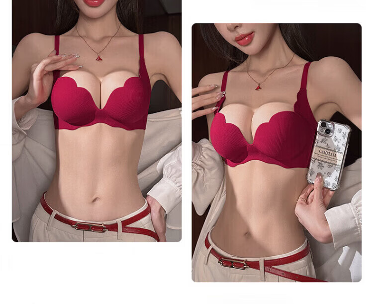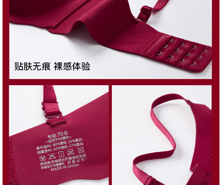 Agent Provocateur Light Luxury Brand Year of the Horse Ben Ming Nian Underwear for Women Push Up Small Breasts to Show Bigger Side Breasts Anti-Sagging Seamless Bra Set Burgundy - Set 70A 32 (Koi Ben Ming Nian)