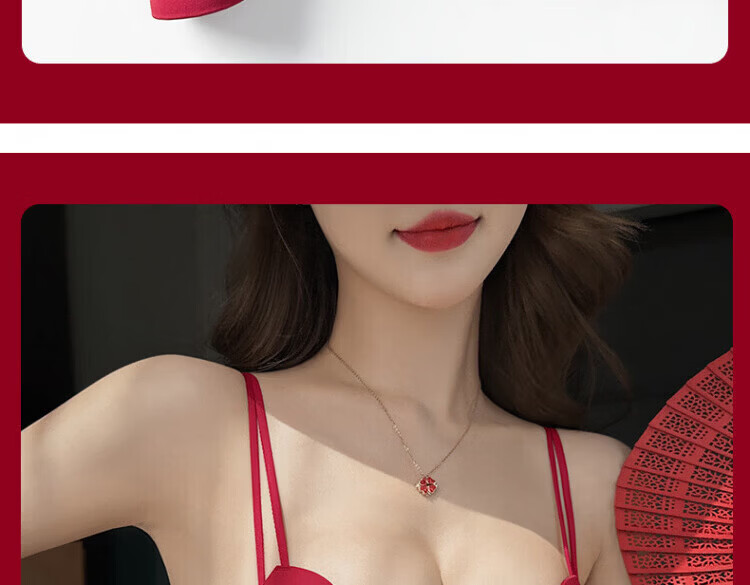 Agent Provocateur Light Luxury Brand Year of the Horse Benmingnian Underwear Women's Red Small Breast Gathering Anti-Sagging Secondary Breasts Sexy Bra Set Red-Set 70A 32 (Koi Benmingnian)