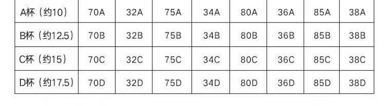 China (cm) 160-165/84-86 165-170 / 88-90 167-172 / 92-96 168-173 / 98-102 170-176 / 106-110