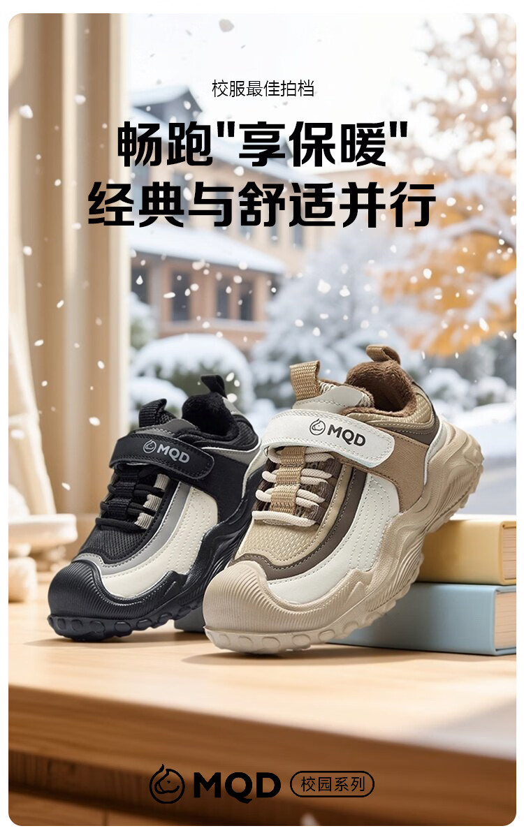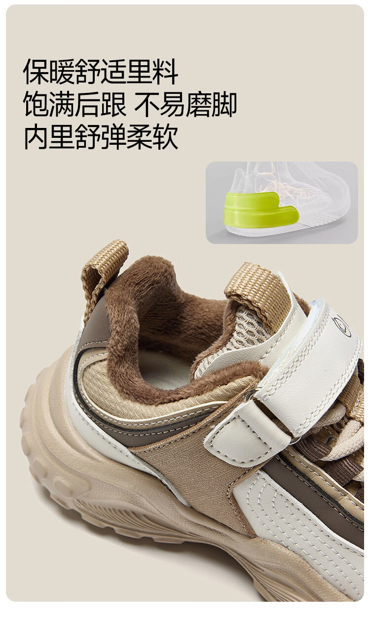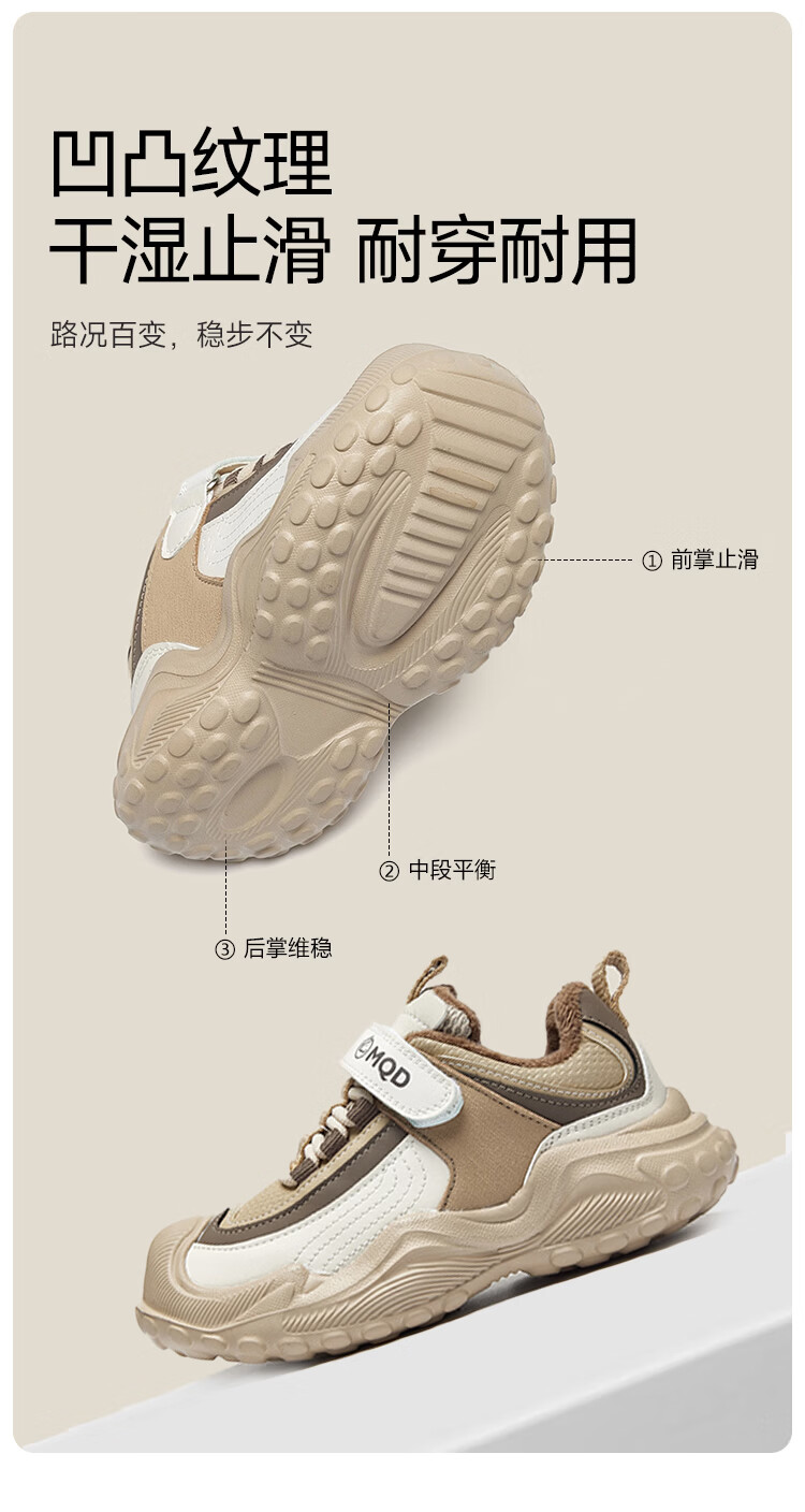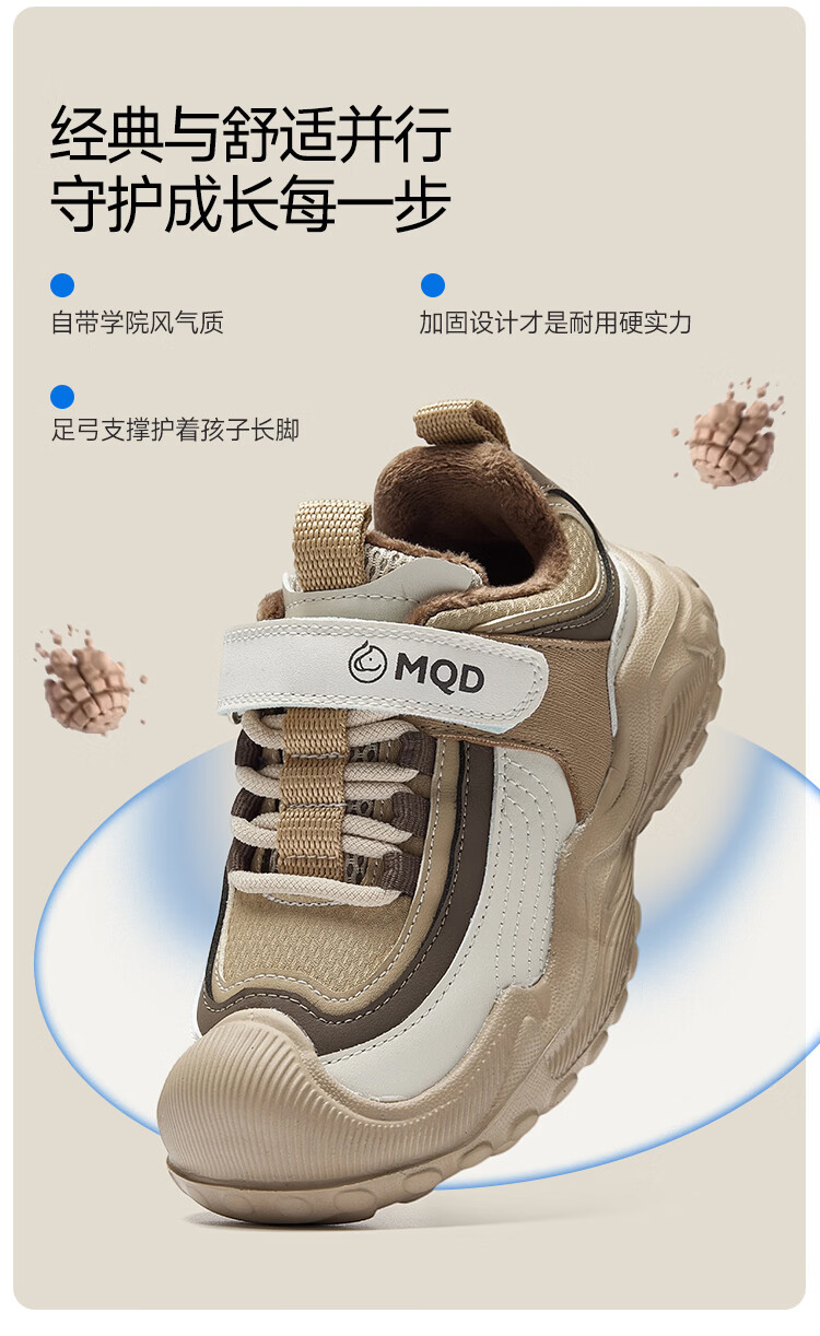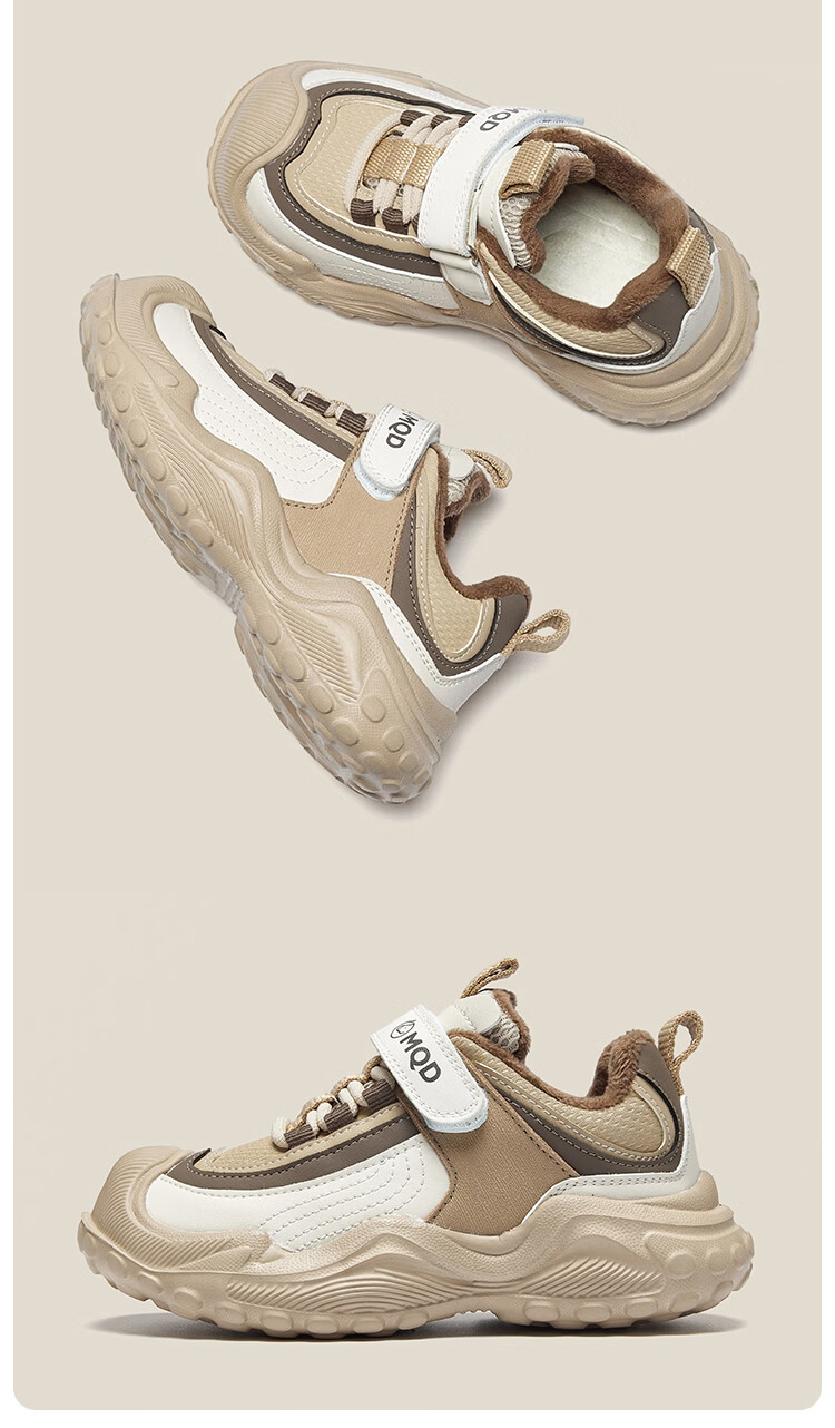 MQD children's sports shoes 2025 winter plus velvet warm cotton shoes for boys and girls non-slip campus shoes Khaki 31 inner length 19.7CM