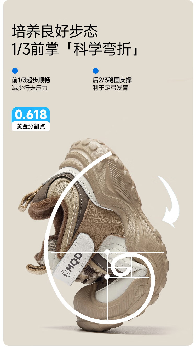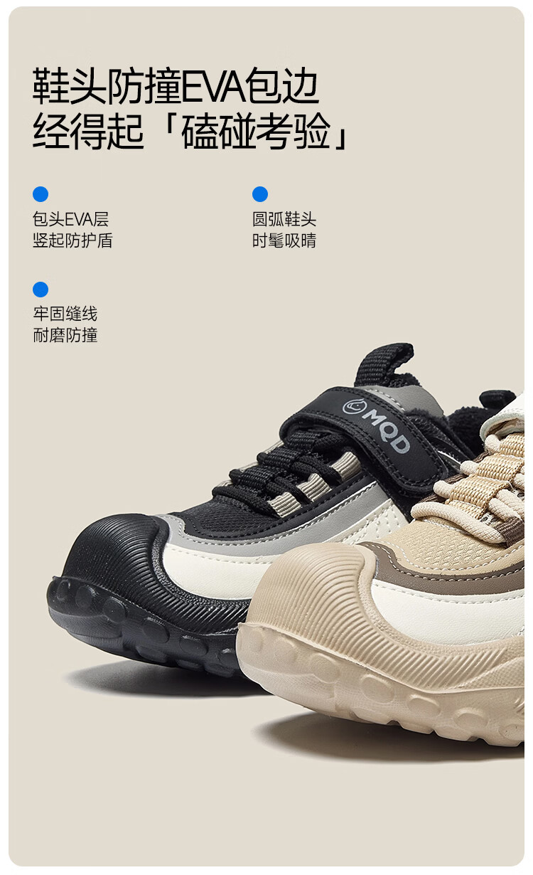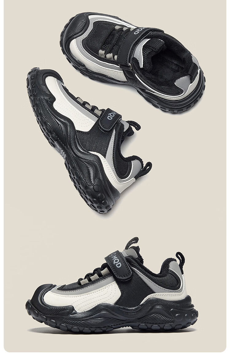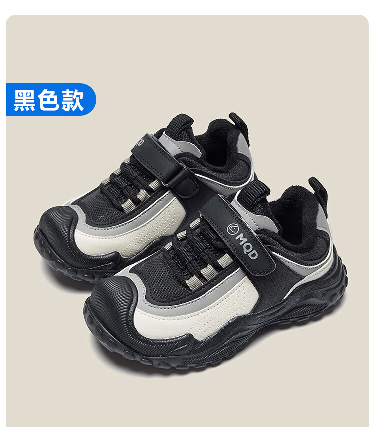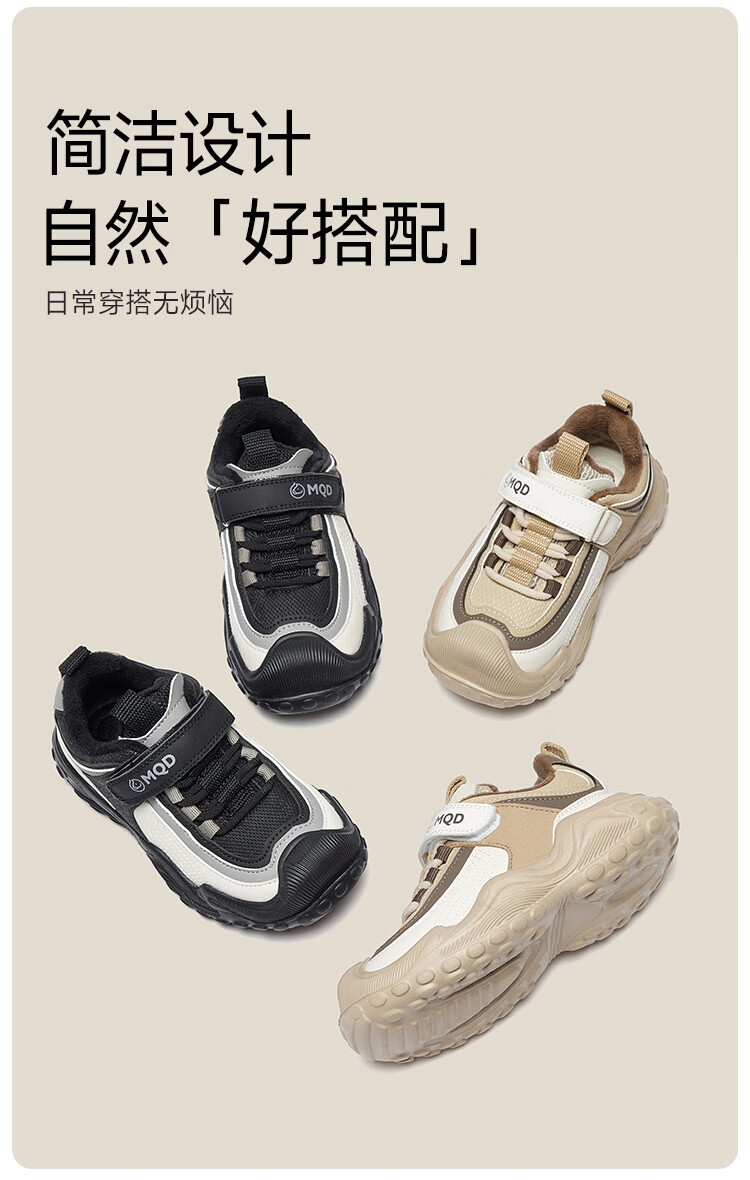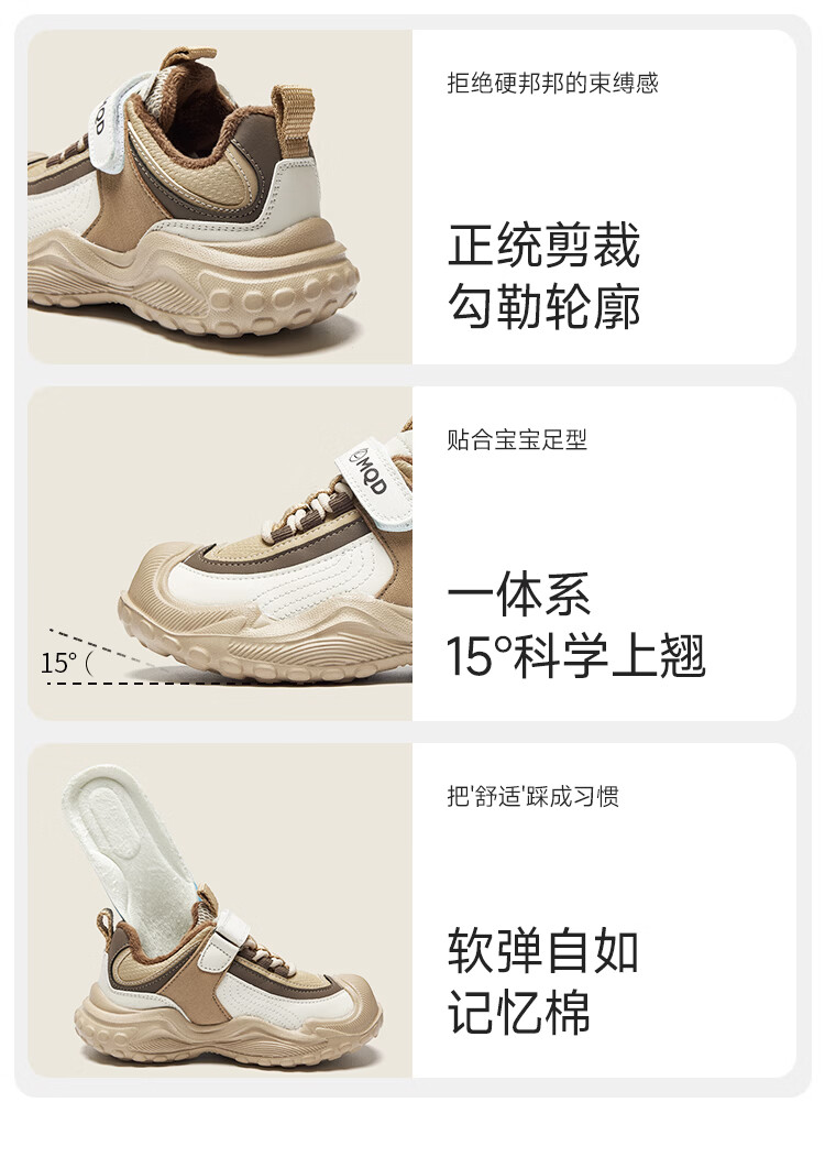 MQD children's sports shoes 2025 winter plus velvet warm cotton shoes for boys and girls non-slip campus shoes Khaki 31 inner length 19.7CM
