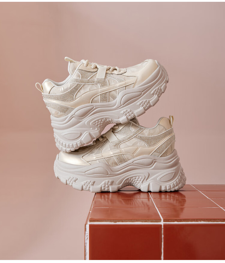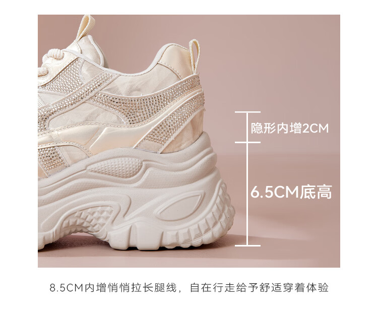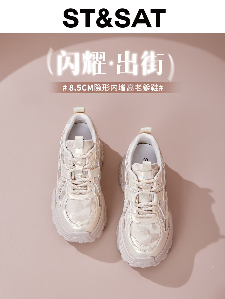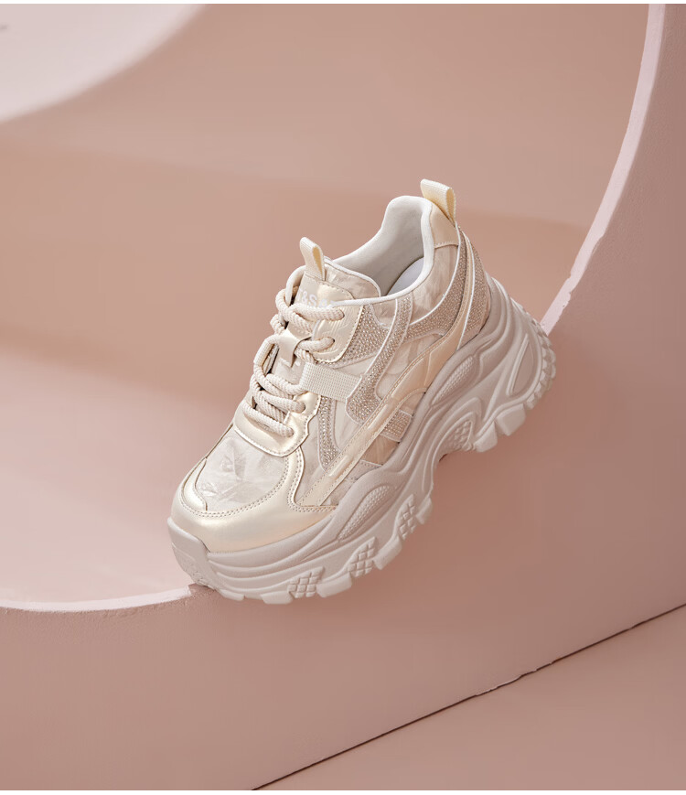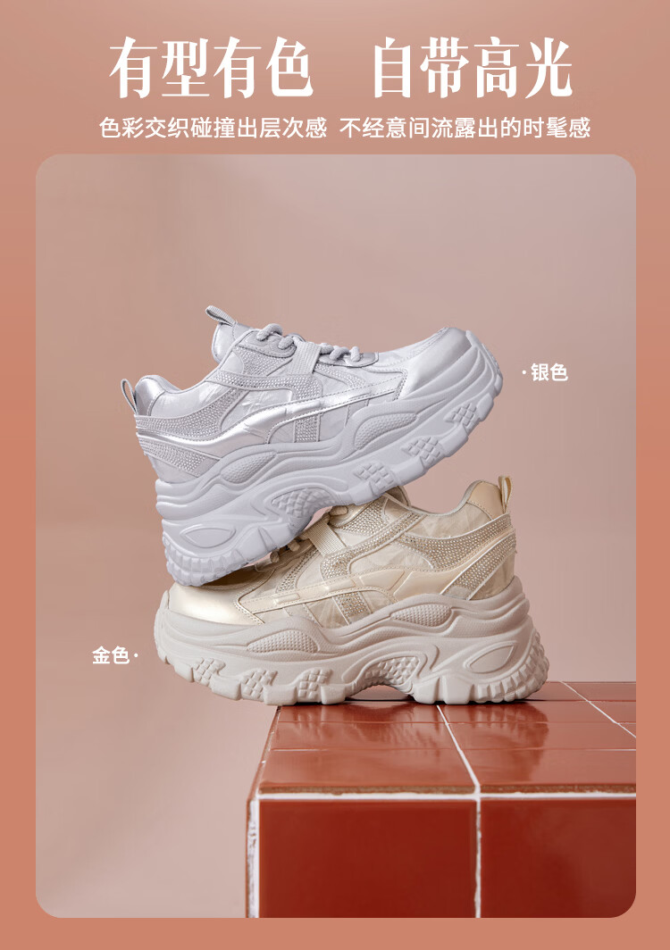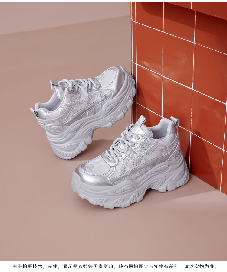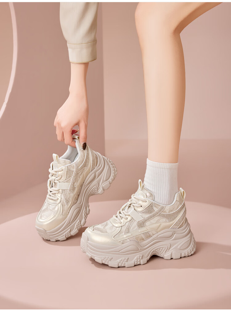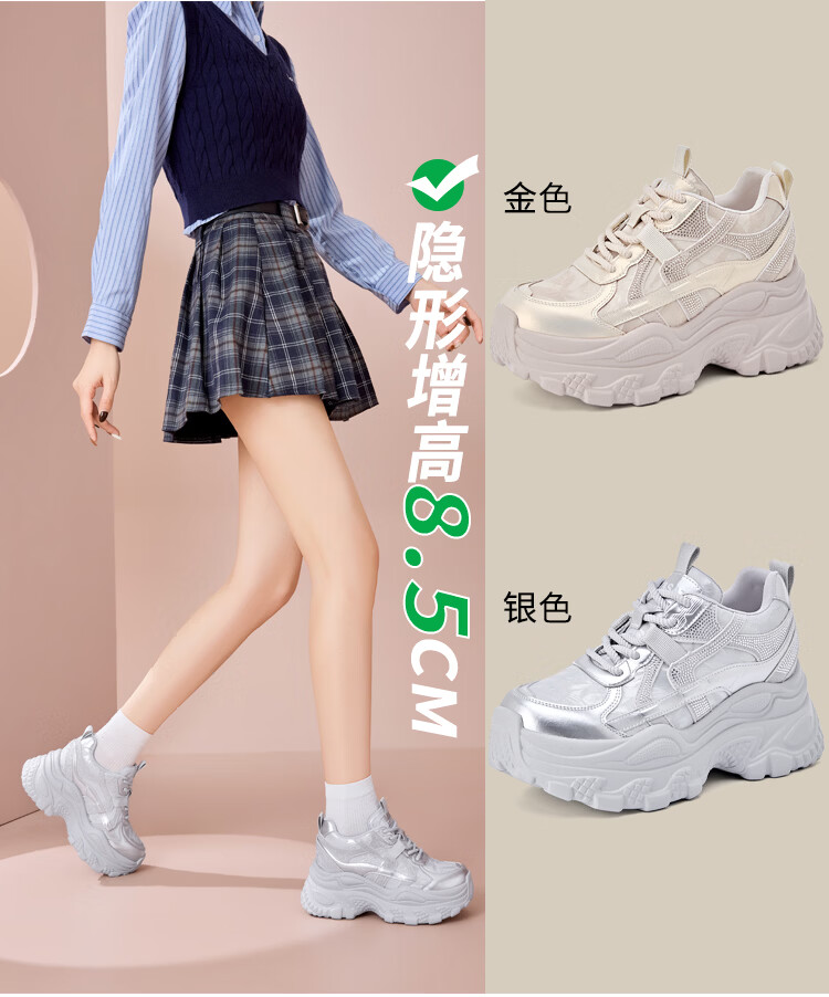 Saturday brand small versatile sports shoes for women 2026 spring and autumn new 8.5CM thick sole inner heightening dad shoes for women gold 34