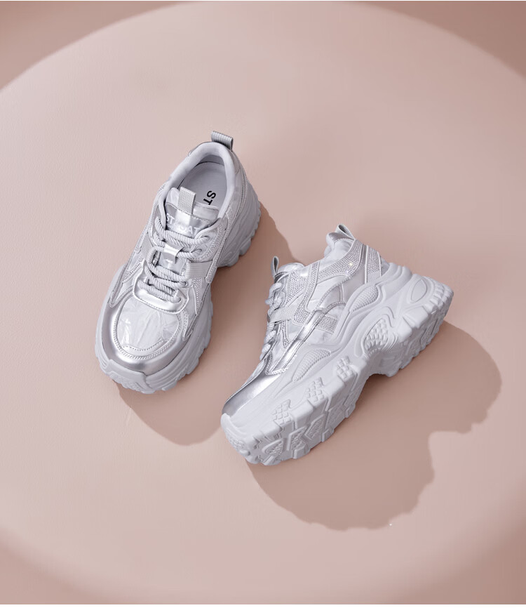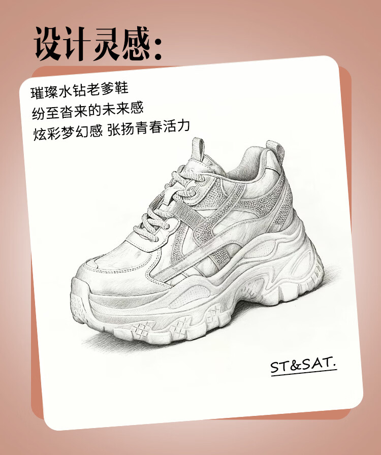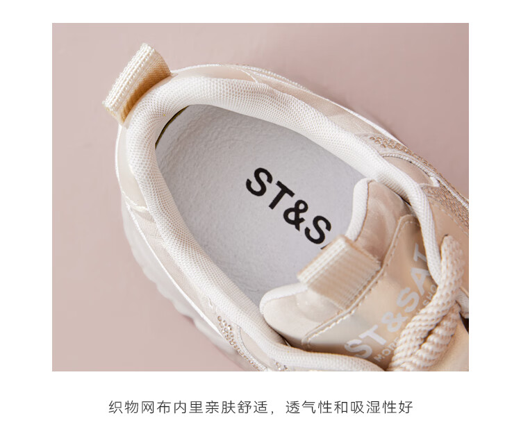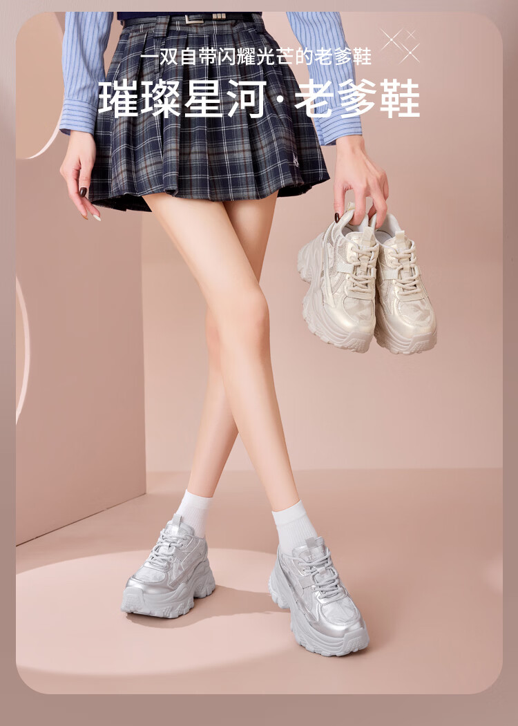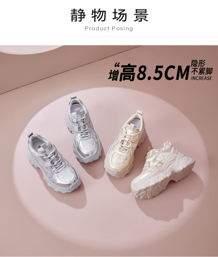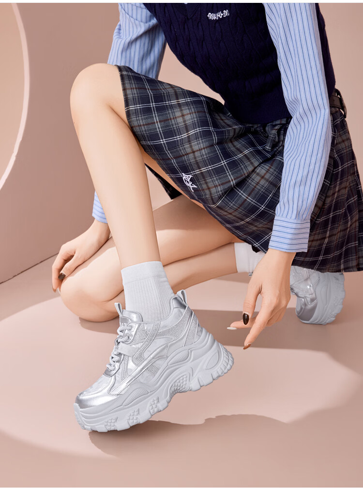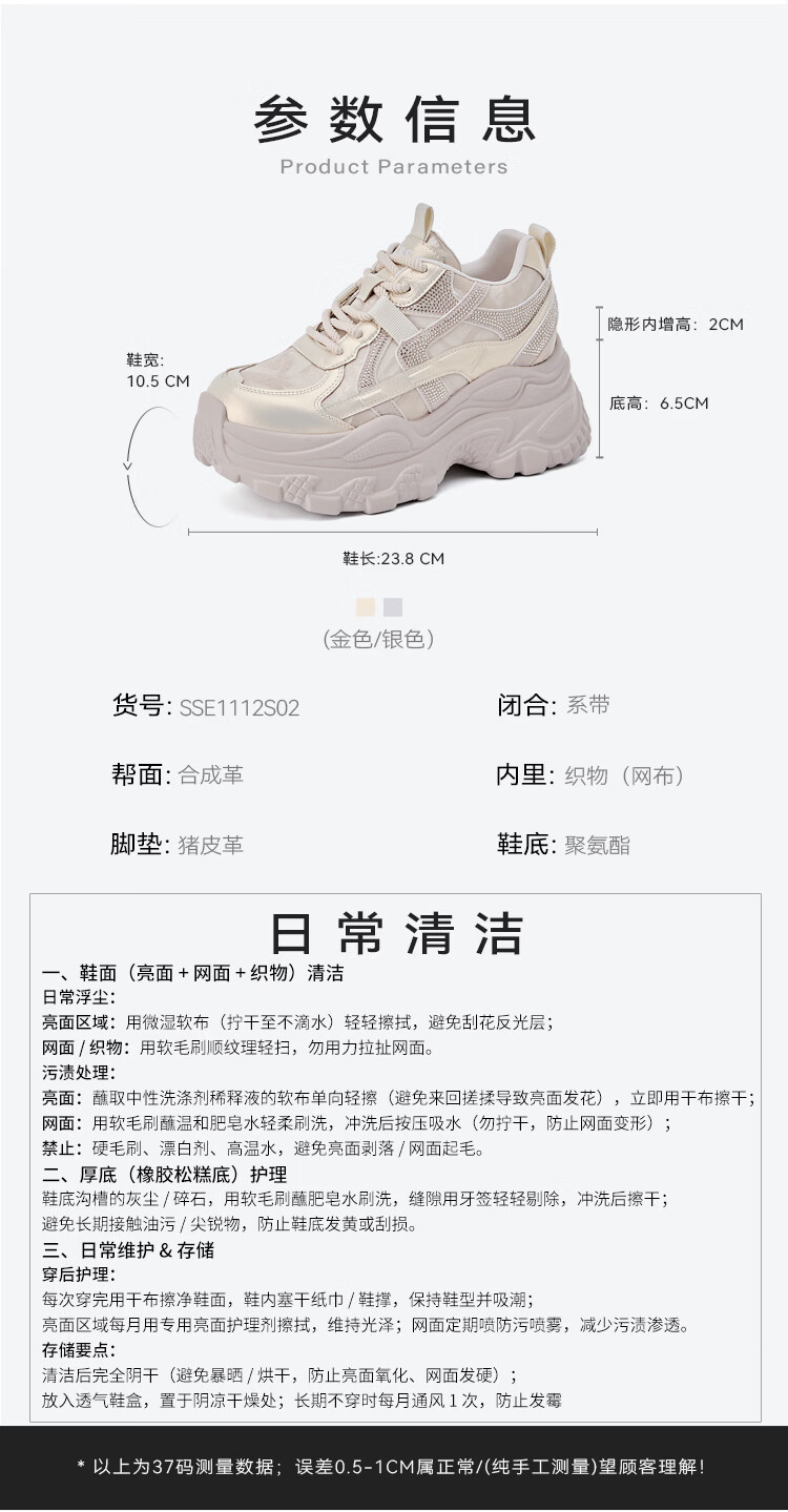 Saturday brand small versatile sports shoes for women 2026 spring and autumn new 8.5CM thick sole inner heightening dad shoes for women gold 34