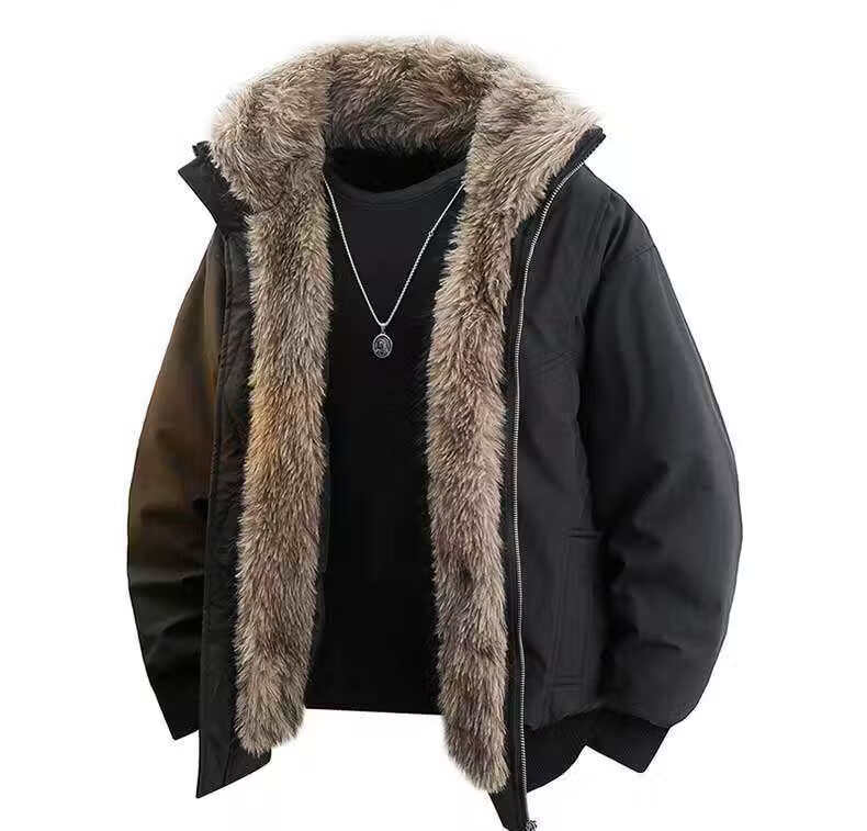 ROMON European Station Plus Velvet Thickened Stand Collar Down Jacket Men's Winter Large Size Loose Mountain Carving American Cold-proof Cotton Jacket Gray S 80-95Jin Jin is equal to 0.5 kg