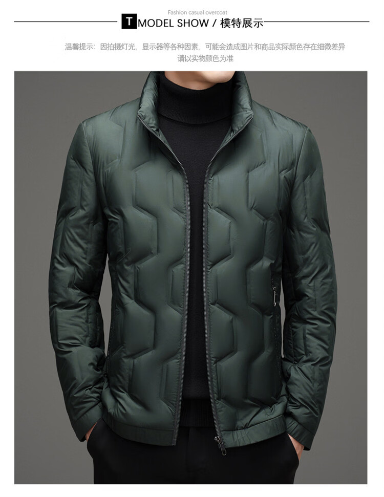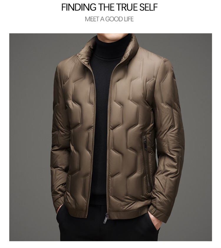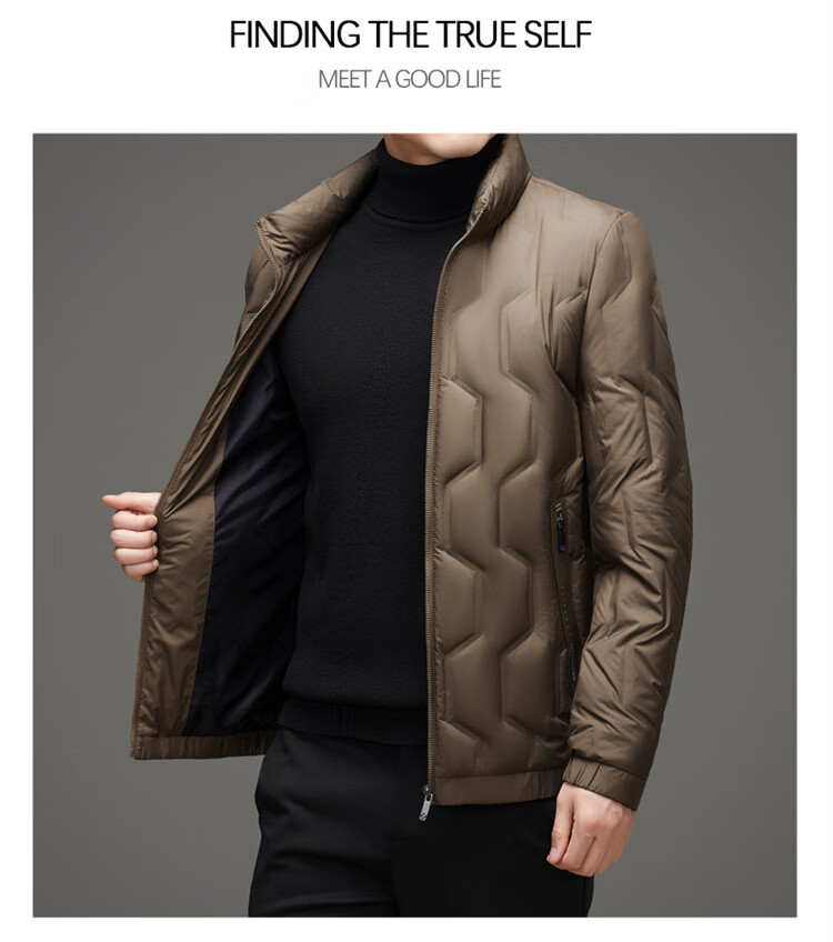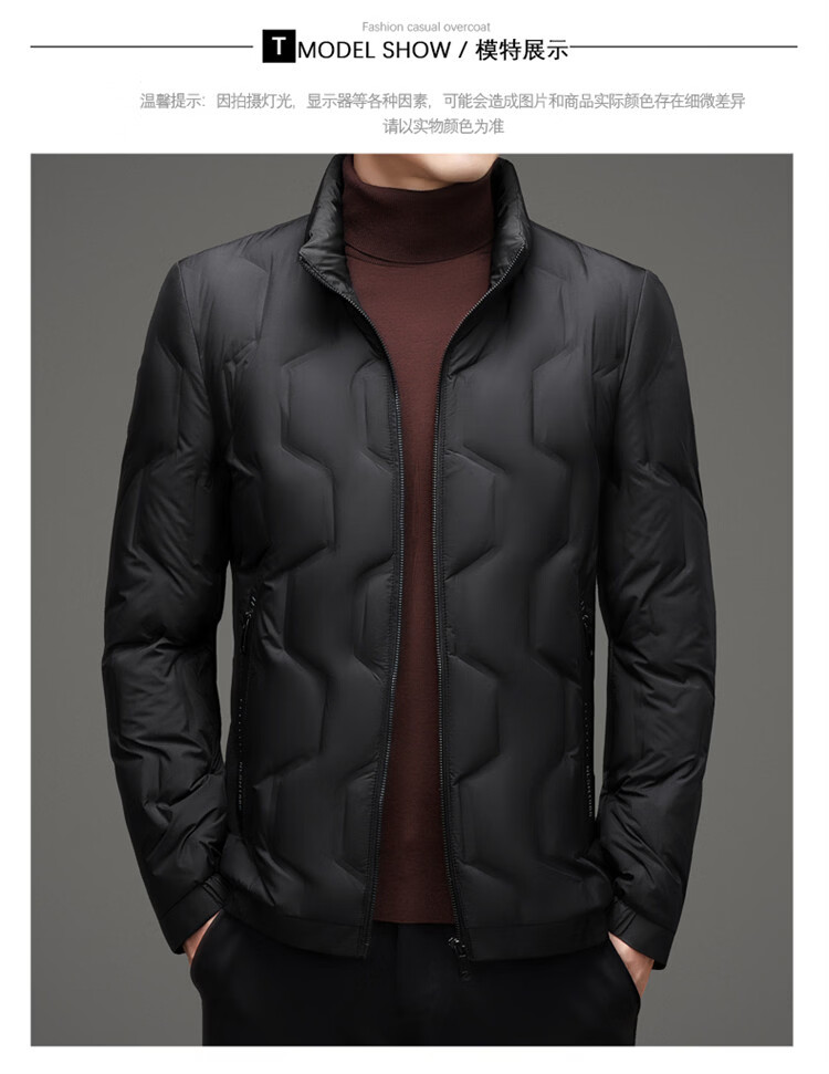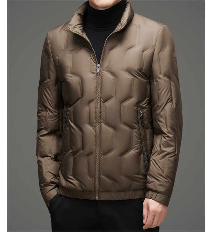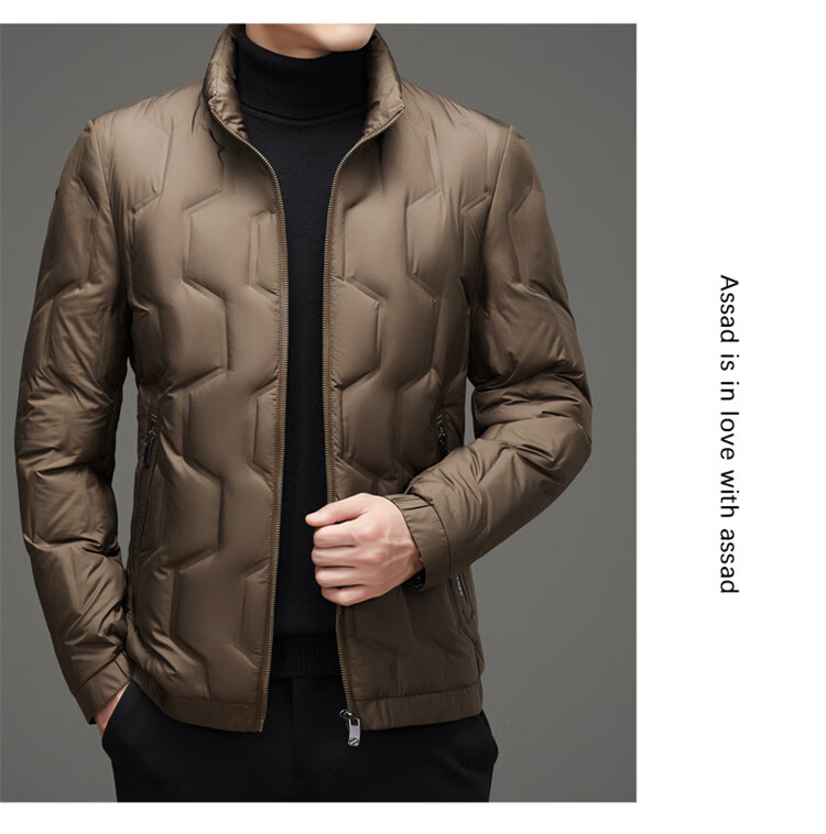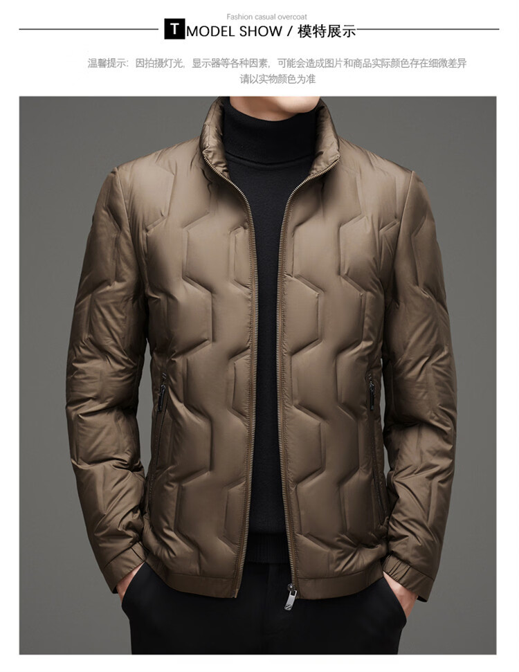 Hengyuanxiang Light Luxury Winter New Middle-aged Dad Men's White Duck Down Jacket Lightweight Stand-up Collar Short Down Jacket Brown L 175