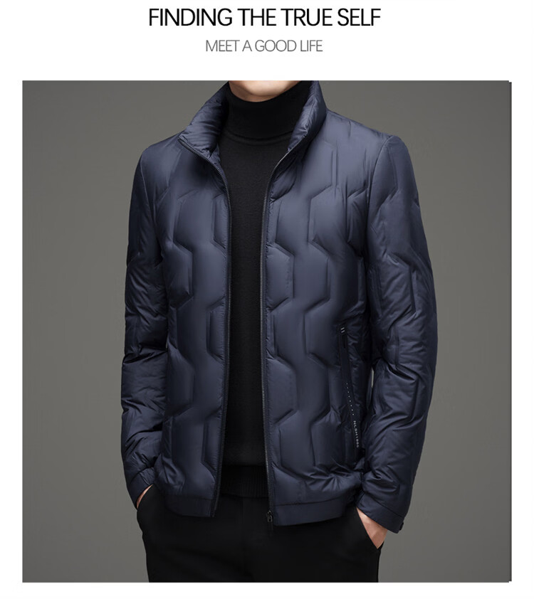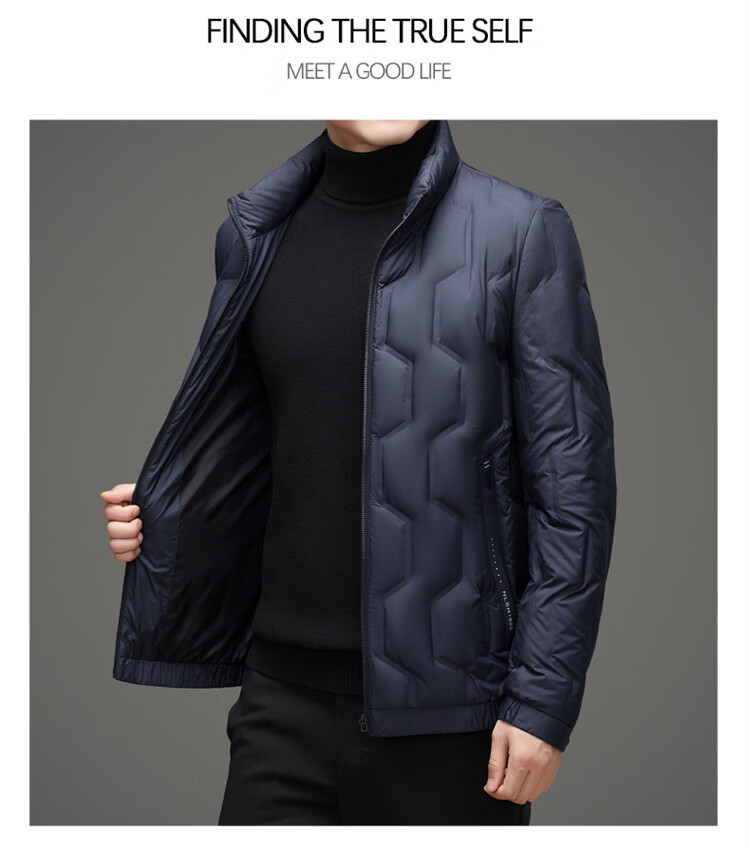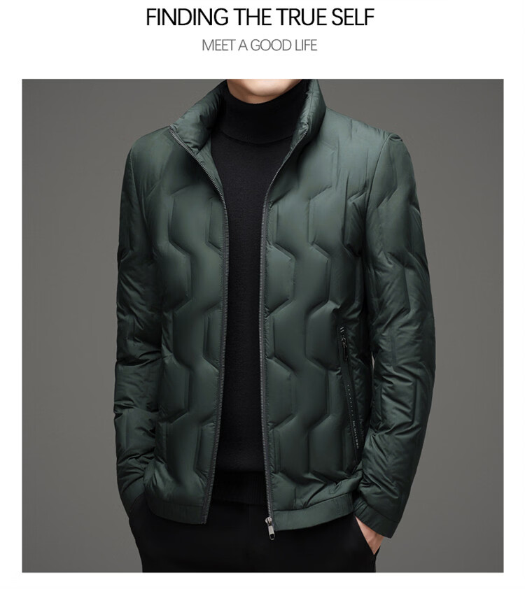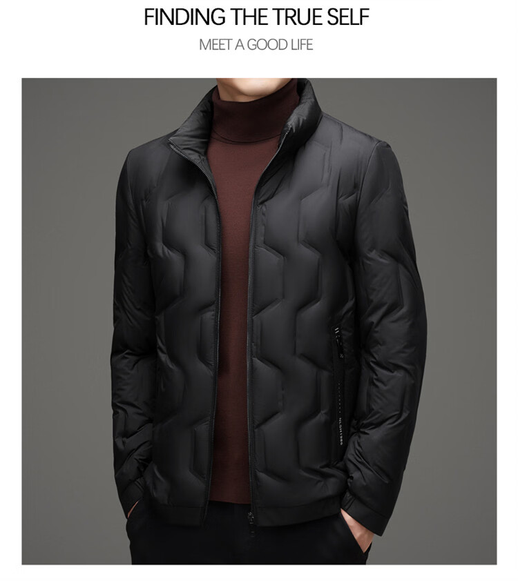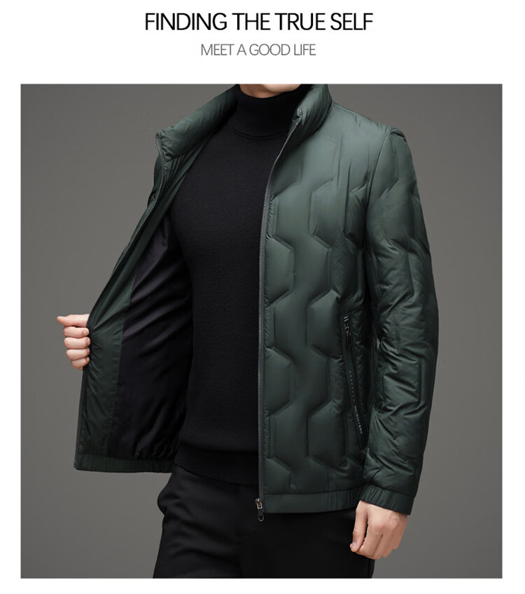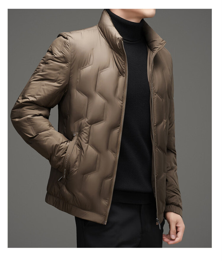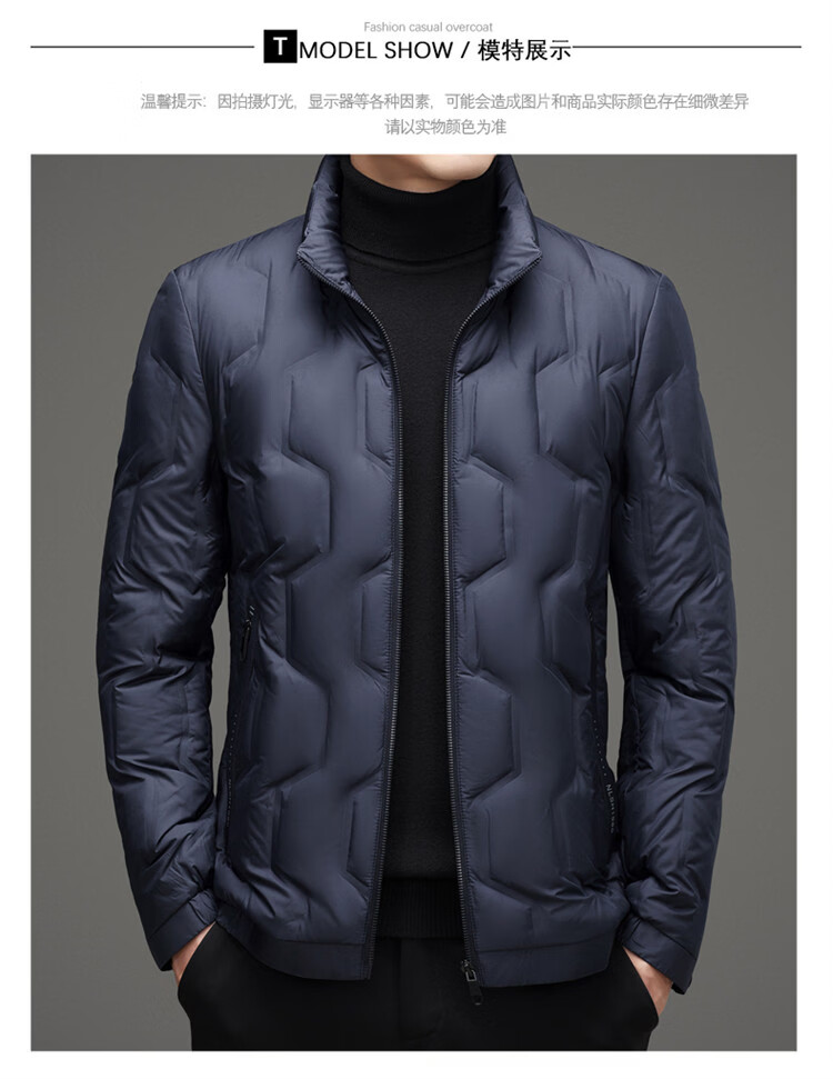 Hengyuanxiang Light Luxury Winter New Middle-aged Dad Men's White Duck Down Jacket Lightweight Stand-up Collar Short Down Jacket Brown L 175