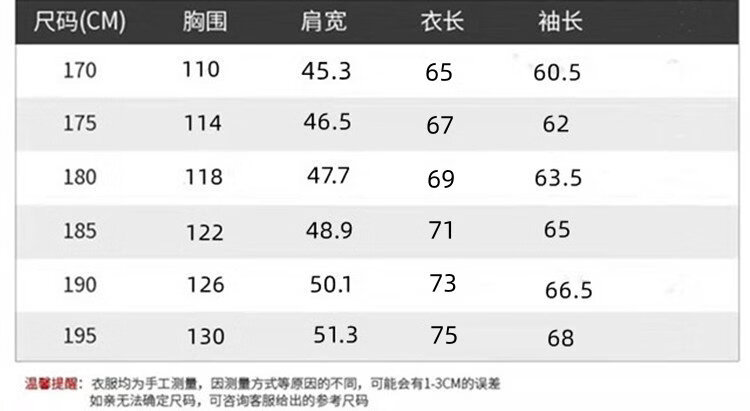 China (cm) 165 / 88-90 170 / 96-98 175 / 108-110 180 / 118-122 185 / 126-130
