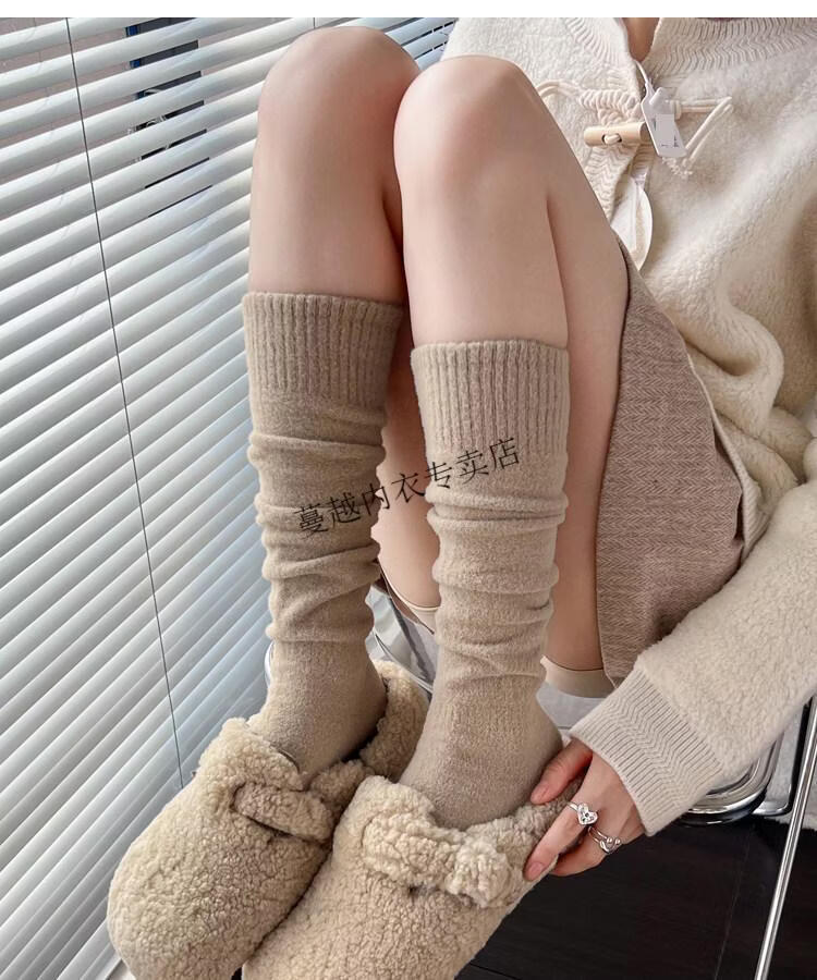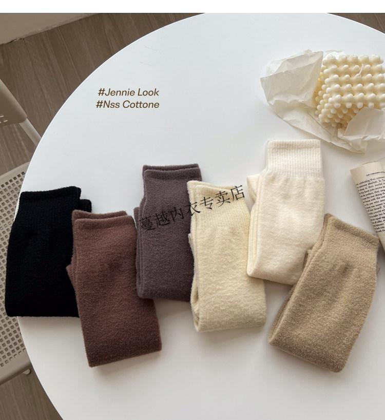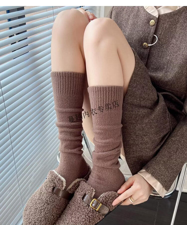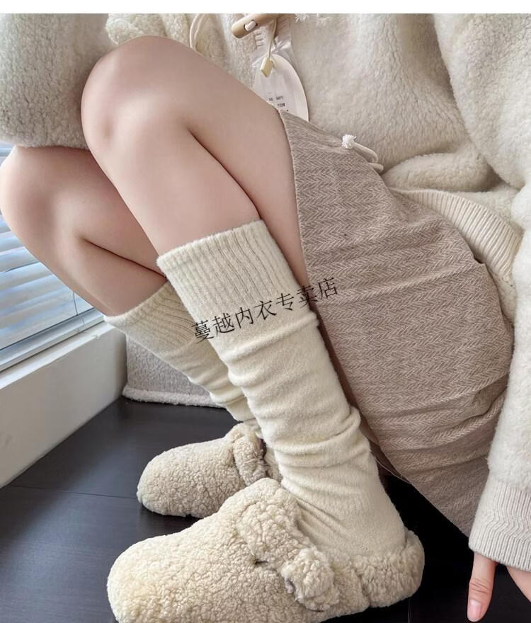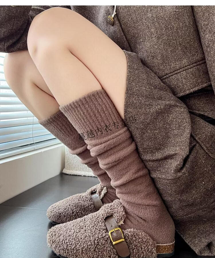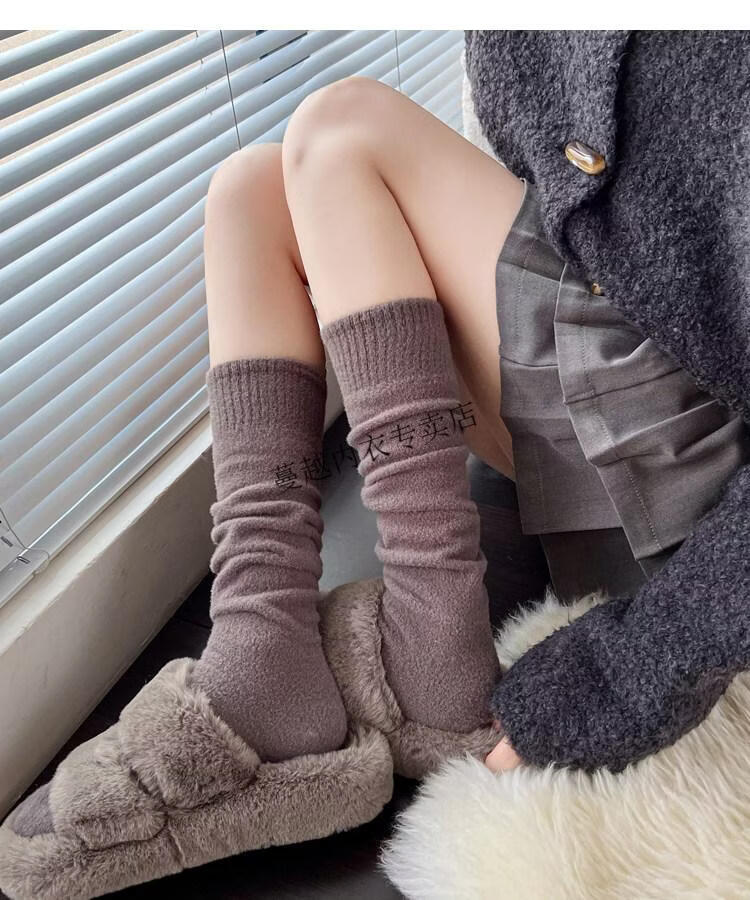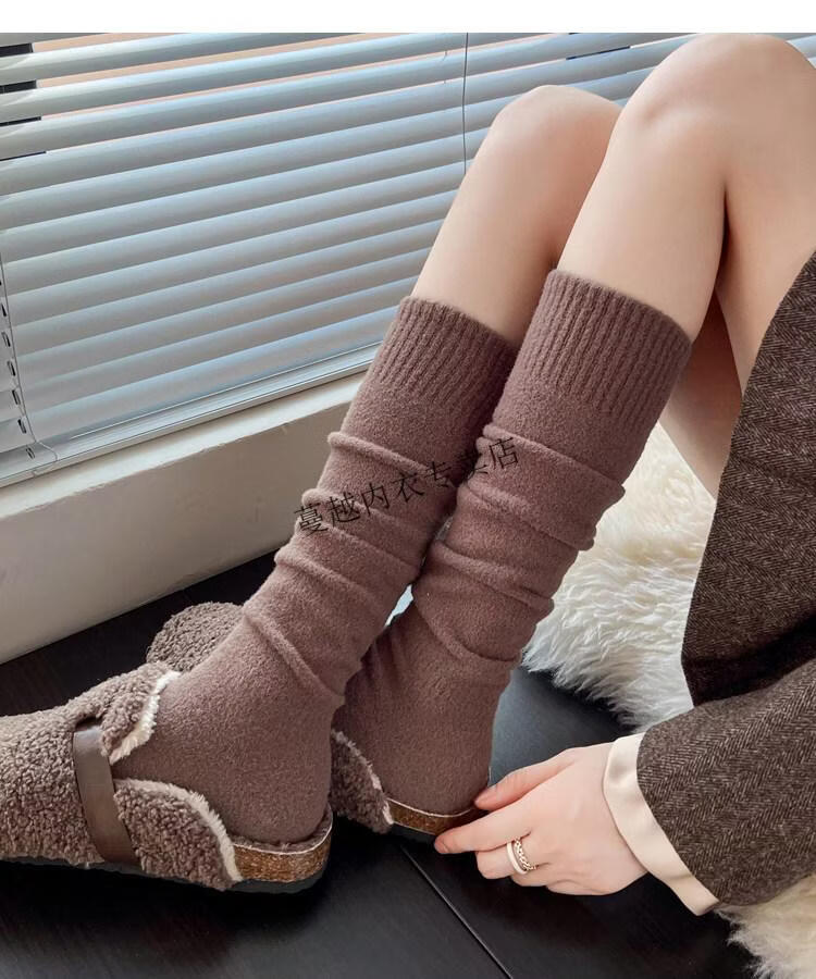 Modal autumn and winter plush milk white mid-length socks Korean gray calf socks thickened warm brown knee-high pile socks Apricot Rice One size fits all 2 pairs