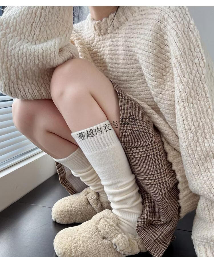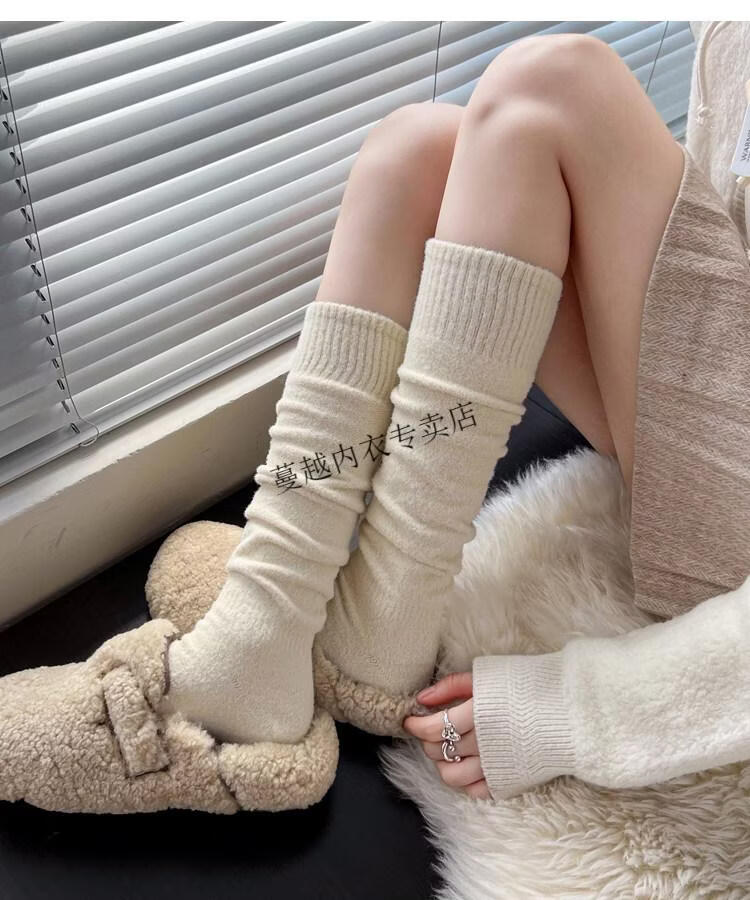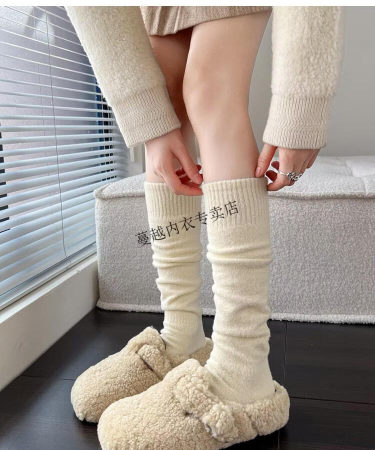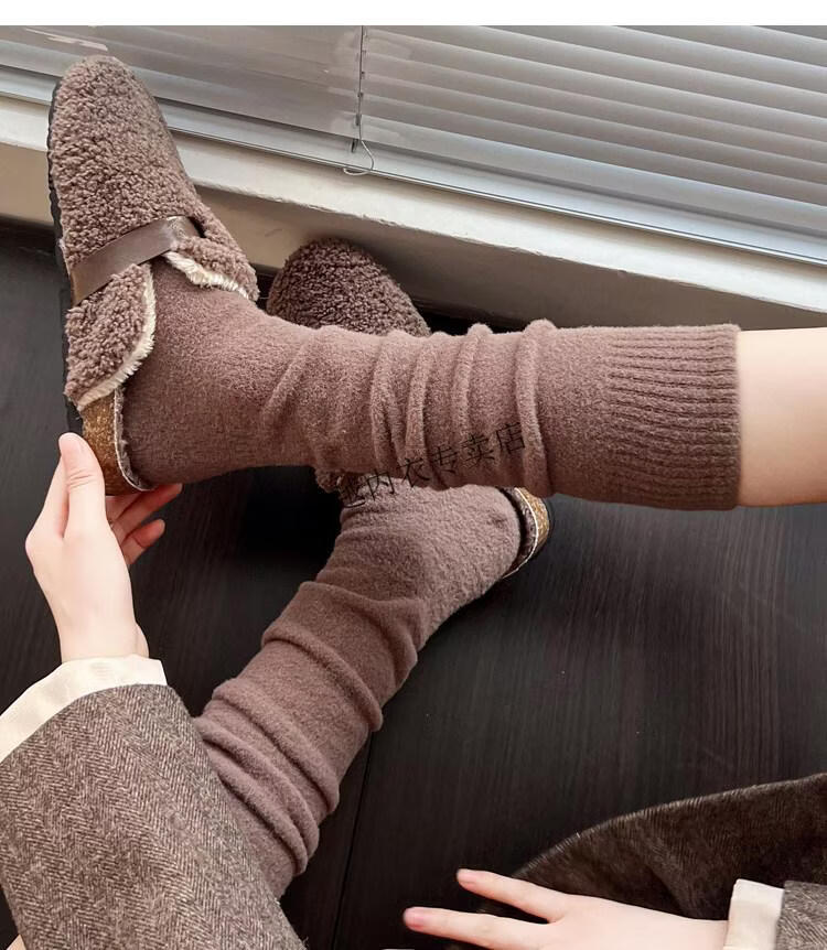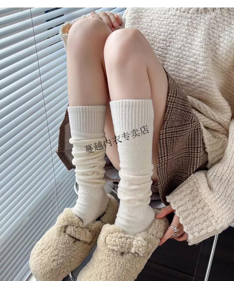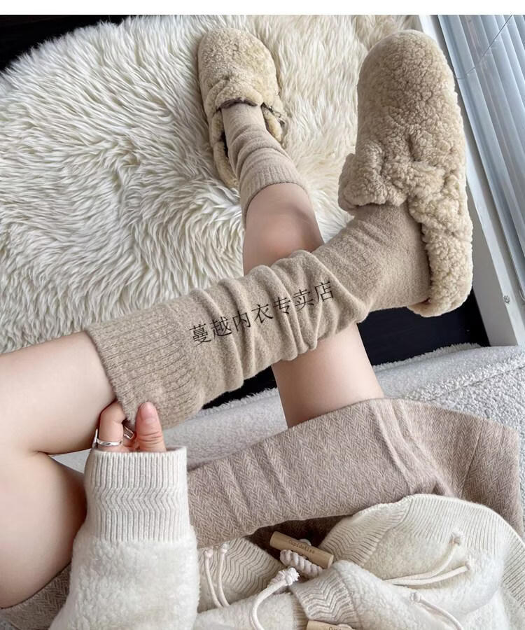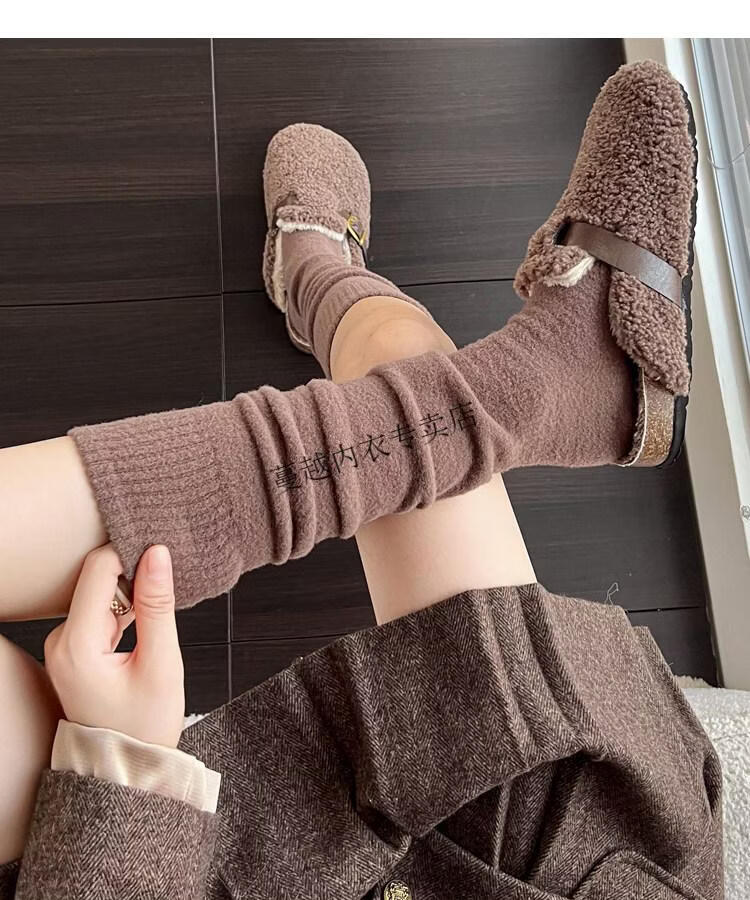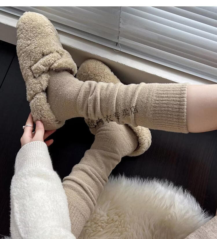 Modal autumn and winter plush milk white mid-length socks Korean gray calf socks thickened warm brown knee-high pile socks Apricot Rice One size fits all 2 pairs