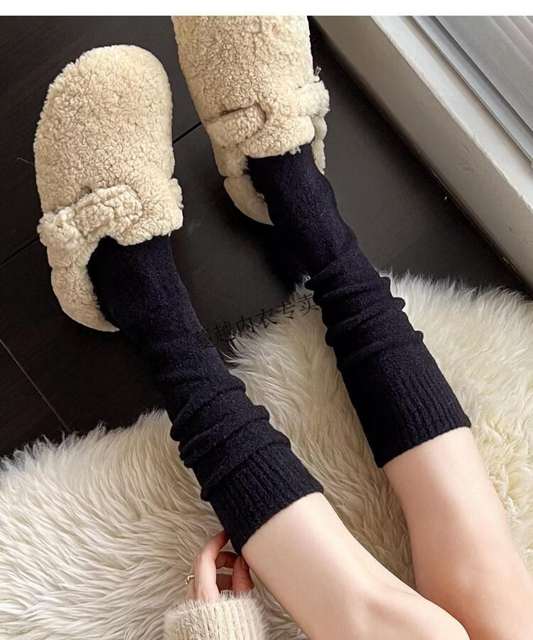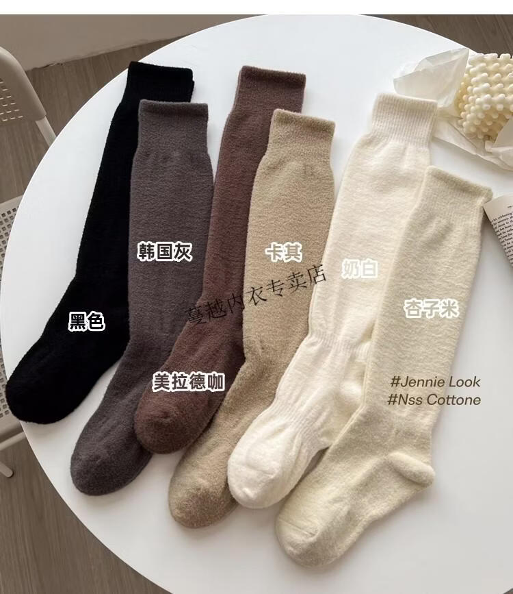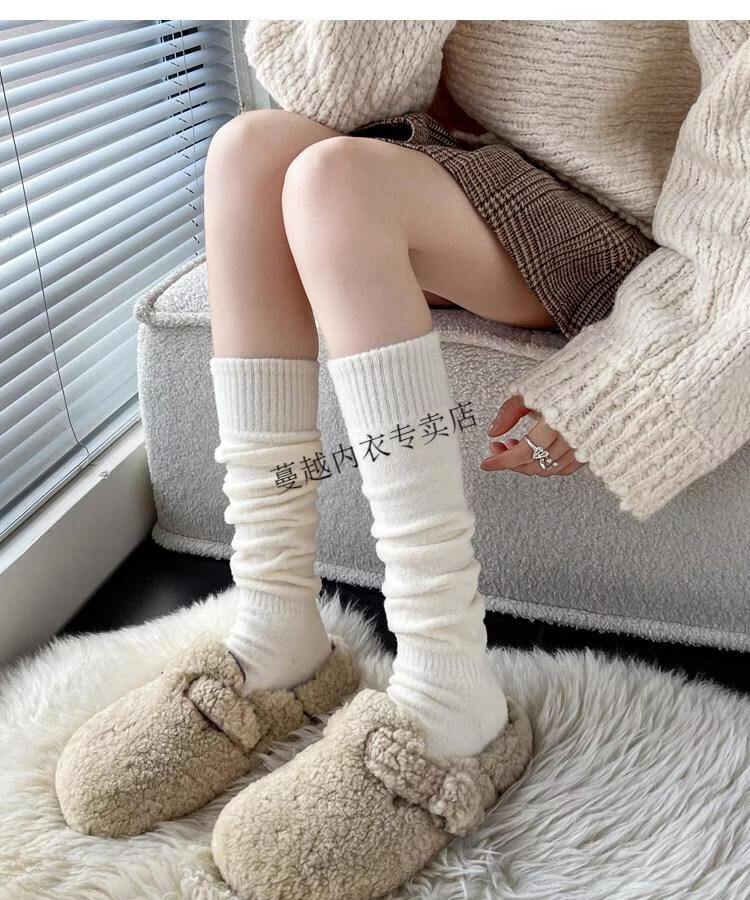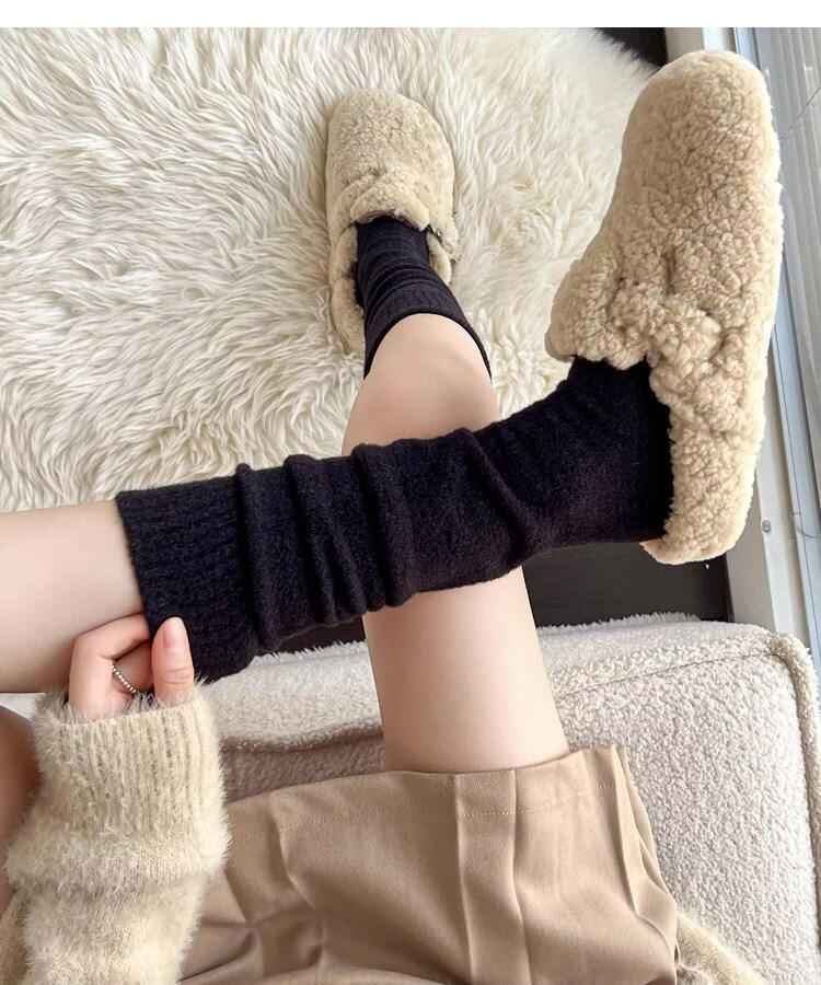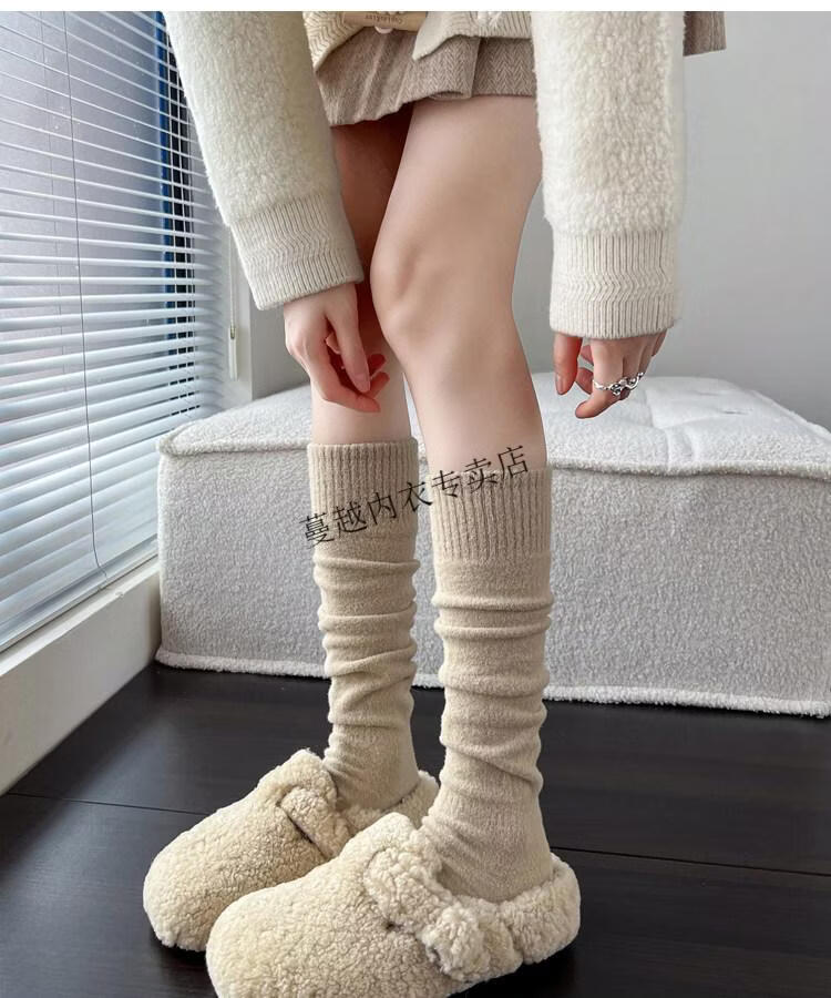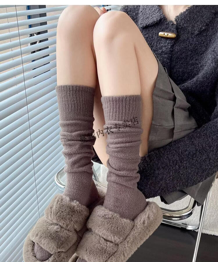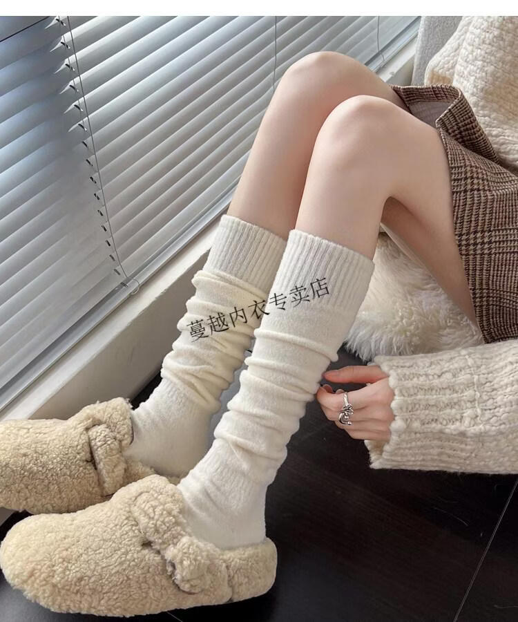 Modal autumn and winter plush milk white mid-length socks Korean gray calf socks thickened warm brown knee-high pile socks Apricot Rice One size fits all 2 pairs