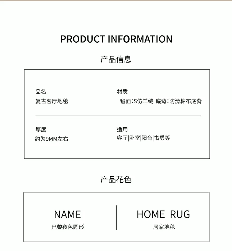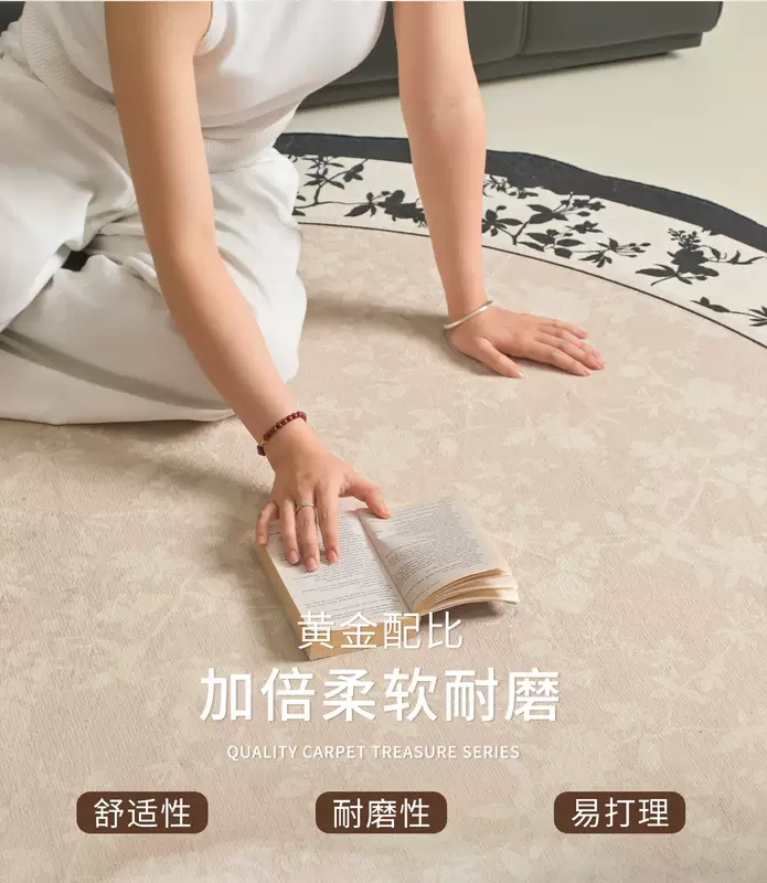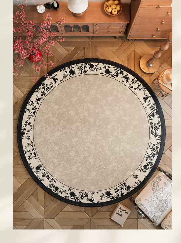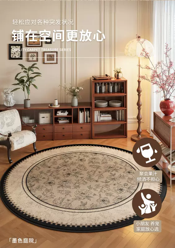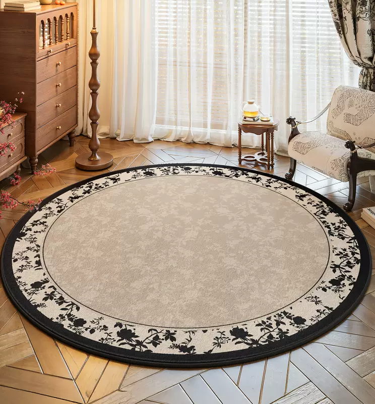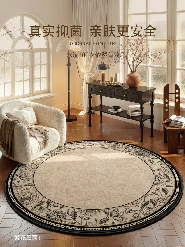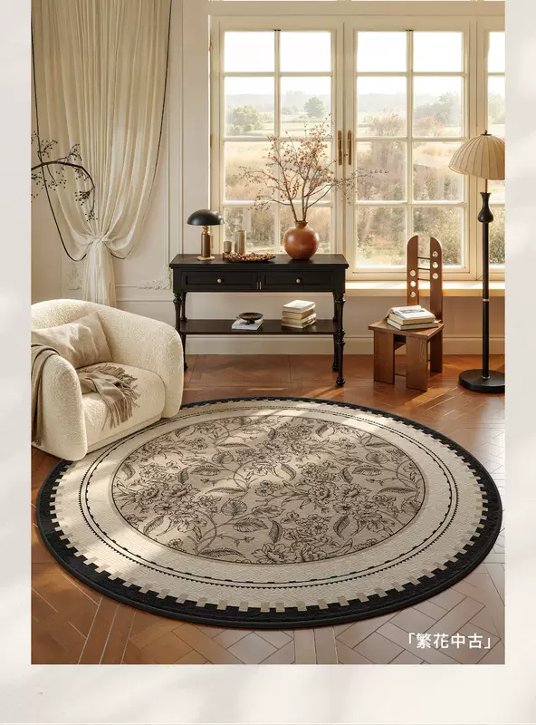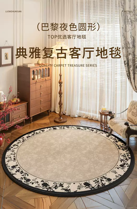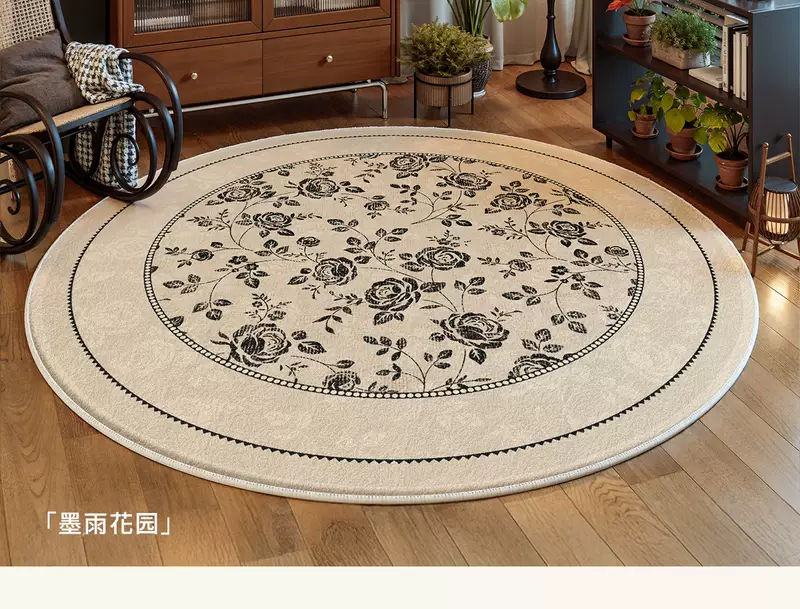 Yusenyi French retro style round carpet rocking chair computer chair floor mat dressing table antique style light luxury no-wash S imitation cashmere ink courtyard diameter 140CM