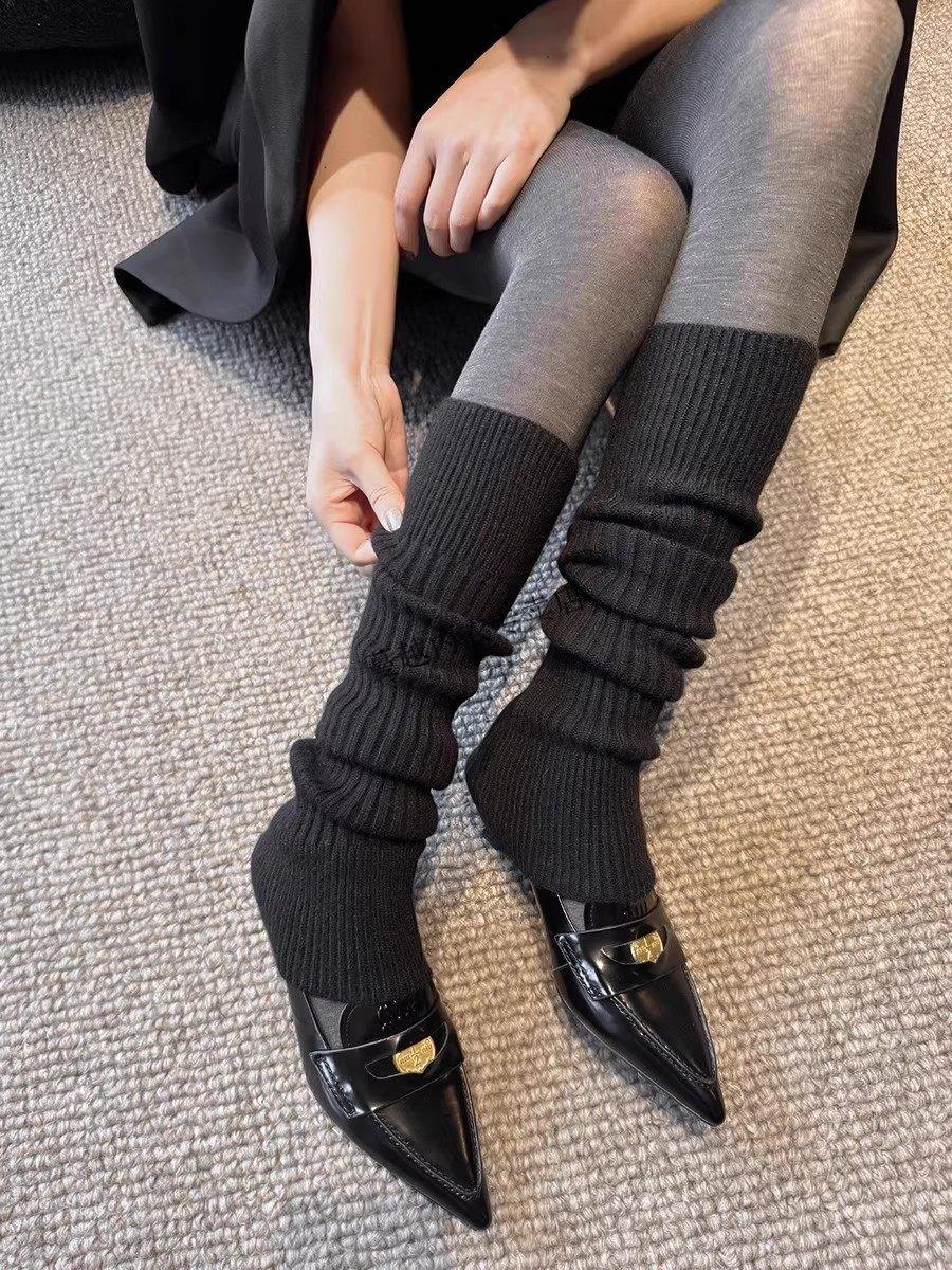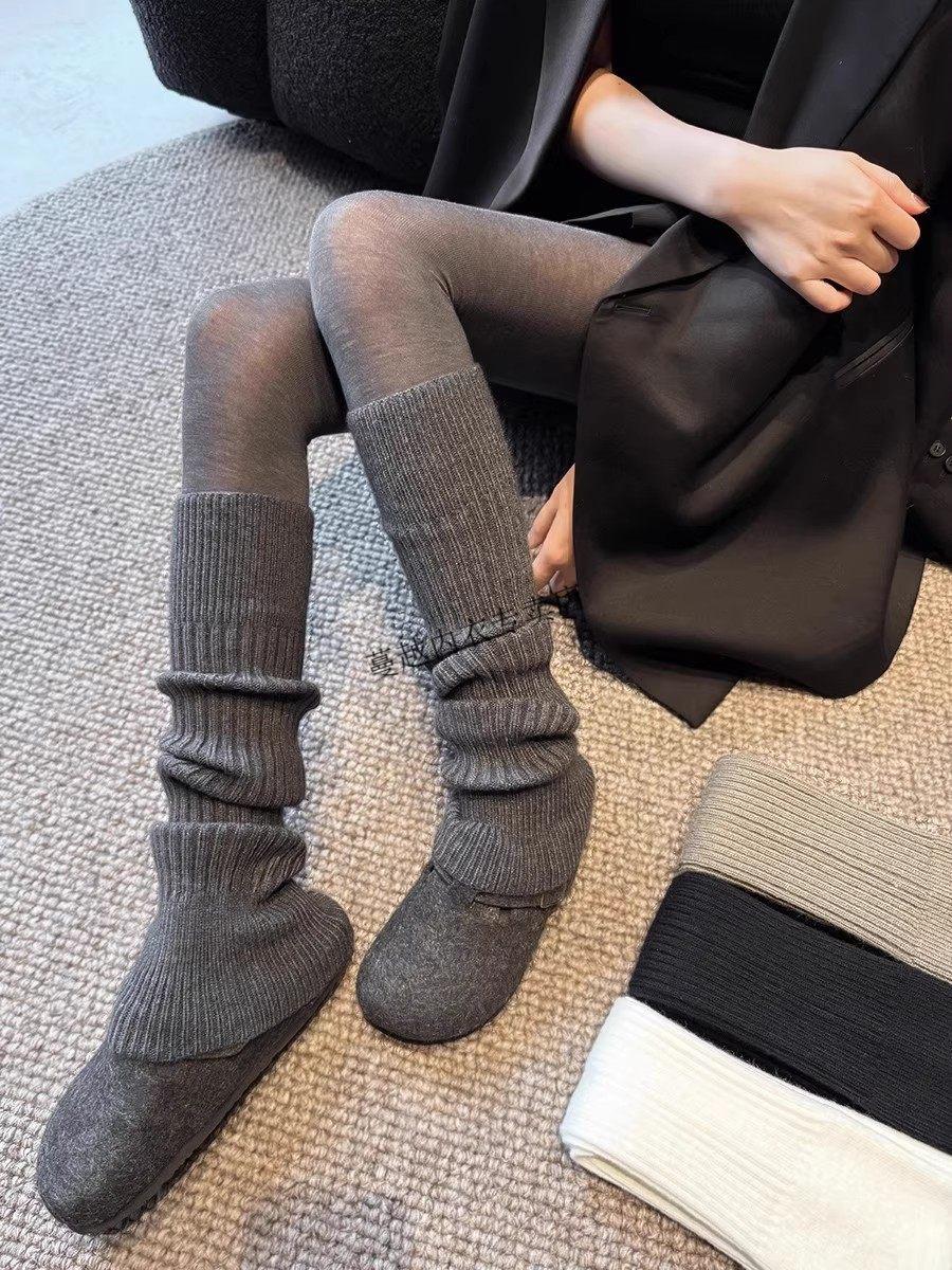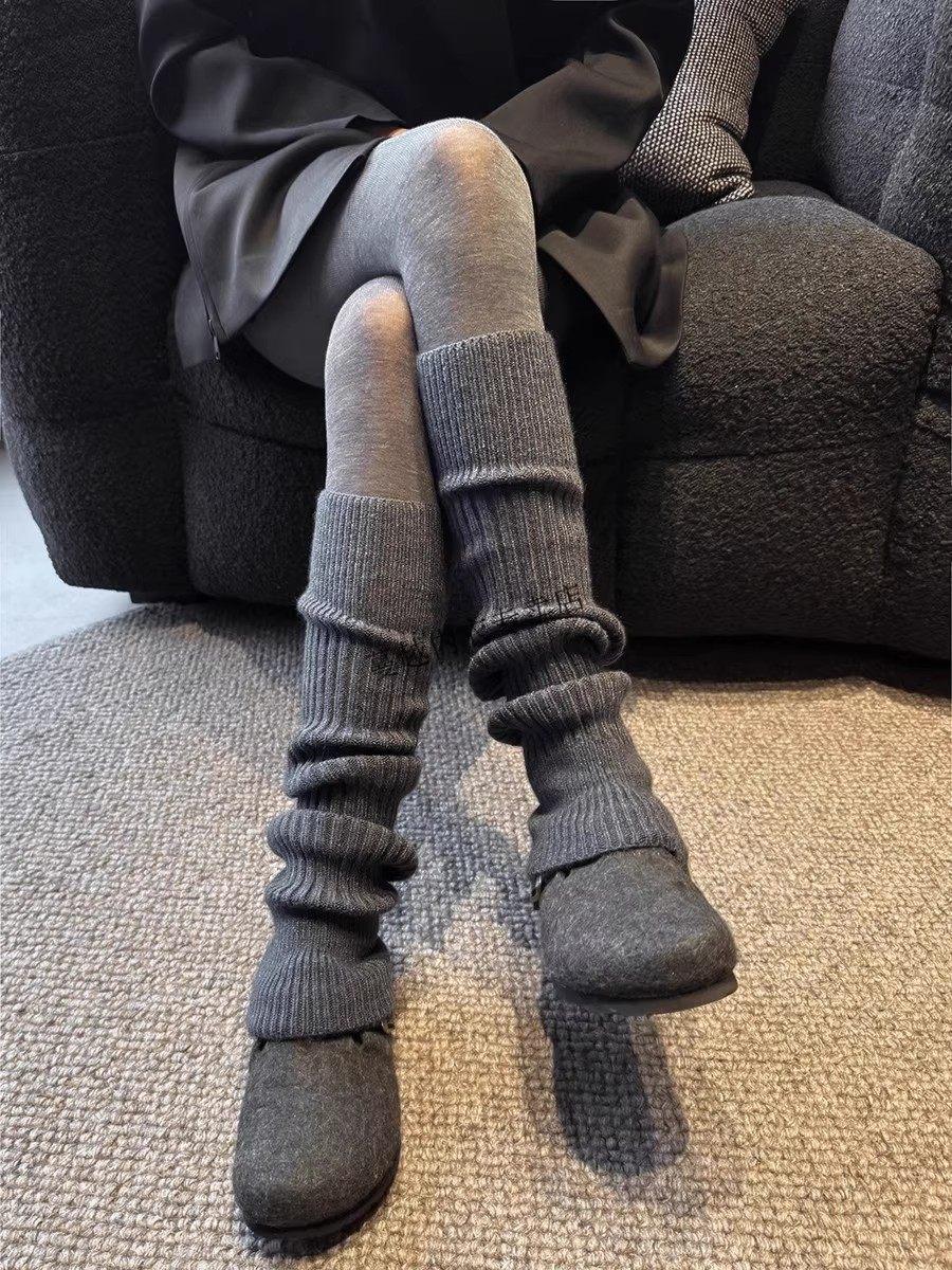 莫代尔秋冬灰色袜套竖纹百搭显瘦显腿直保暖加厚叠穿修饰腿型堆堆袜子女 深灰+黑色【换洗装】 2双 M 50C