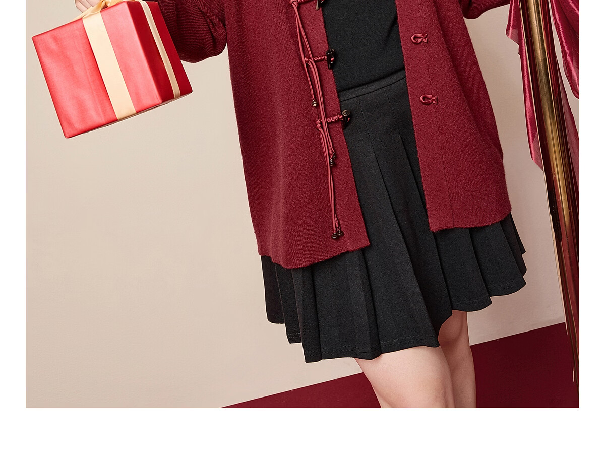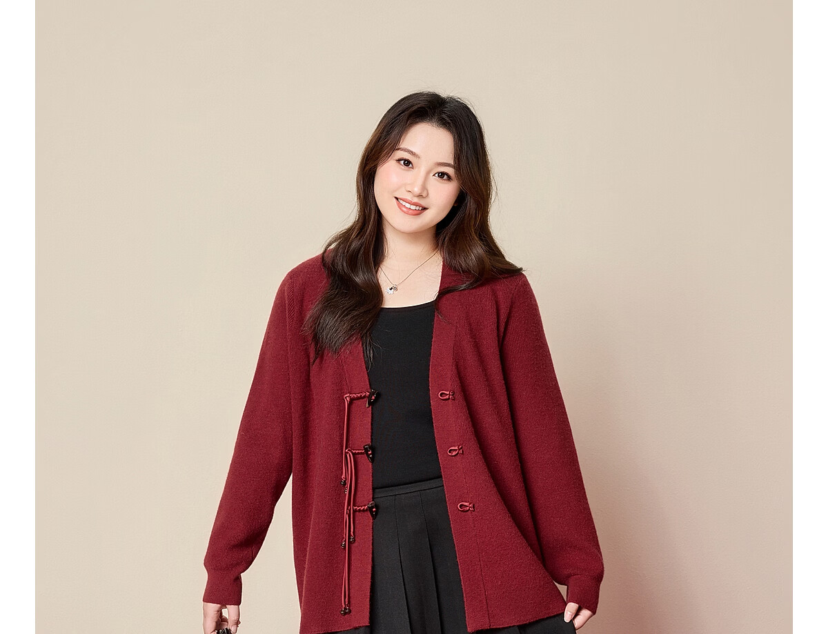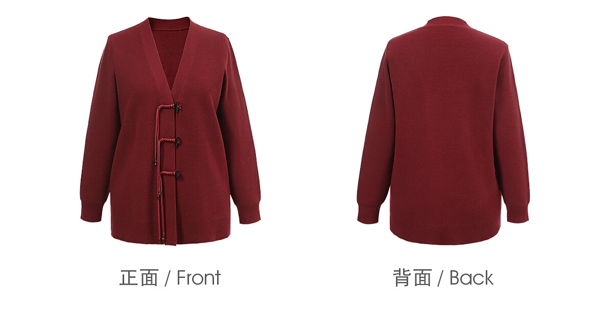 MsShe 18 Count Arctic Velvet Large Size Women's Clothing 2025 Winter New Chinese Style Plate Button V-neck New Year Sweater Jacket Persian Red Ready in Stock 3XL