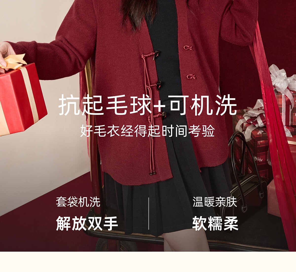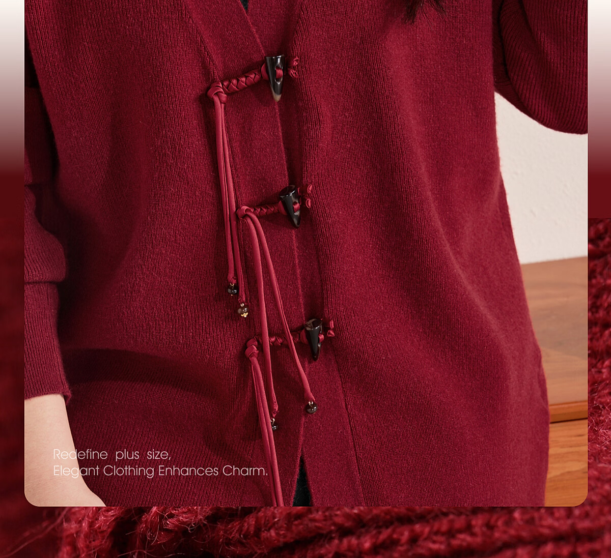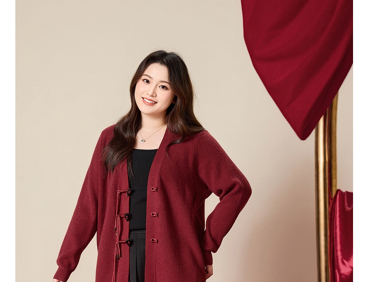 MsShe 18 Count Arctic Velvet Large Size Women's Clothing 2025 Winter New Chinese Style Plate Button V-neck New Year Sweater Jacket Persian Red Ready in Stock 3XL