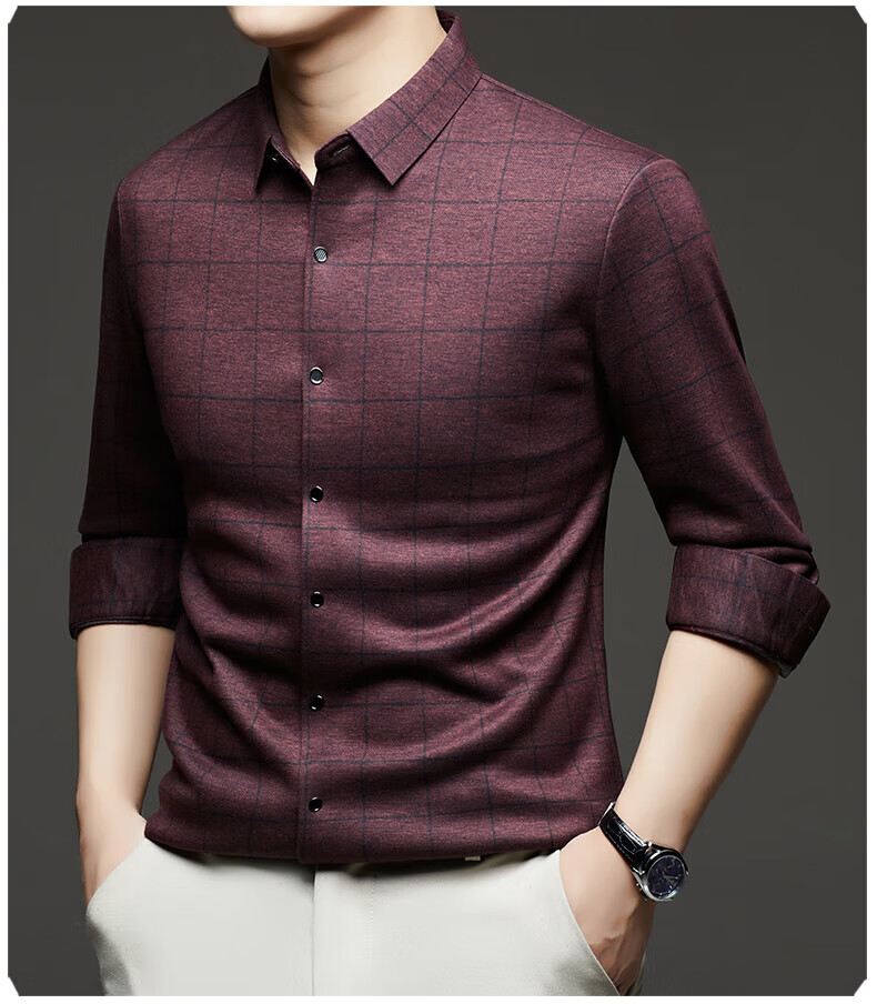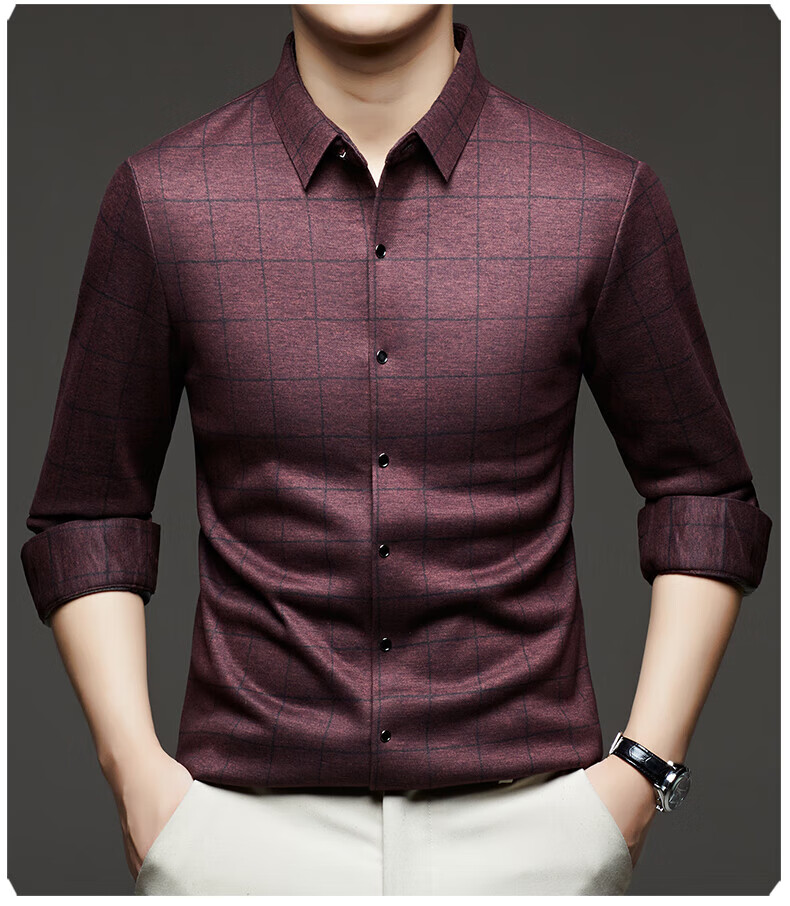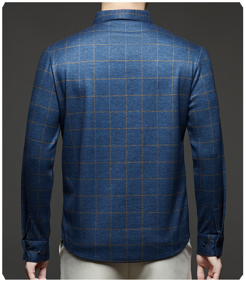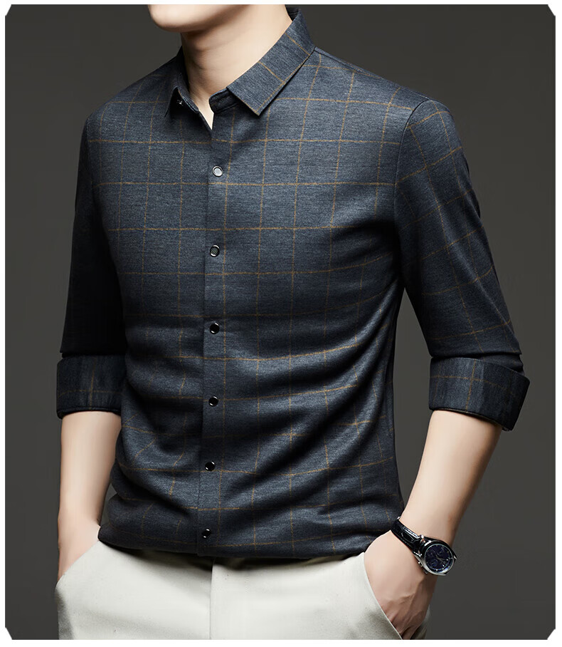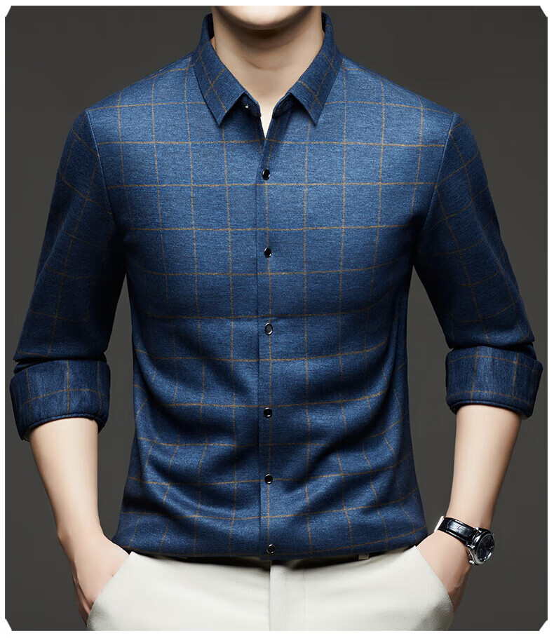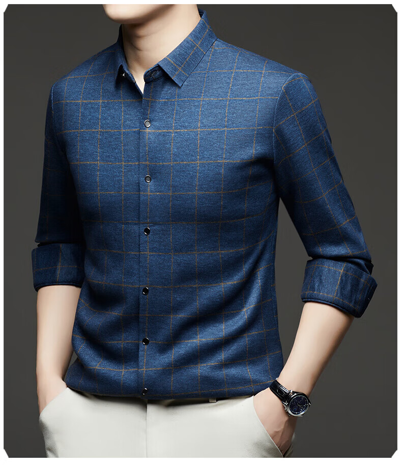 加绒桑蚕丝羊毛衬衫男士秋冬商务休闲格子衬衣中年爸爸装保暖衬衫 DL628绿色 2XL 建议160-175斤