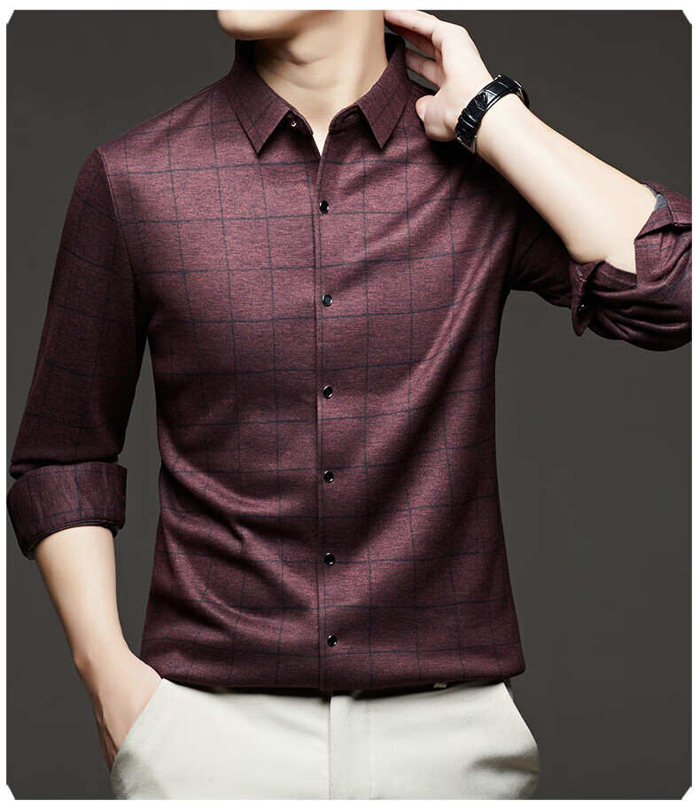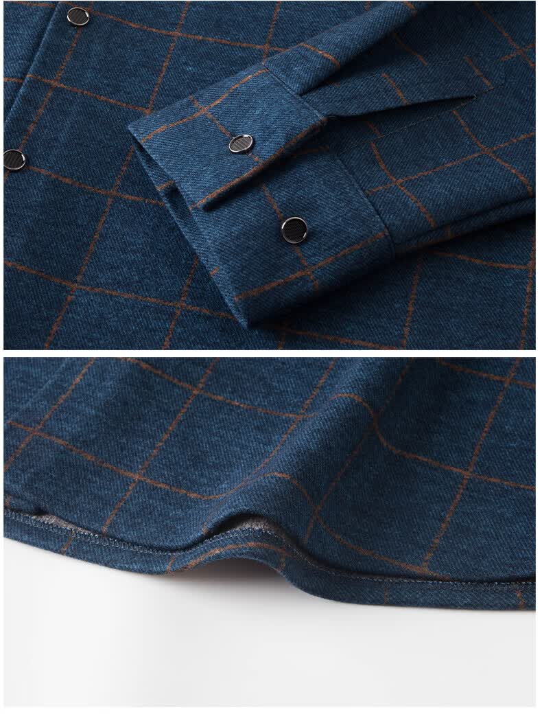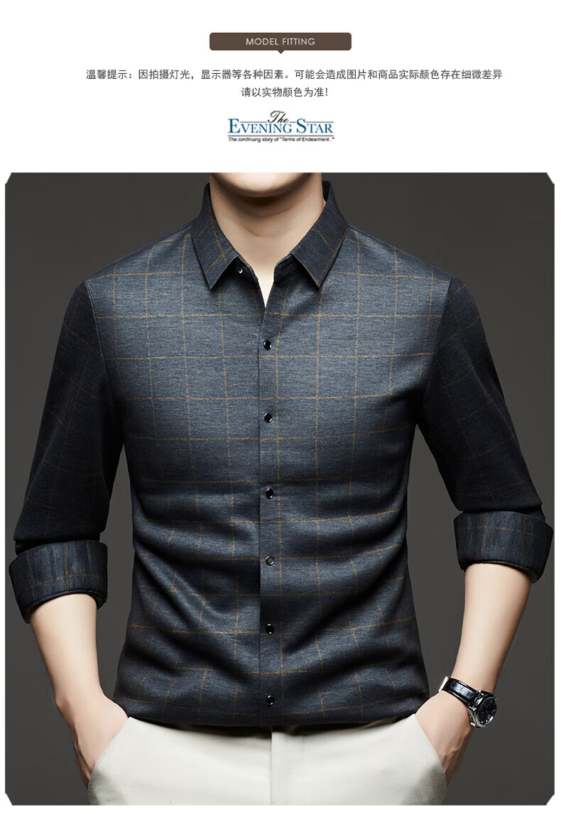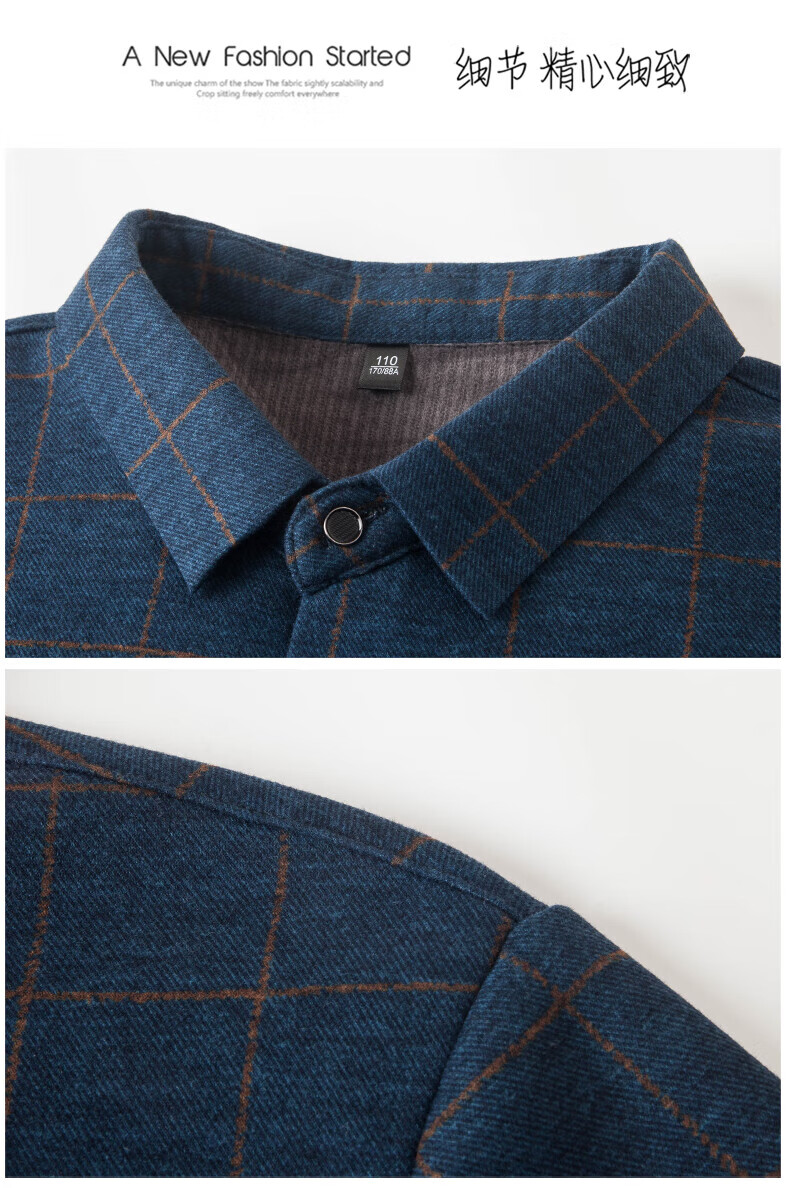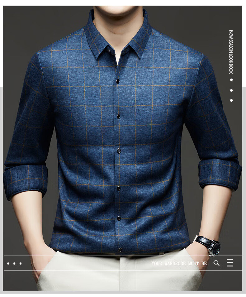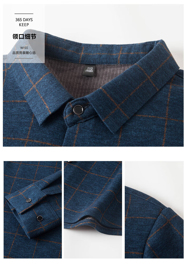 加绒桑蚕丝羊毛衬衫男士秋冬商务休闲格子衬衣中年爸爸装保暖衬衫 DL628绿色 2XL 建议160-175斤