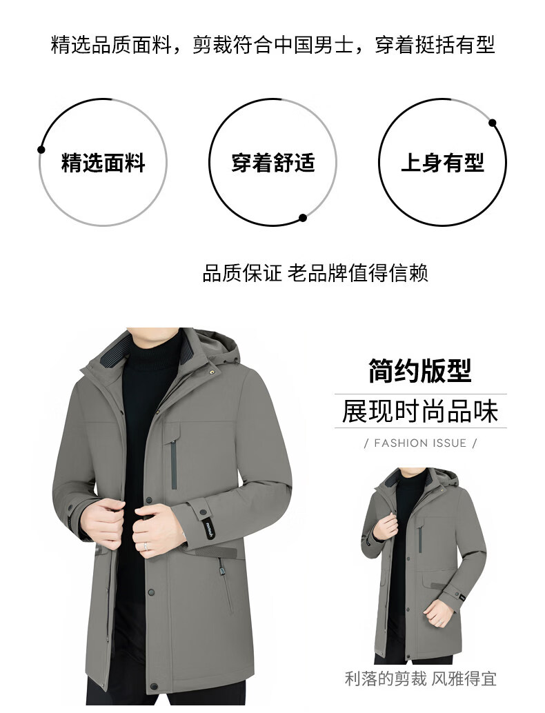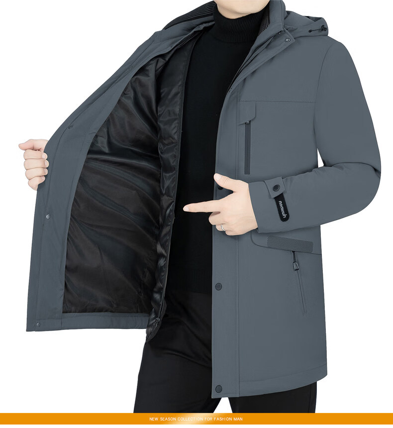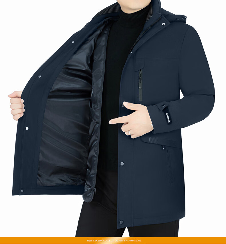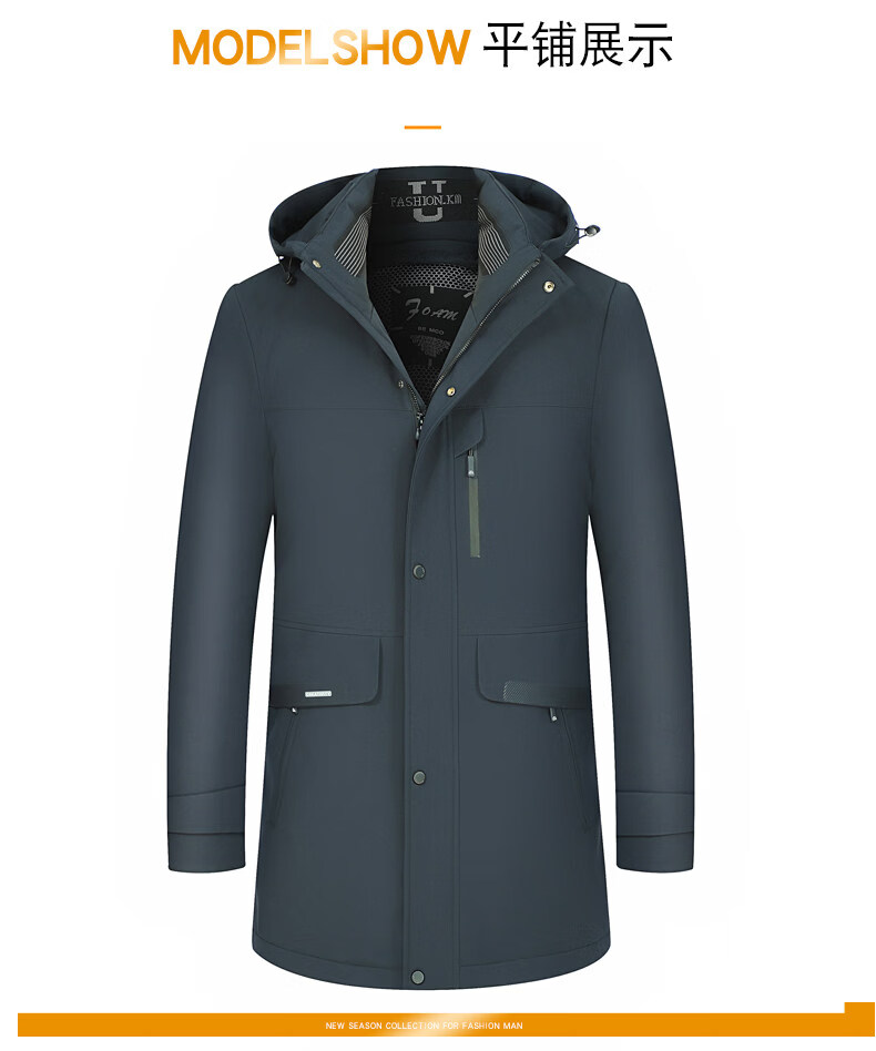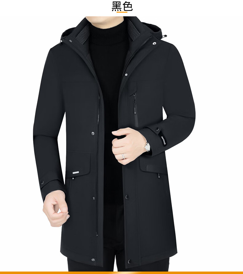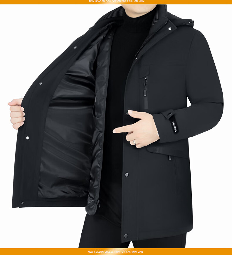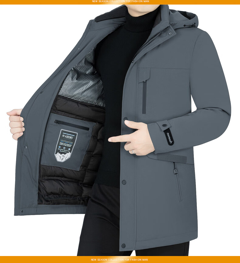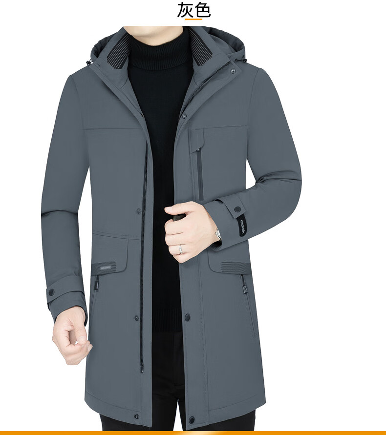 Hengyuanxiang winter men's removable liner middle-aged men's goose down down jacket mid-length parka dark gray lively goose down M 170 (90-110Jin Jin equals 0.5kg)