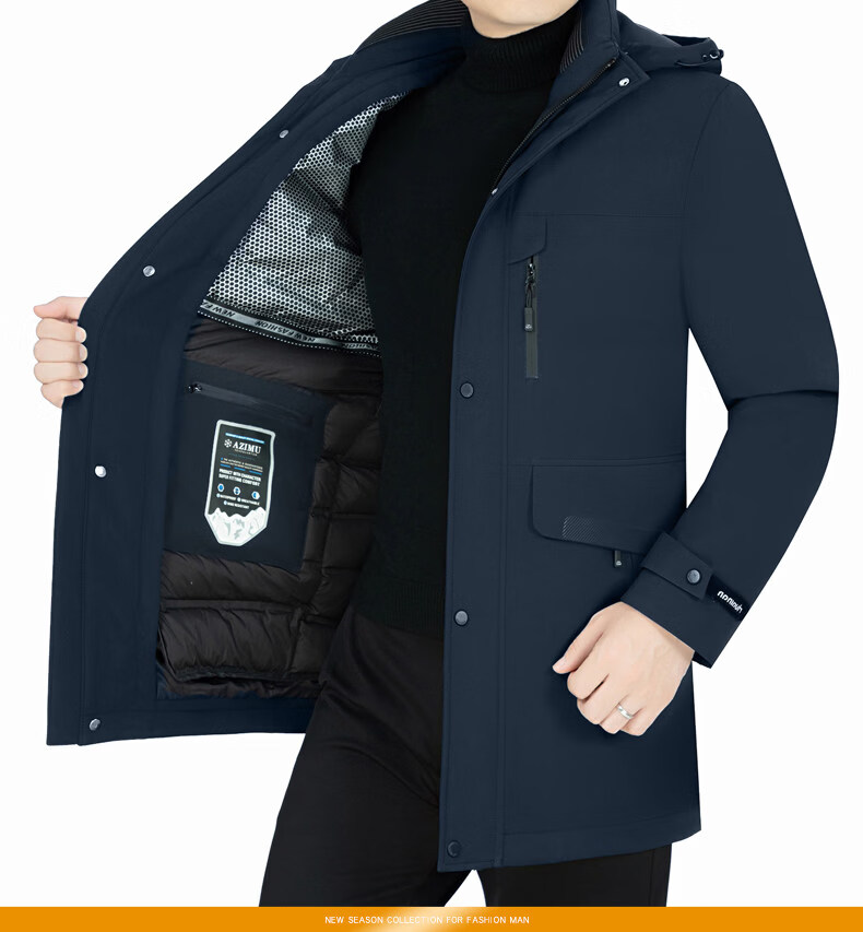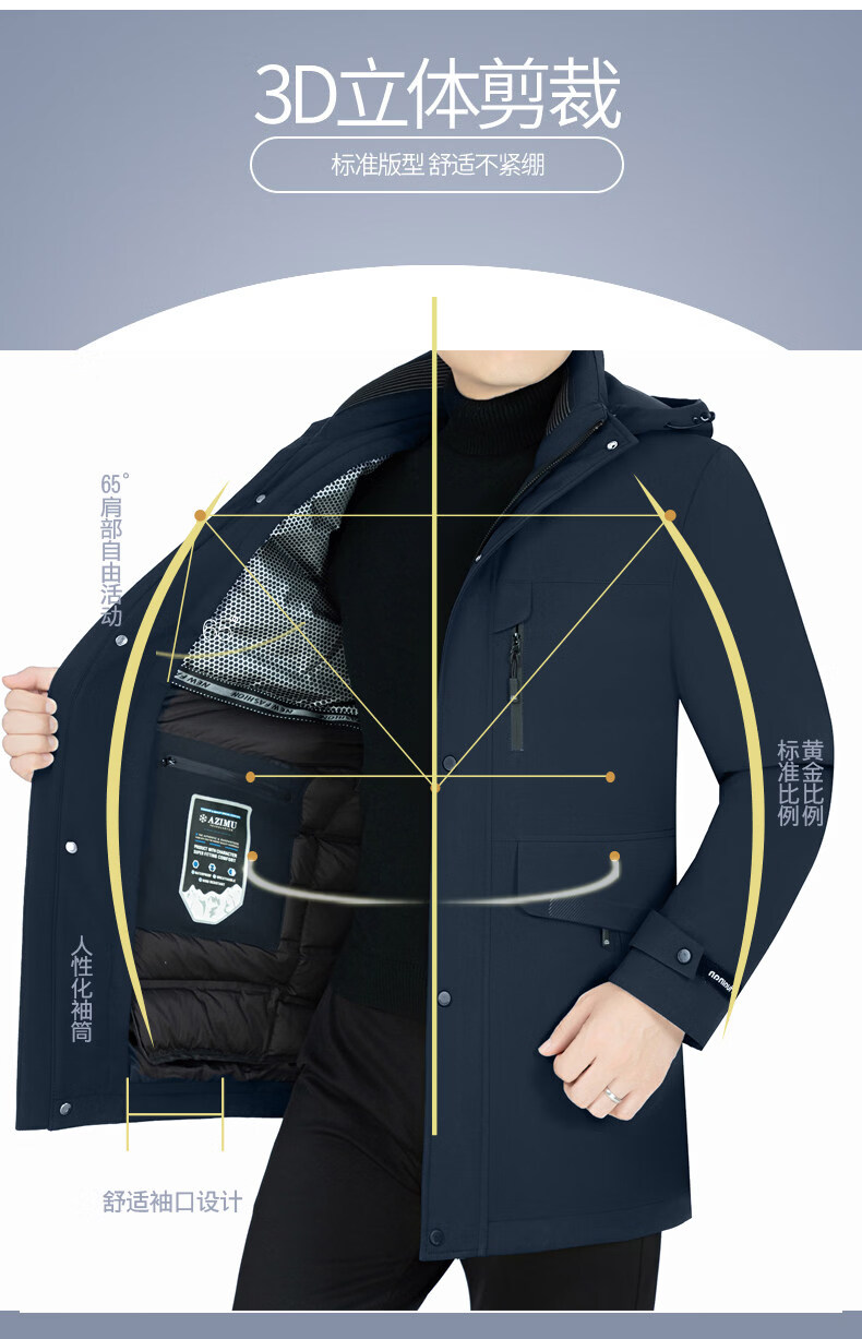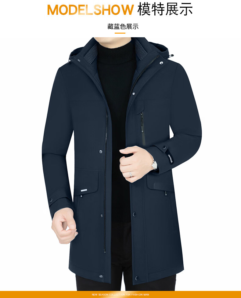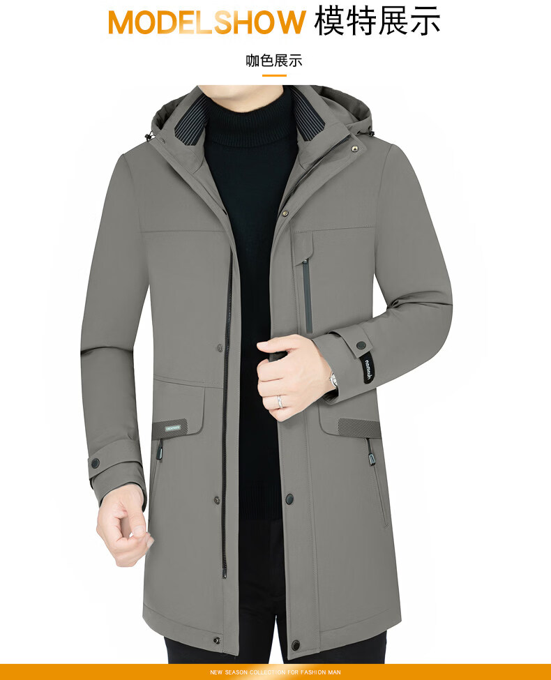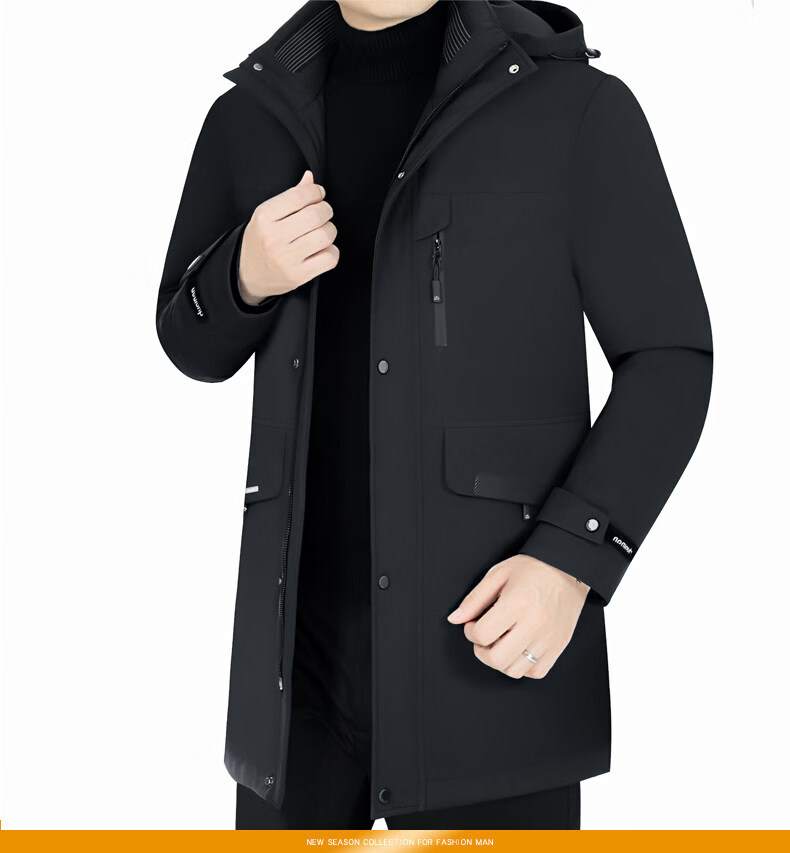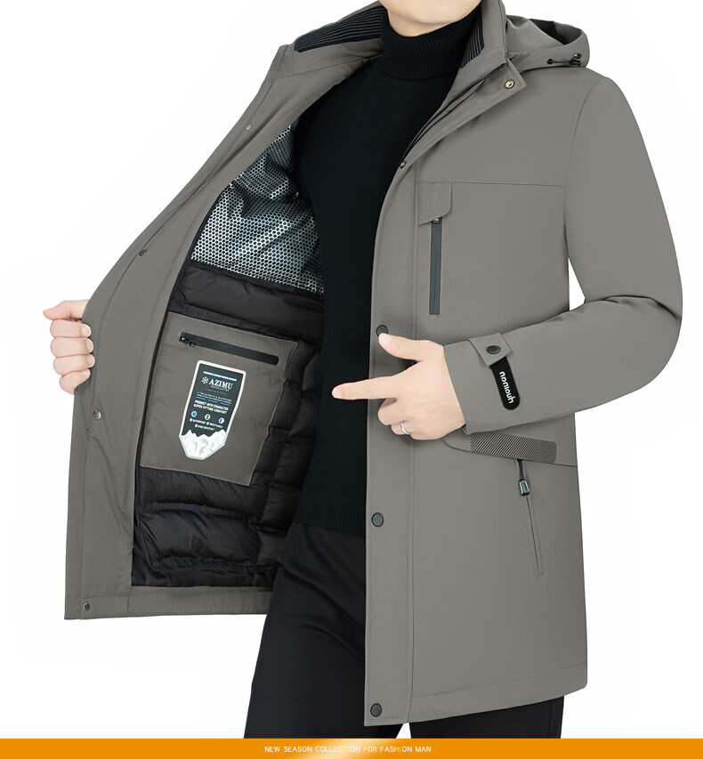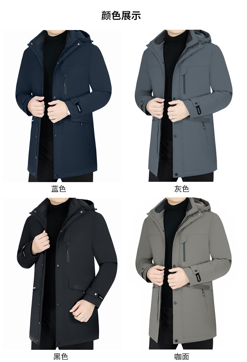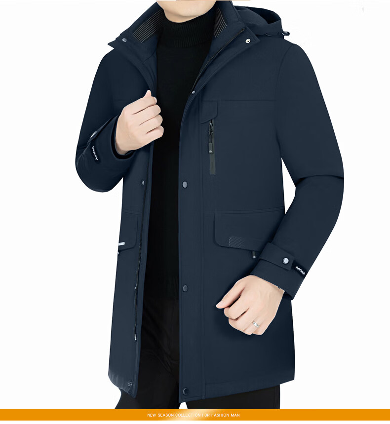Hengyuanxiang winter men's removable liner middle-aged men's goose down down jacket mid-length parka dark gray lively goose down M 170 (90-110Jin Jin equals 0.5kg)
