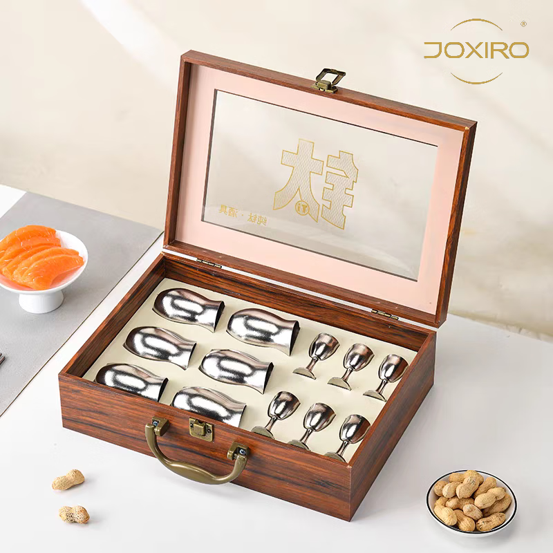 Jiuxilu Official Authentic Jinzunyin Pure Titanium Wine Set Twelve-piece Snowflake Silver Three-piece Set