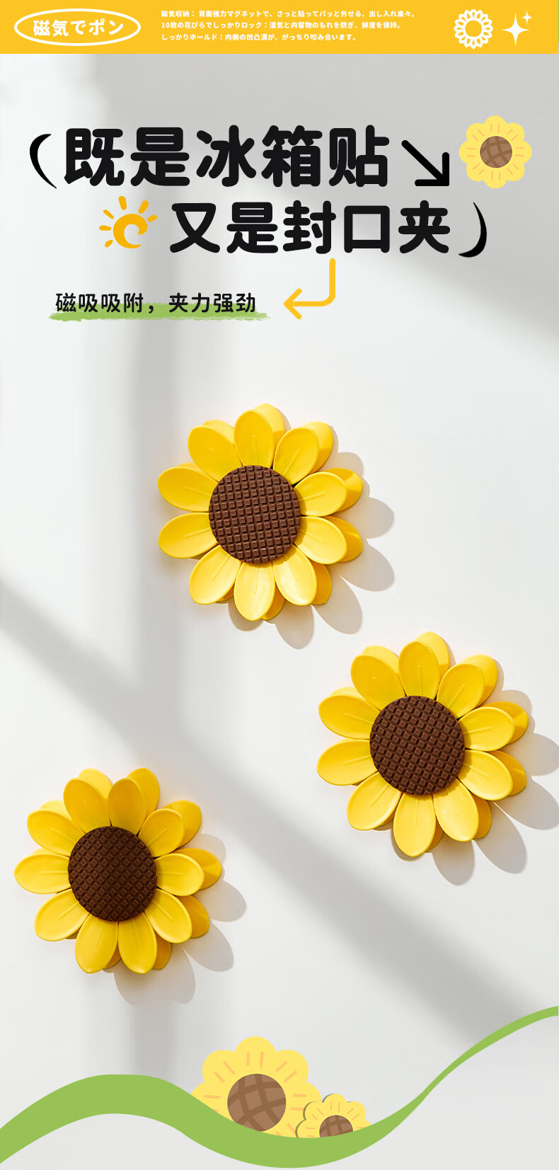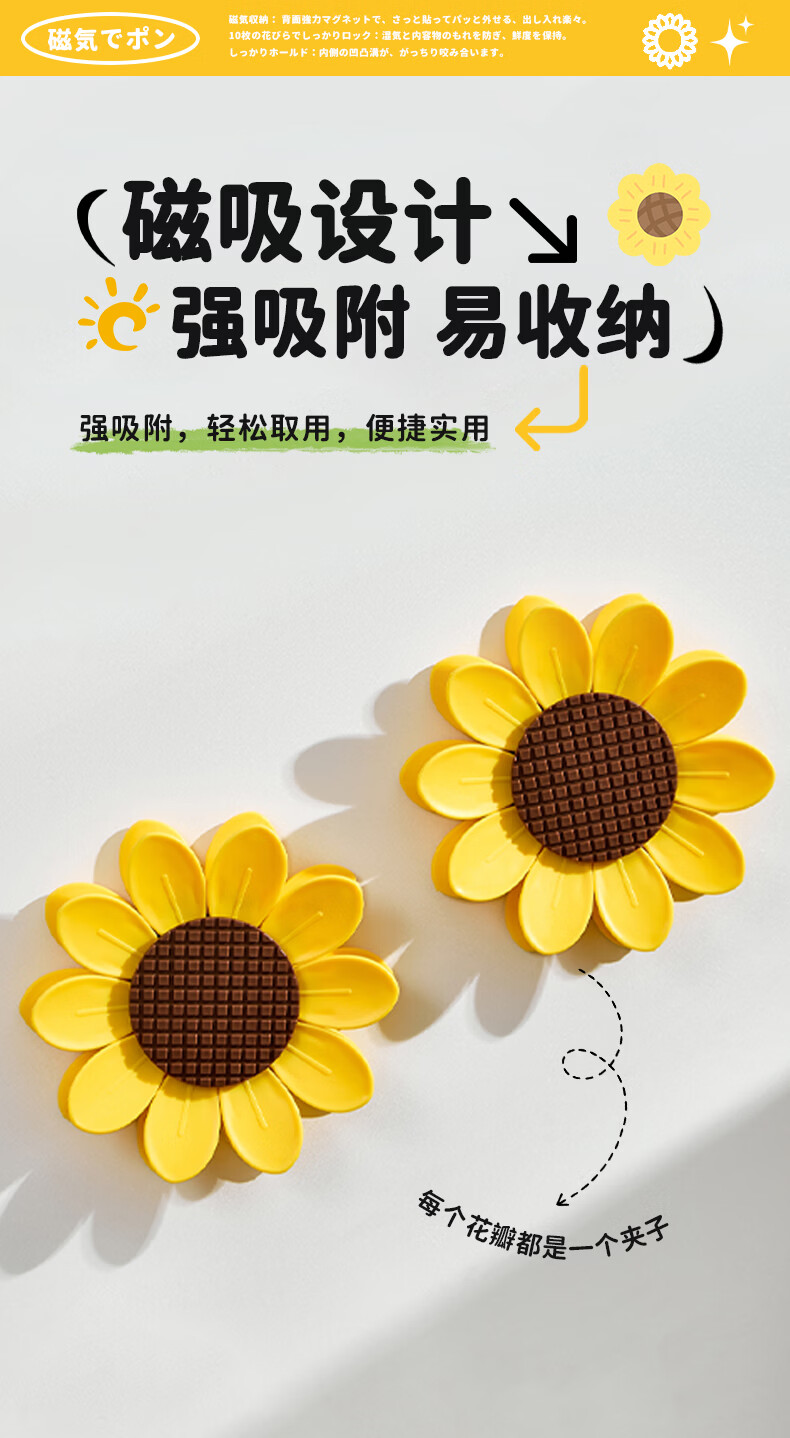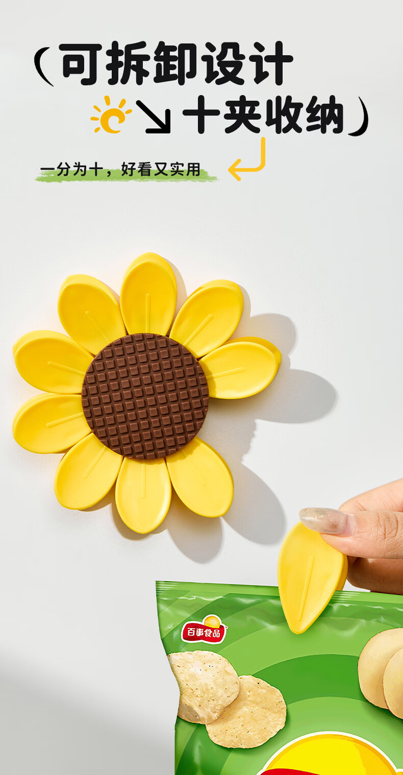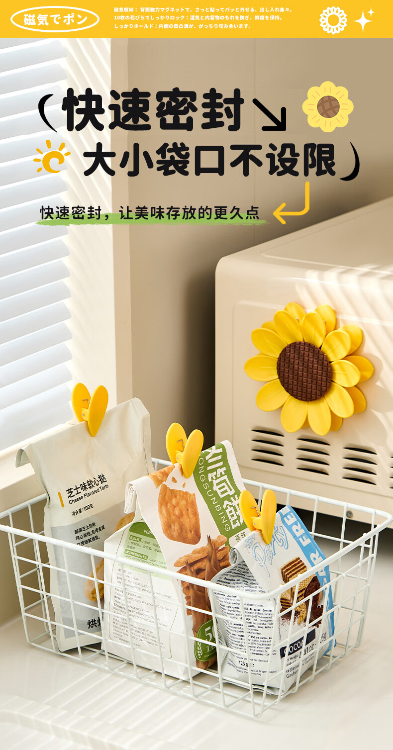 Home KATEI STORY Japanese magnetic sunflower sealing clip snack sealing clip personalized petal three-dimensional refrigerator magnet food bag clip sunflower magnetic sealing clip 1 set-10 small clips