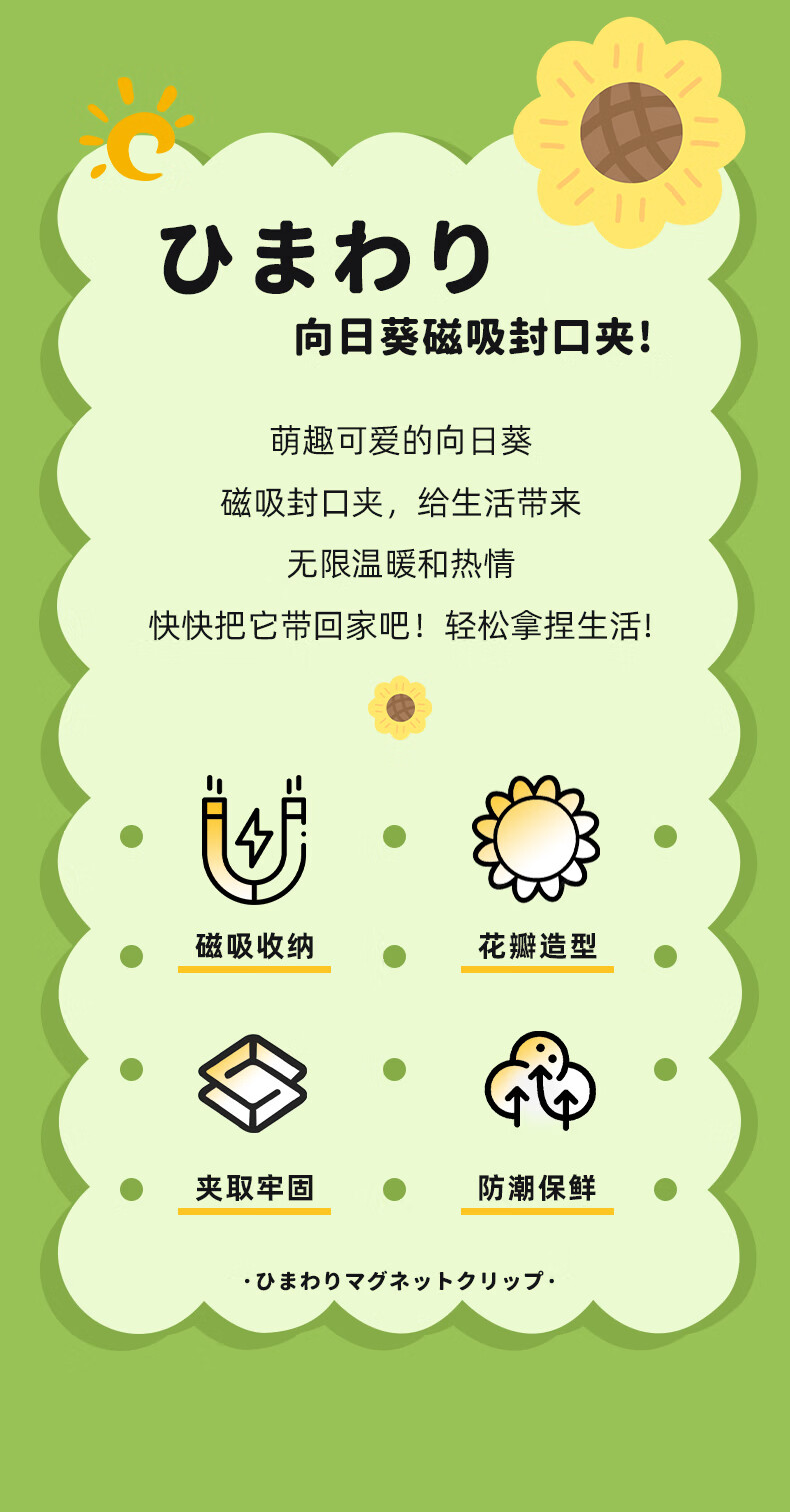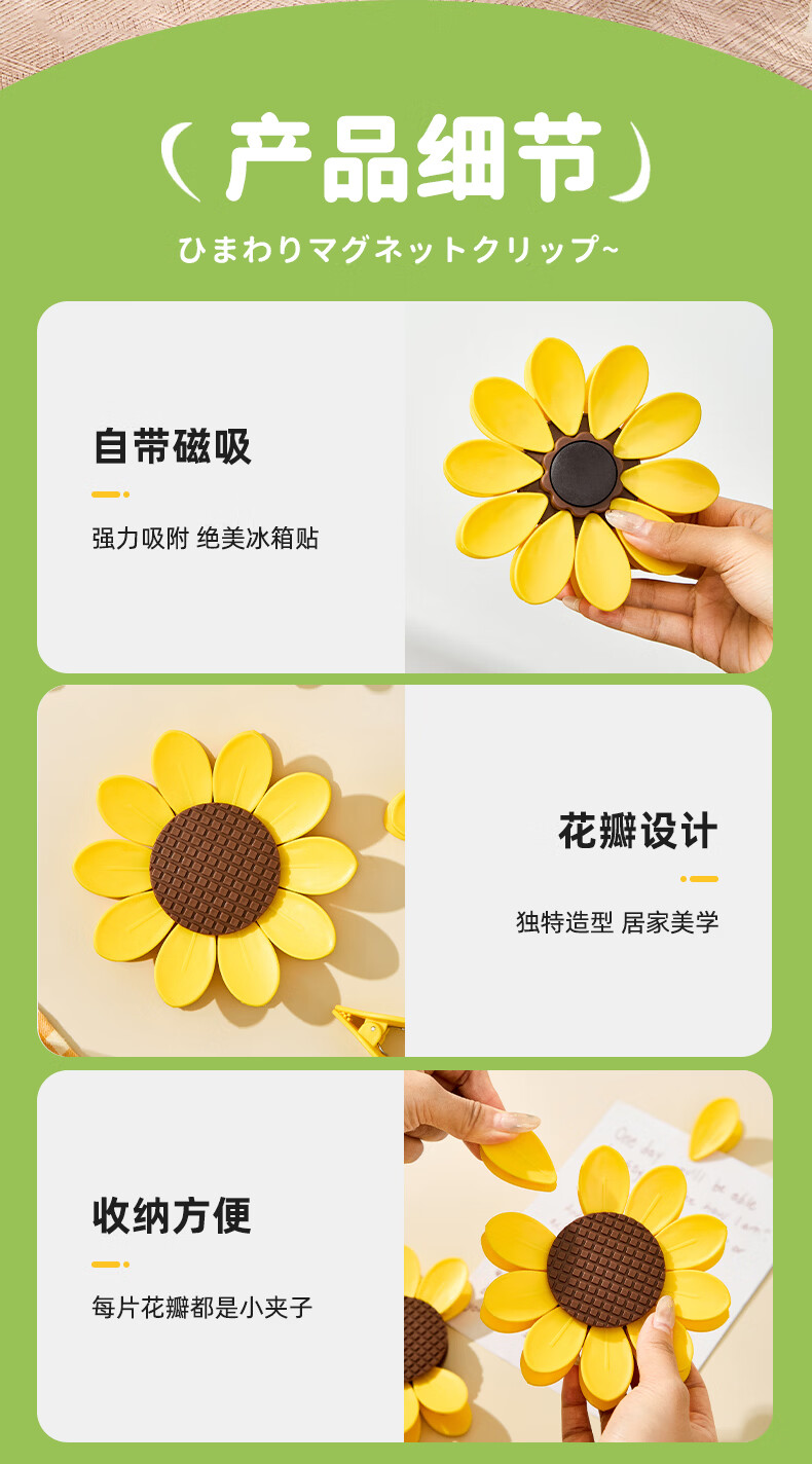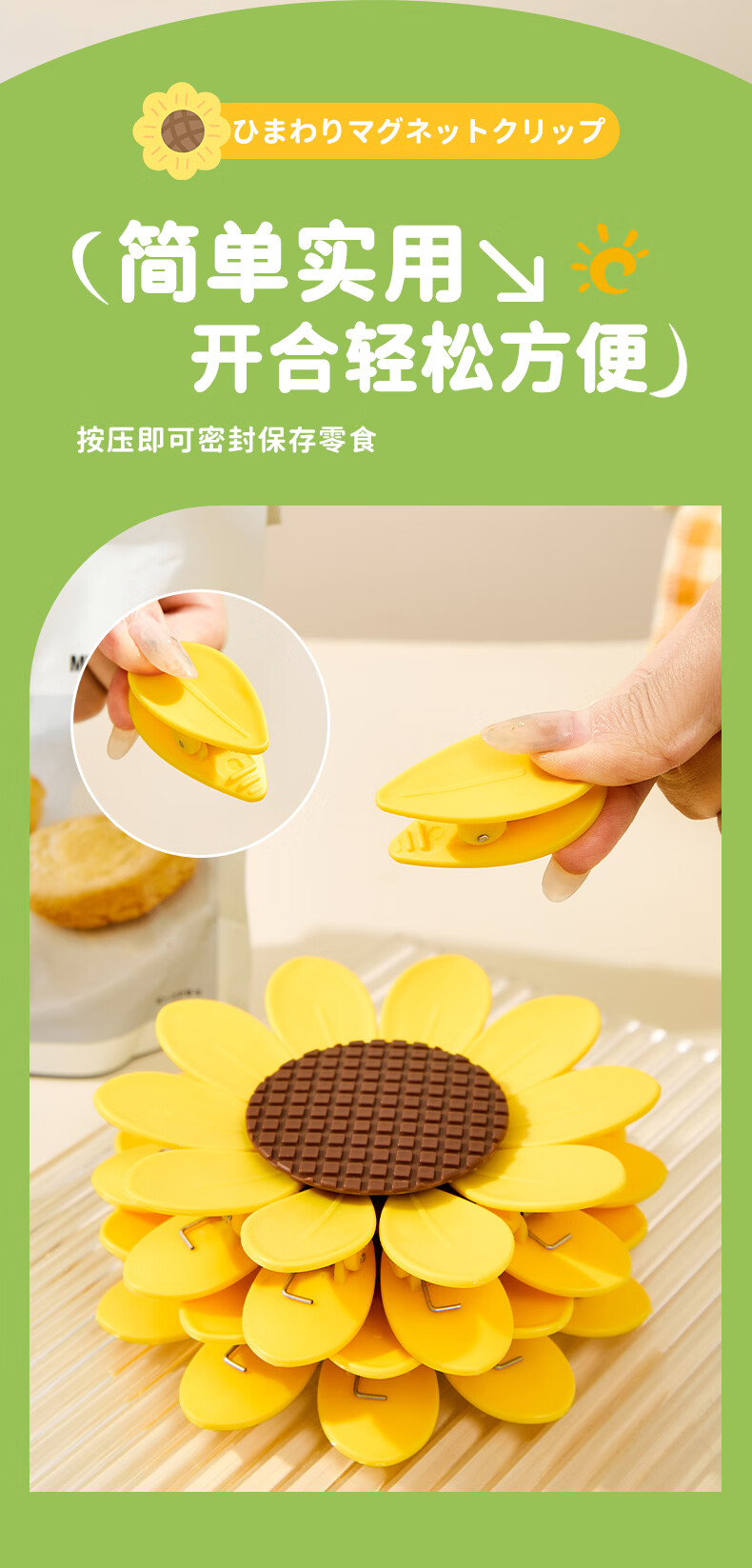 Home KATEI STORY Japanese magnetic sunflower sealing clip snack sealing clip personalized petal three-dimensional refrigerator magnet food bag clip sunflower magnetic sealing clip 1 set-10 small clips