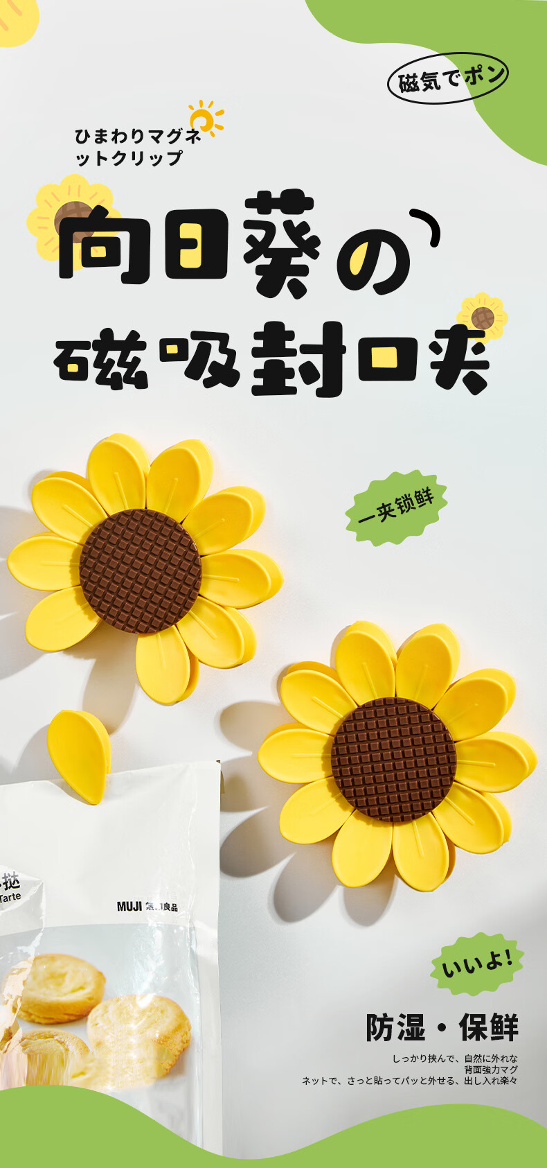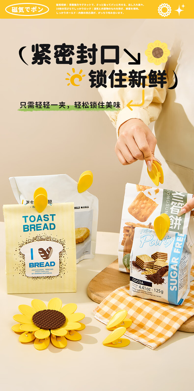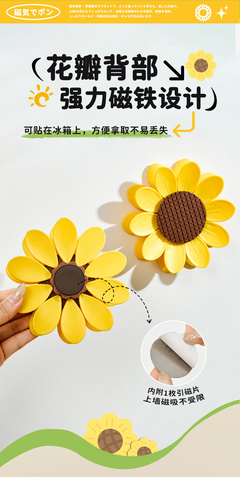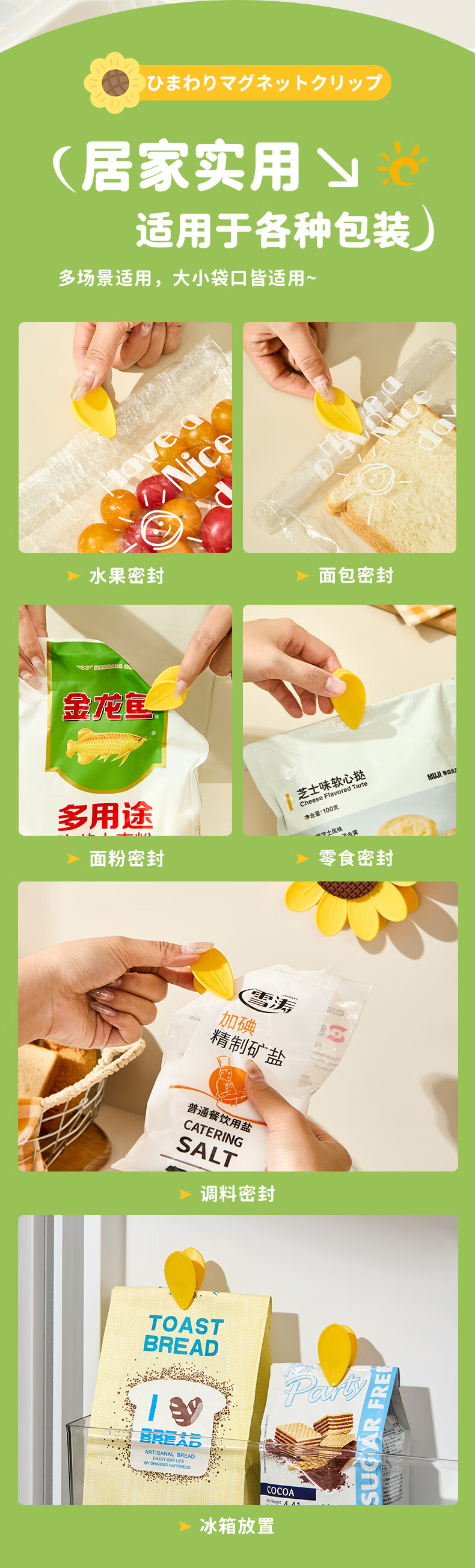 Home KATEI STORY Japanese magnetic sunflower sealing clip snack sealing clip personalized petal three-dimensional refrigerator magnet food bag clip sunflower magnetic sealing clip 1 set-10 small clips