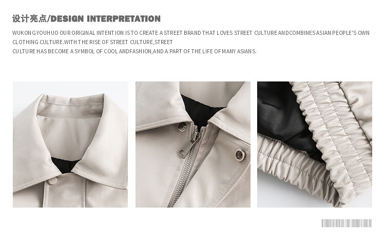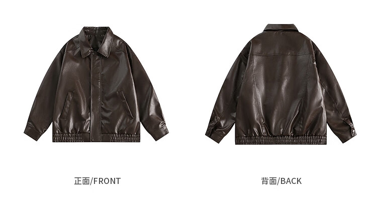 Zuoxu trendy brand solid color motorcycle jacket for men and women American street loose and versatile PU leather jacket Maillard jacket spring and autumn black M
