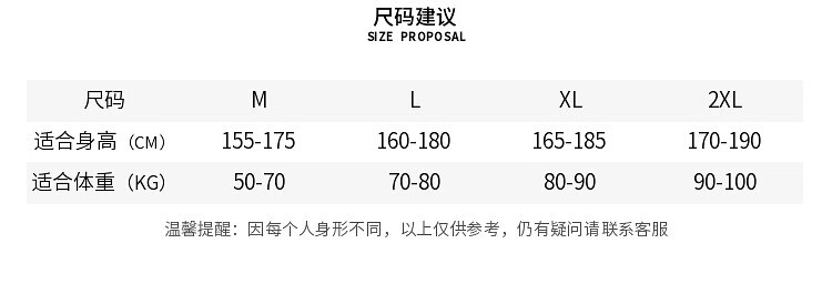 China (cm) 165 / 88-90 170 / 96-98 175 / 108-110 180 / 118-122 185 / 126-130