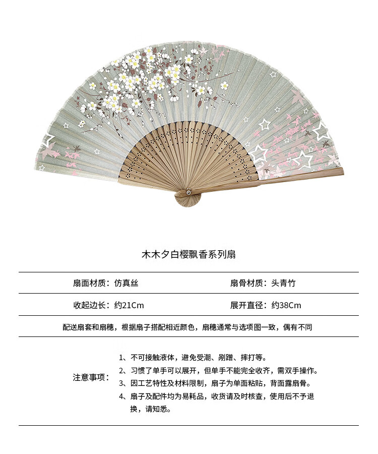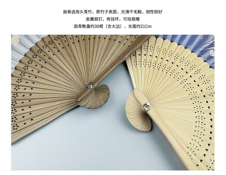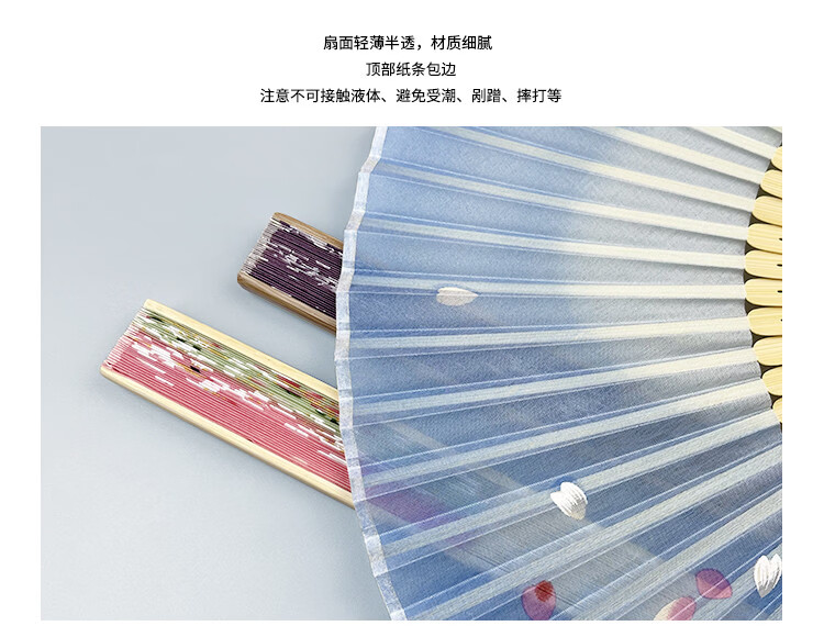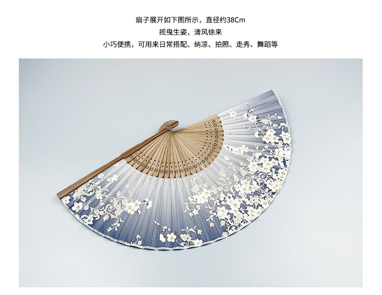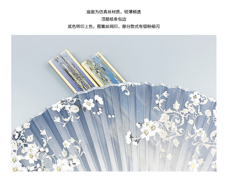Fantasy Fan Folding Fan Women's Chinese Style Ancient Style Classical Folding Fan Japanese Craft Fan Sakura Folding Small Fan D12 Blue Cherry Blossom Daily Fan