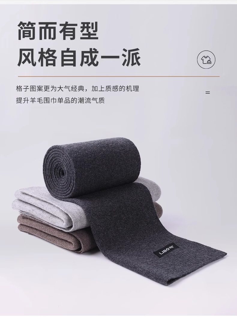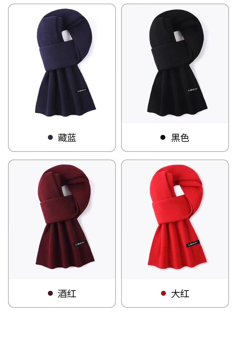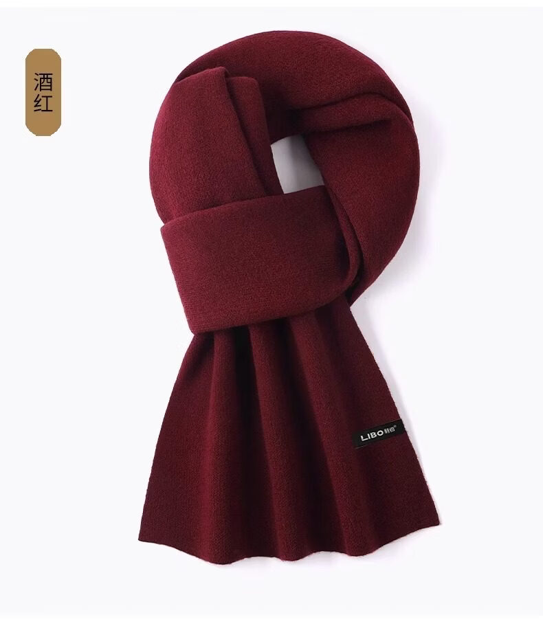 Hengyuanxiang wool men's and women's scarf thickened and warm in winter red versatile Korean style knitted high-end scarf gift box brand burgundy
