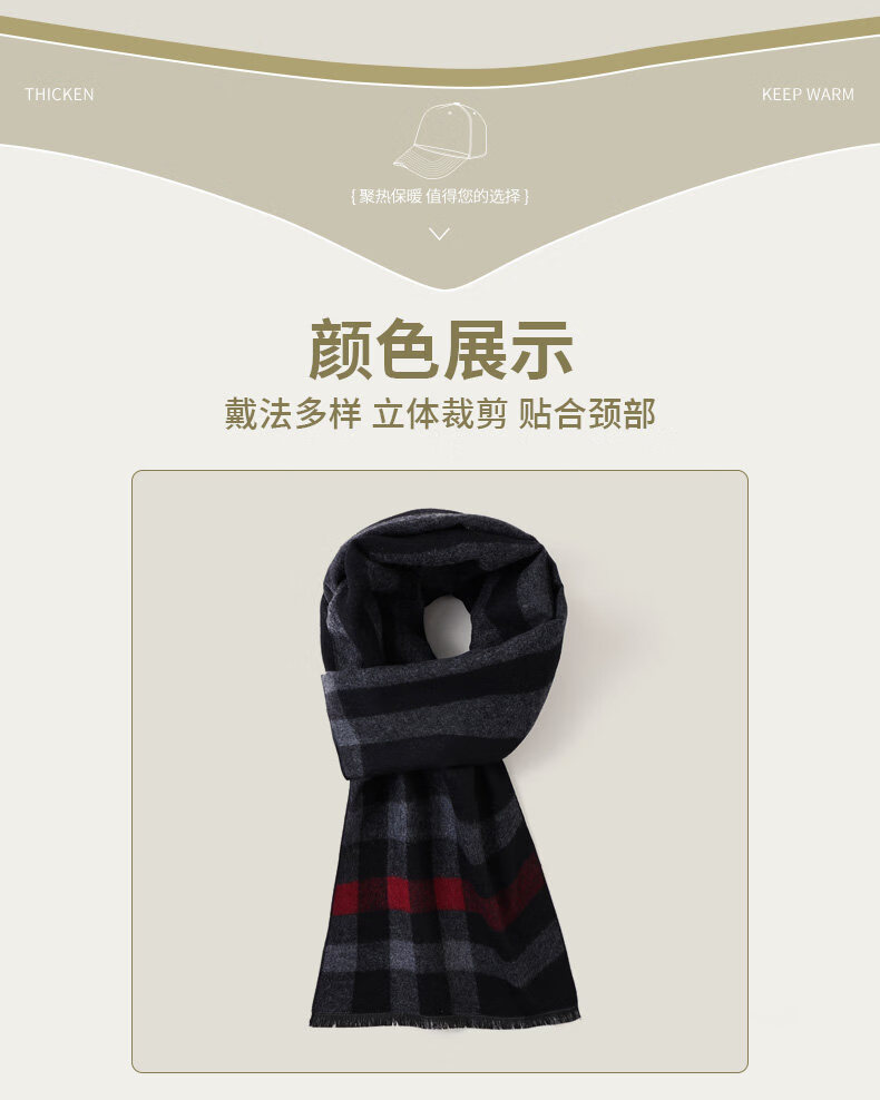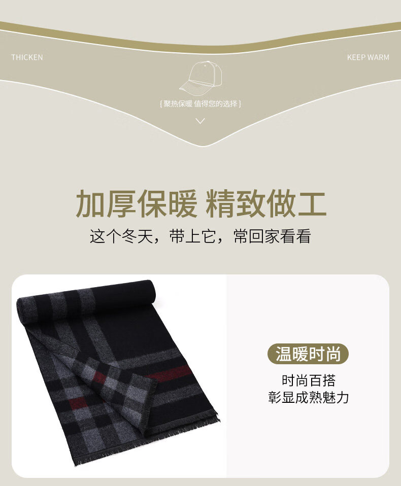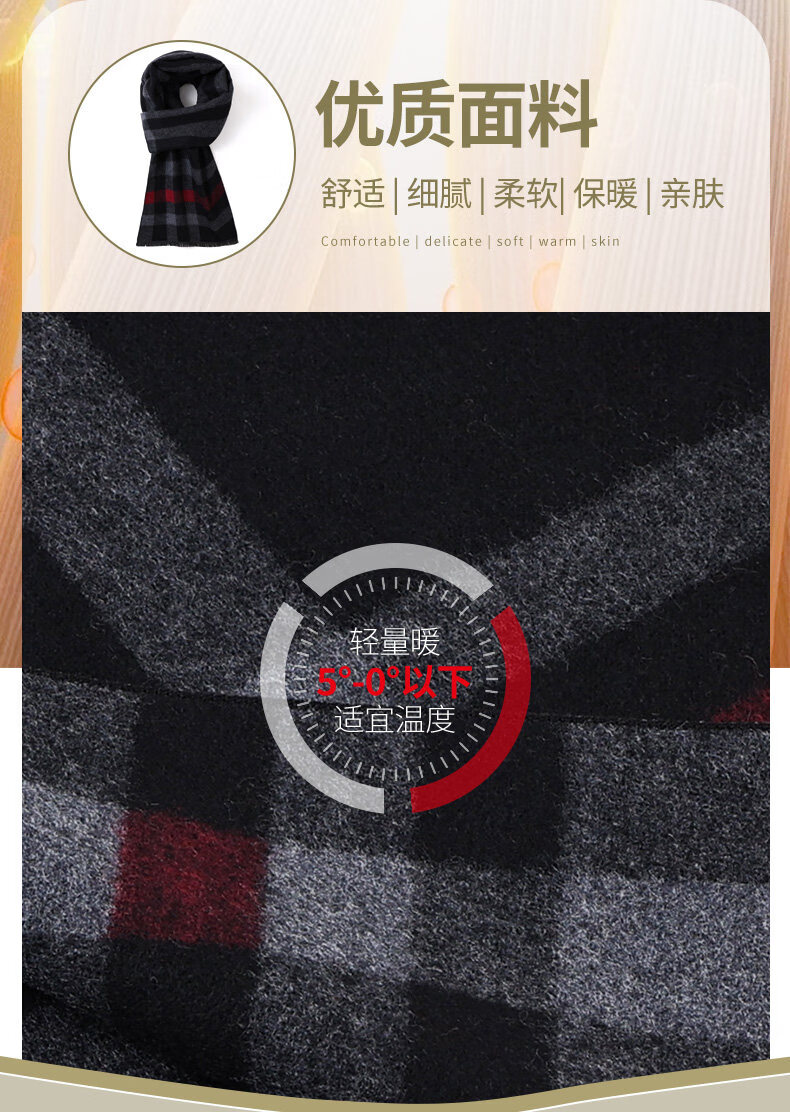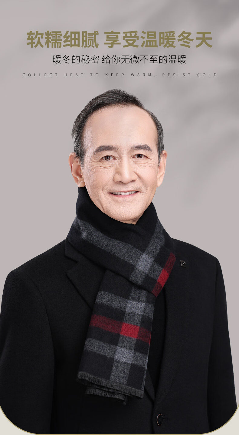 Hengyuanxiang wool scarf for men and women, winter warm scarf, middle-aged and elderly scarf, red scarf gift for mom, dad, elders, brand men - black and gray striped wool blended gift box