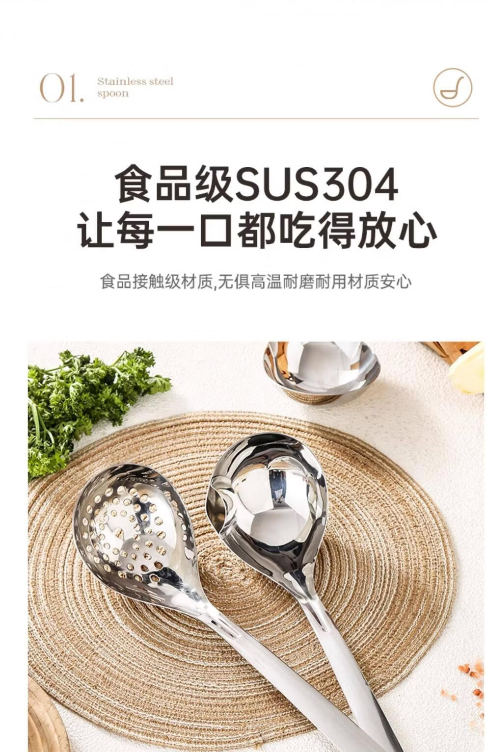 Yiyipai 304 stainless steel soup spoon large soup long handle food grade hot pot colander hot pot spoon household exquisite 304 food grade soup spoon comes with stainless steel testing liquid