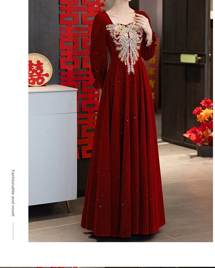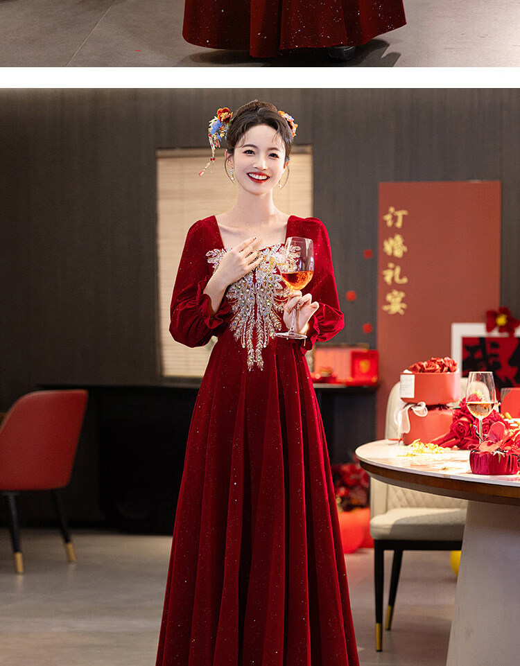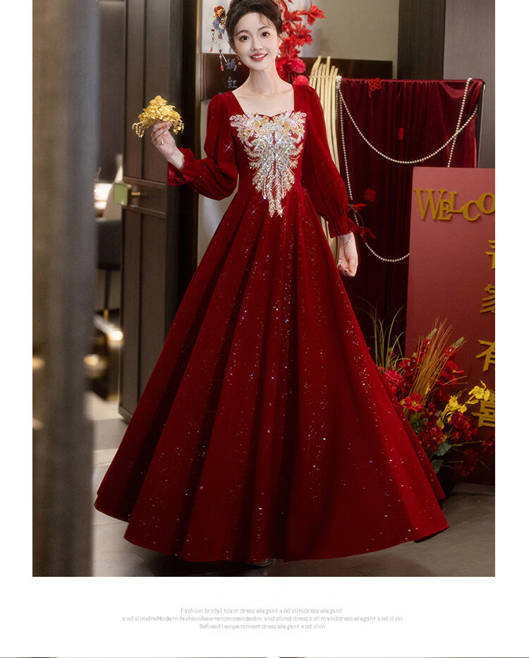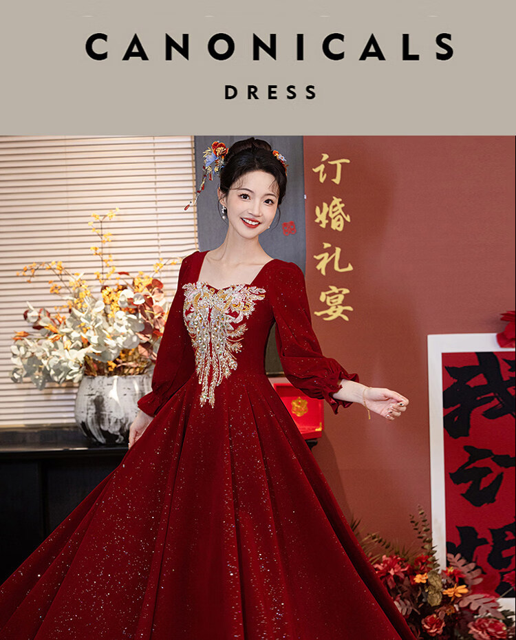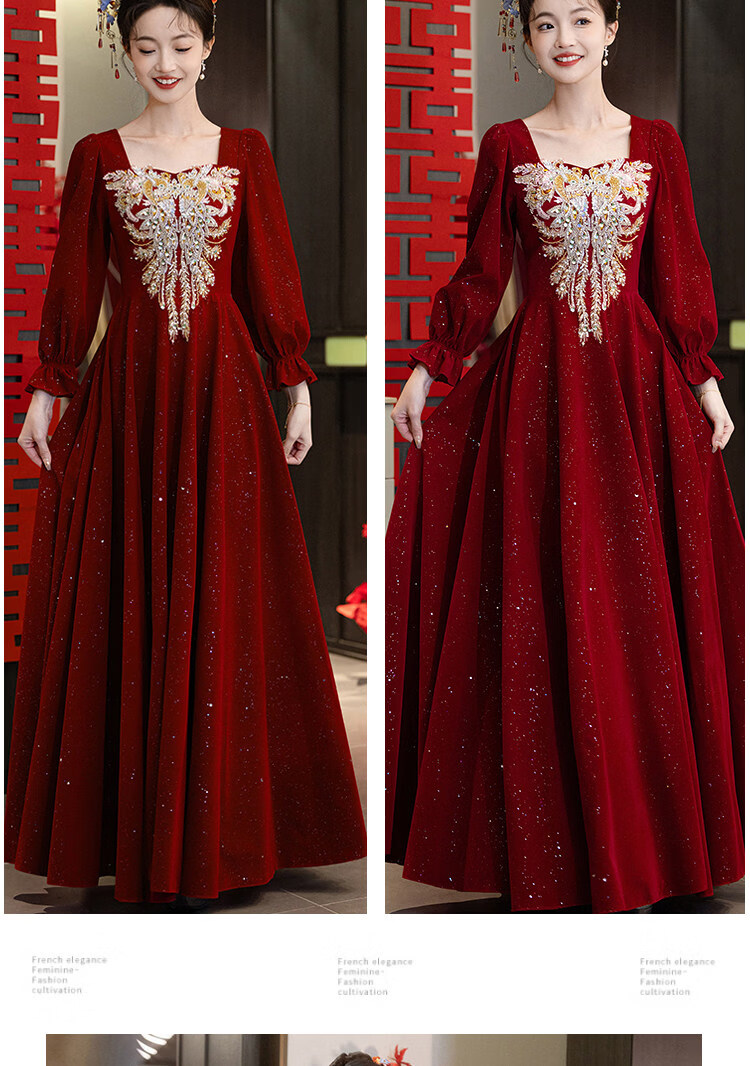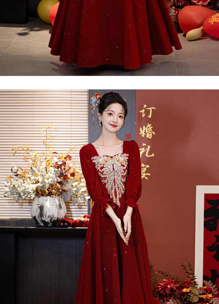 Pierre Cardin Large Size Toast Wear 2026 New Bride Wedding Home Temperament High-end Winter Burgundy Engagement Dress Burgundy 081 M (bust 85, waist 68) (100Jin Jin is equal to 0.5kg 110Jin Jin is equal to 0.5kg