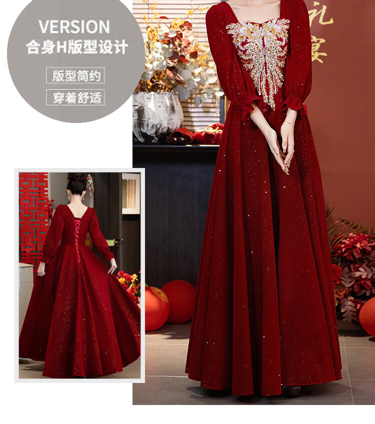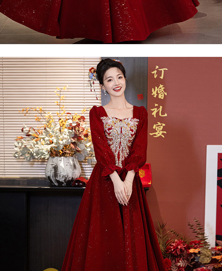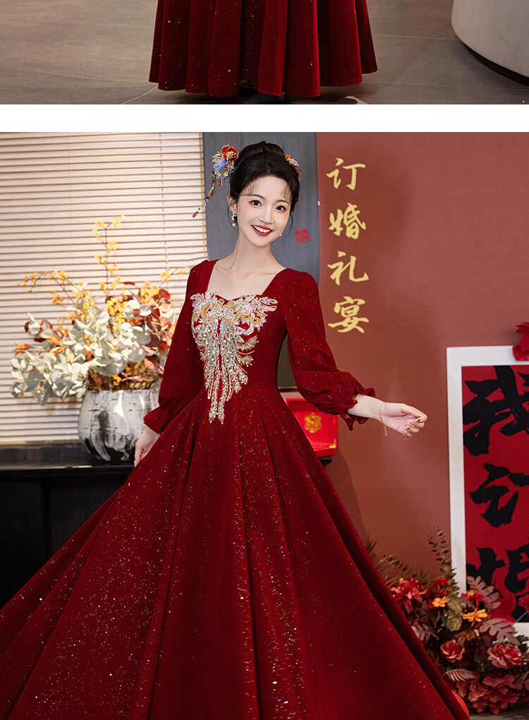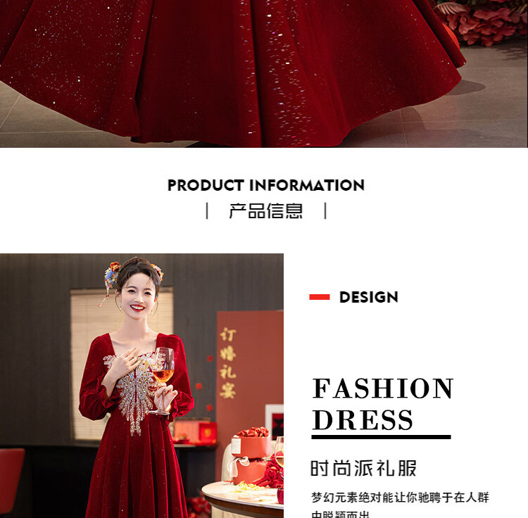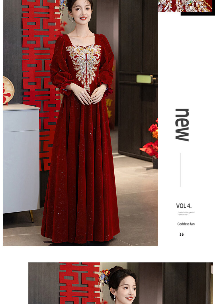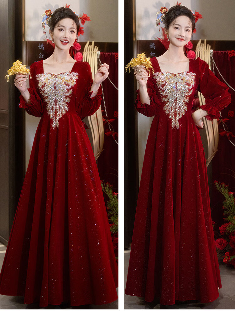 Pierre Cardin Large Size Toast Wear 2026 New Bride Wedding Home Temperament High-end Winter Burgundy Engagement Dress Burgundy 081 M (bust 85, waist 68) (100Jin Jin is equal to 0.5kg 110Jin Jin is equal to 0.5kg