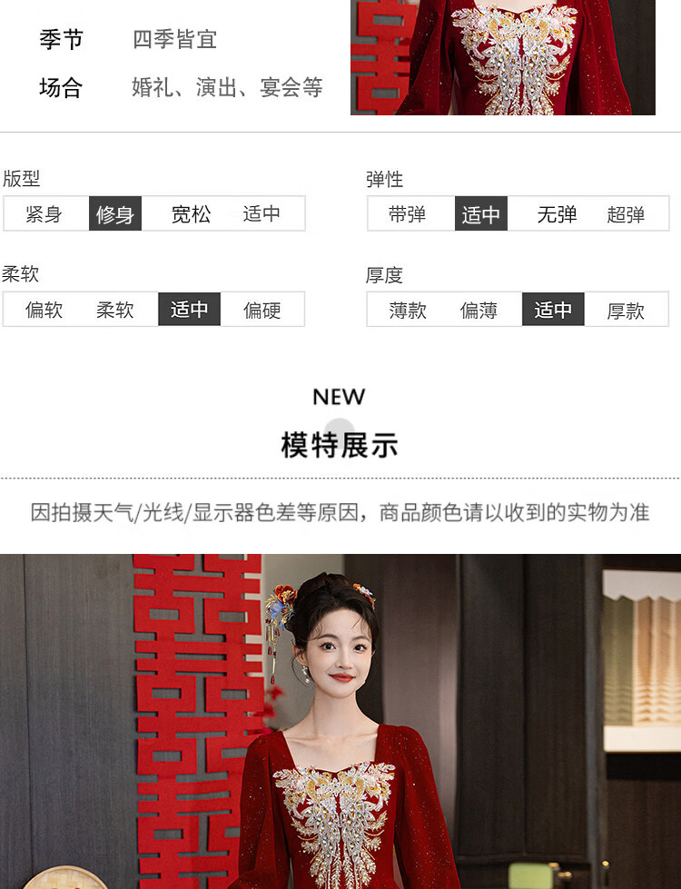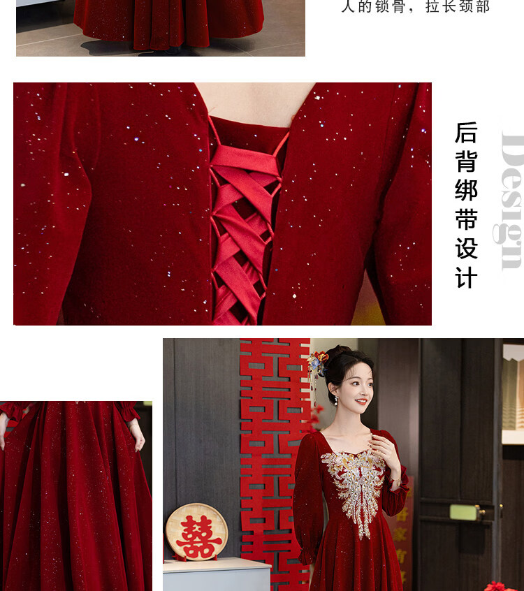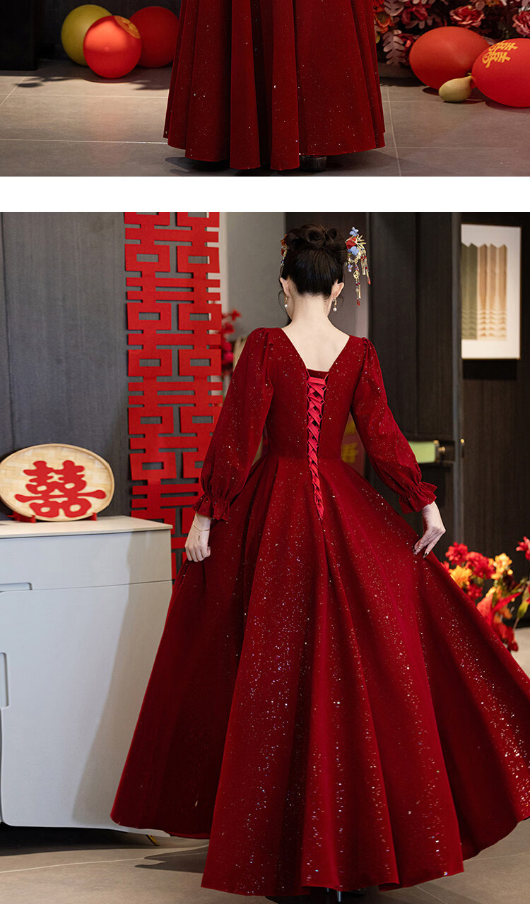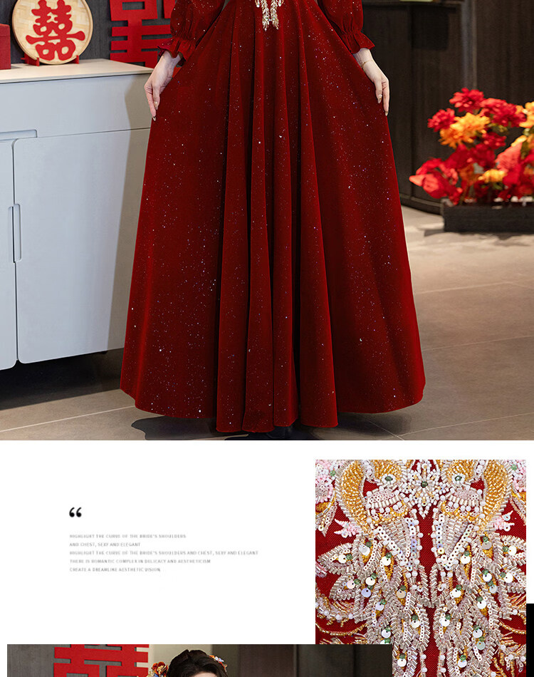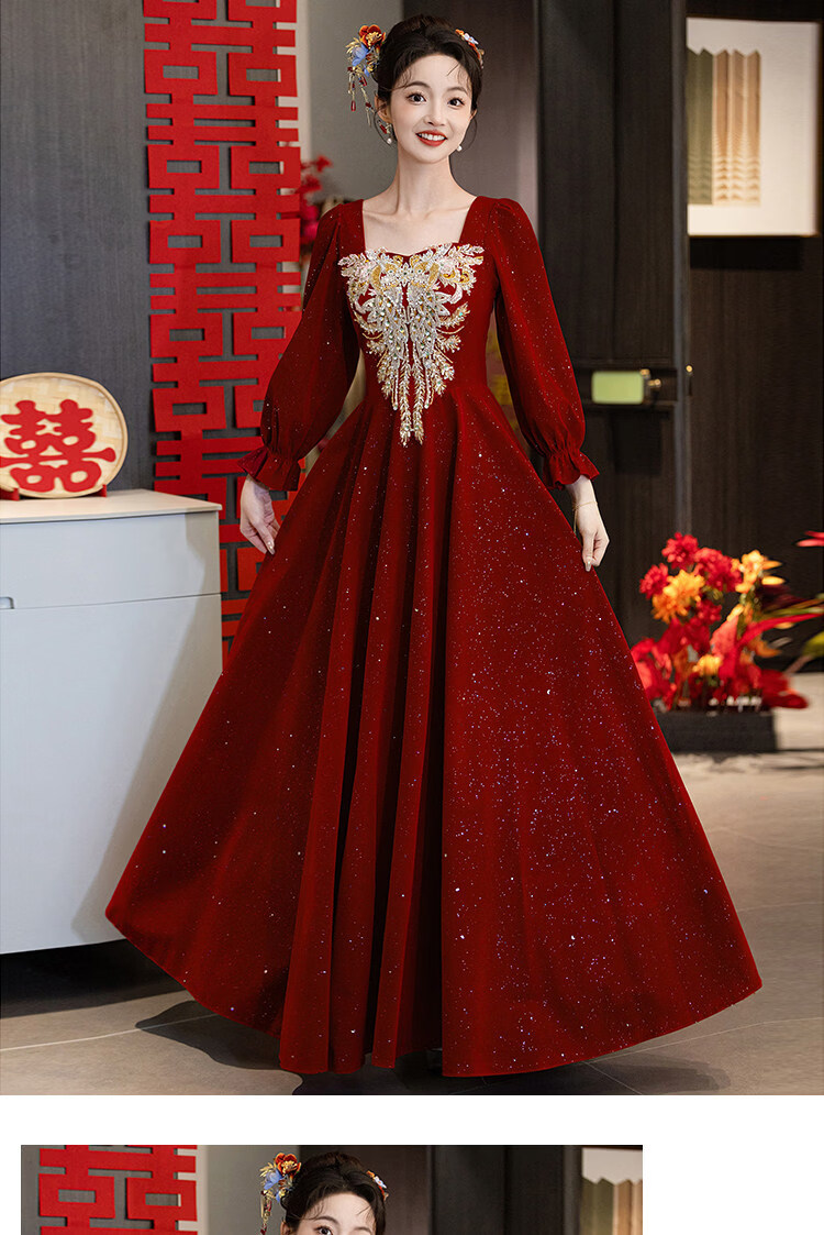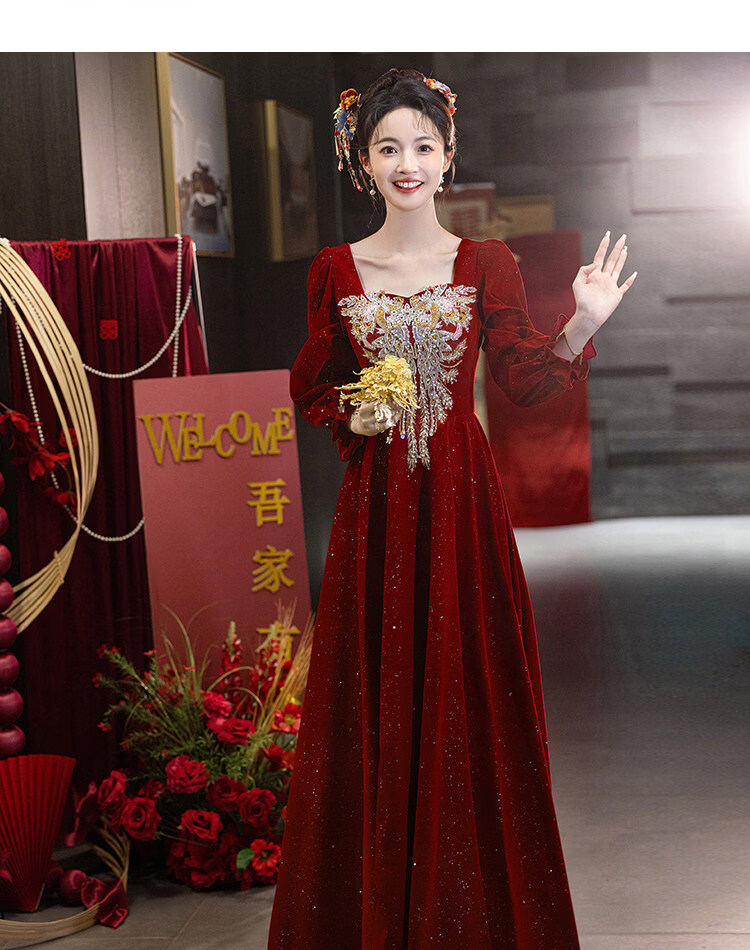 Pierre Cardin Large Size Toast Wear 2026 New Bride Wedding Home Temperament High-end Winter Burgundy Engagement Dress Burgundy 081 M (bust 85, waist 68) (100Jin Jin is equal to 0.5kg 110Jin Jin is equal to 0.5kg