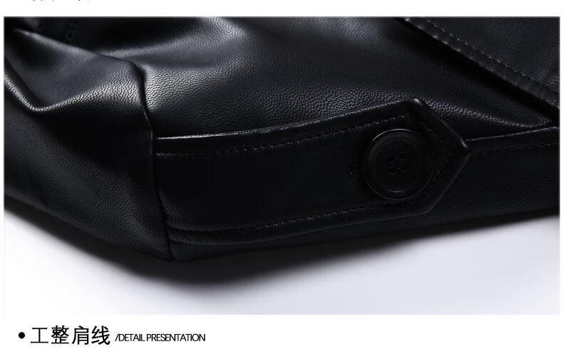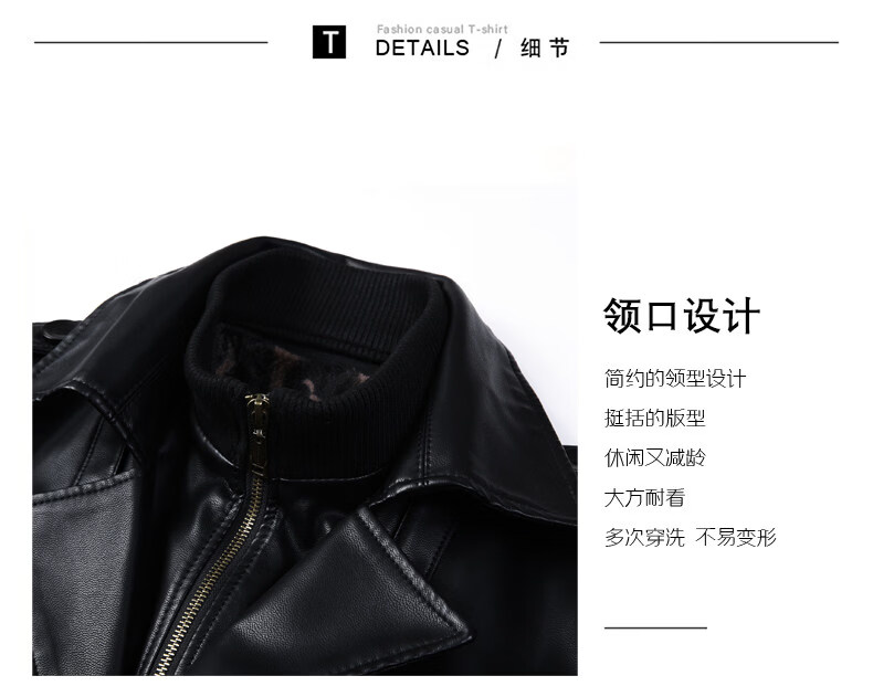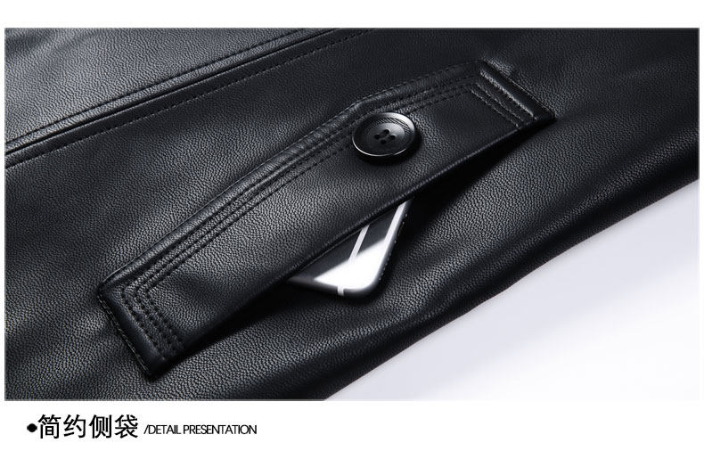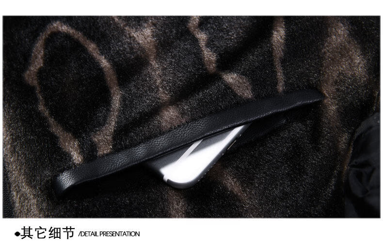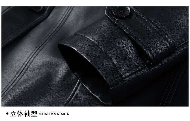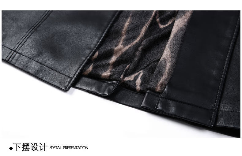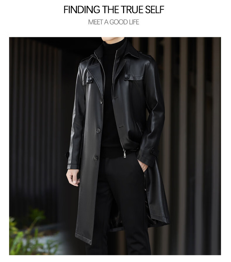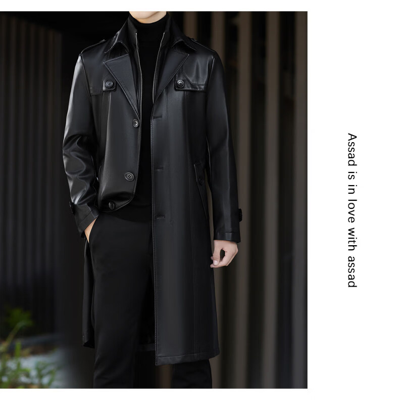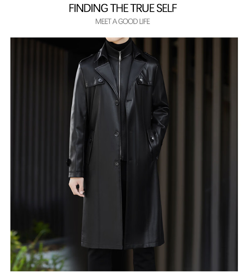 JEEP SPIRIT Leather Jacket Men's Business Plush Thickened Leather Jacket Extra Long Over-the-Knee Fur One-piece Warm Leather Coat Jacket Black M 170