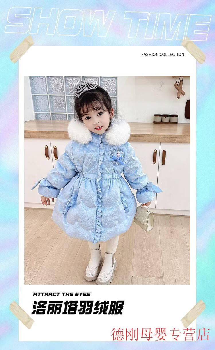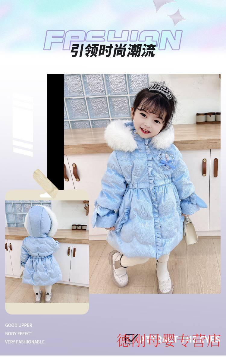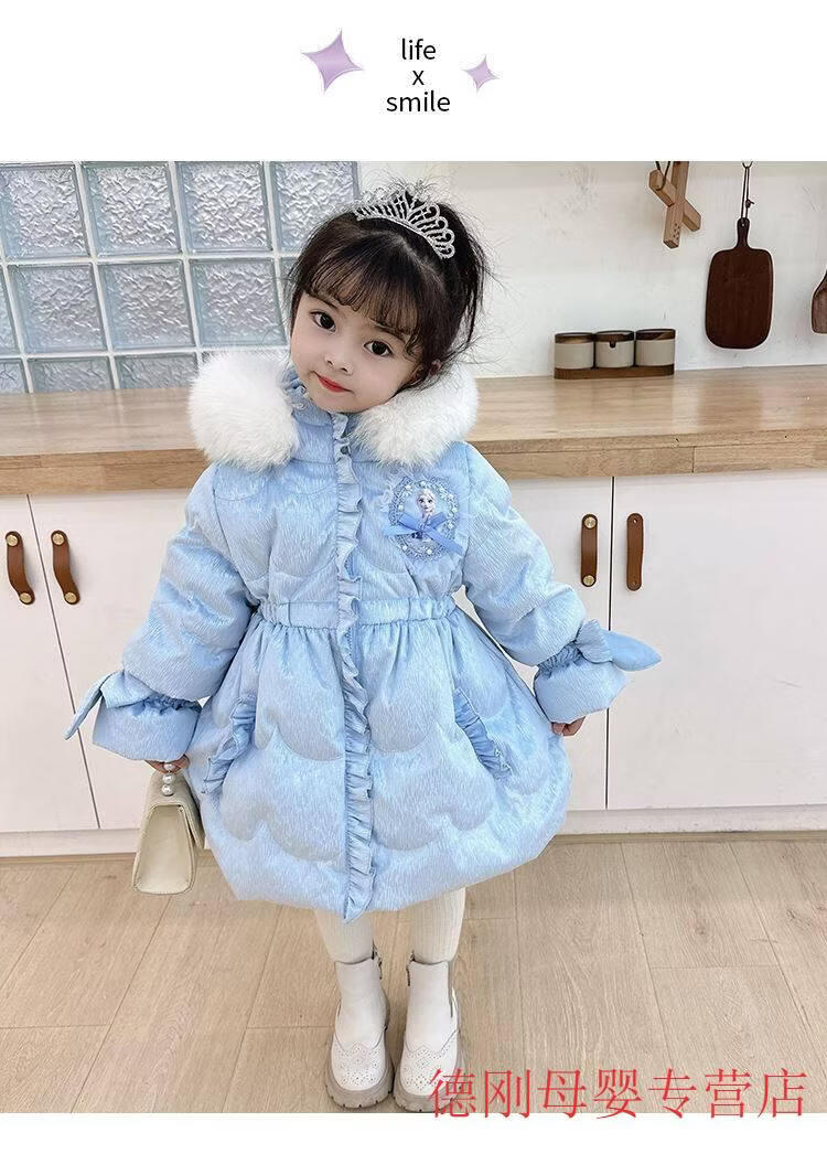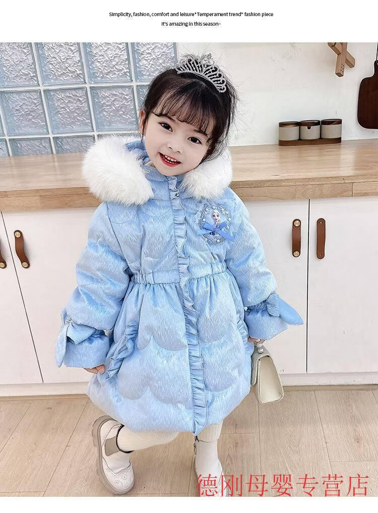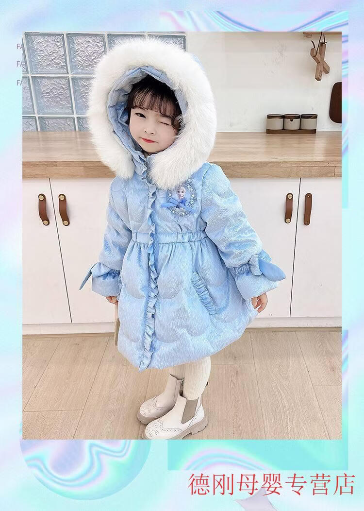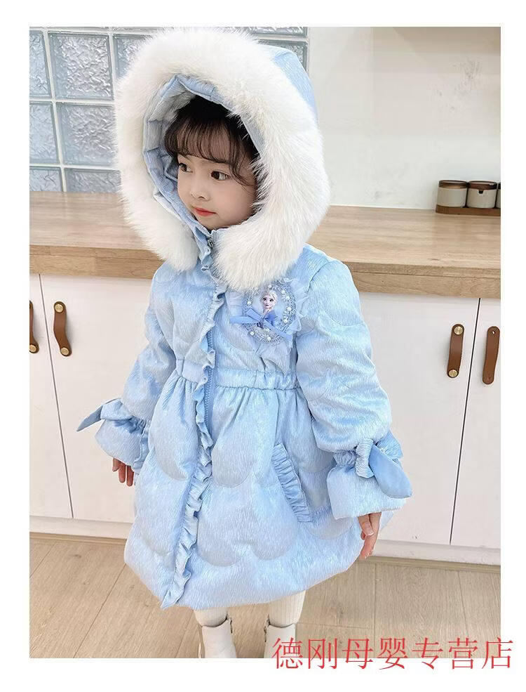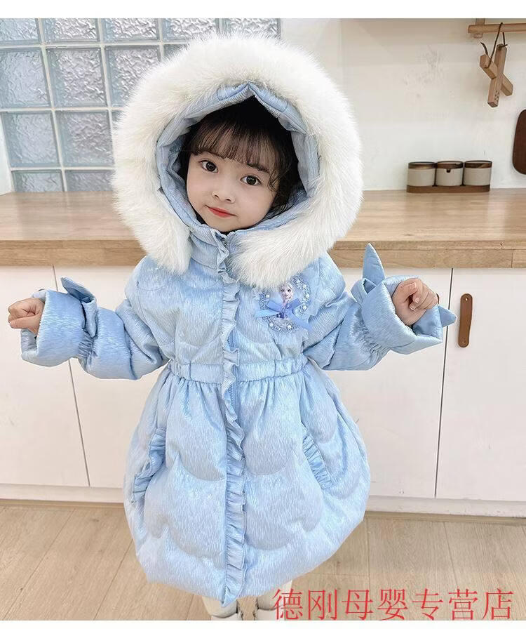 G.duck Princess Elsa Children's Down Jacket Girl Baby Frozen Lolita Winter Wear Mid-Length Thickened Slim Jacket Elsa Down Jacket 100 Recommended age 2-3 years old cm