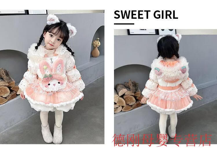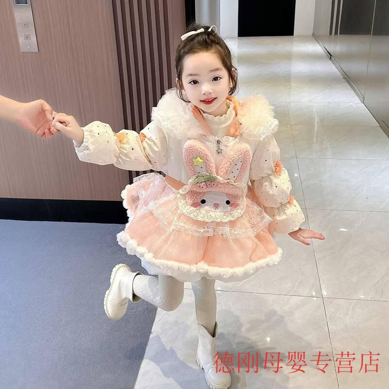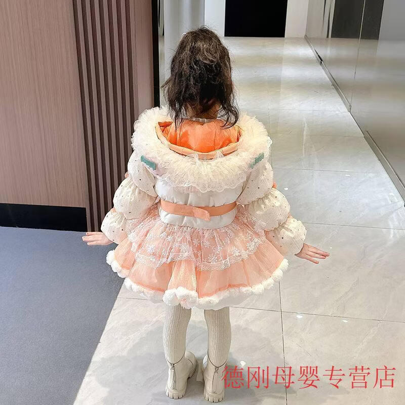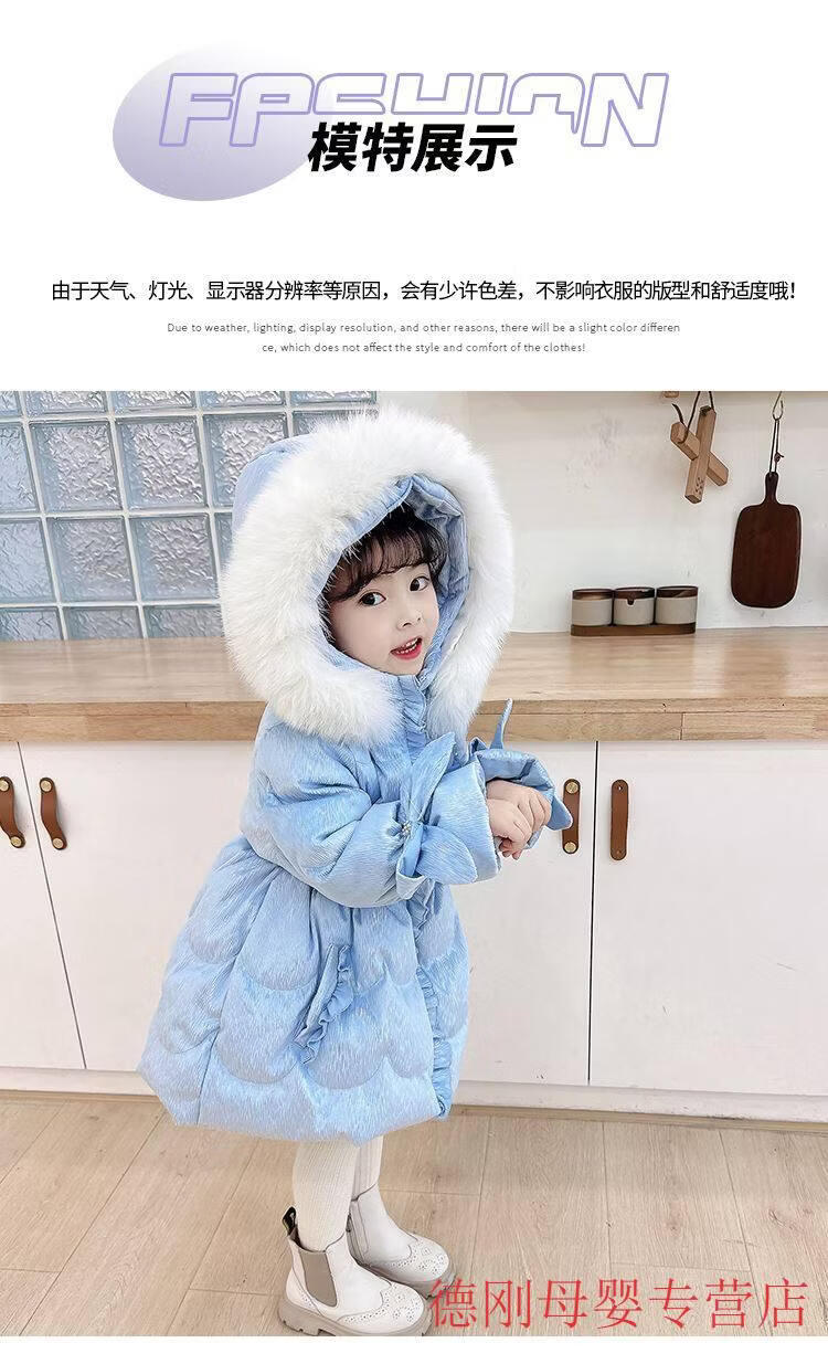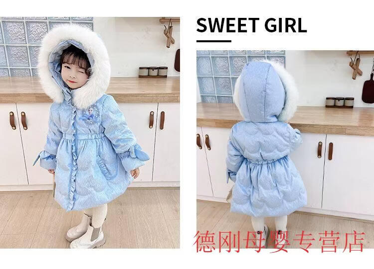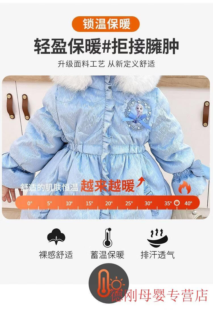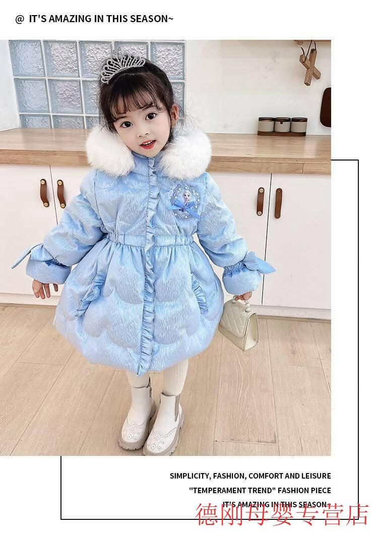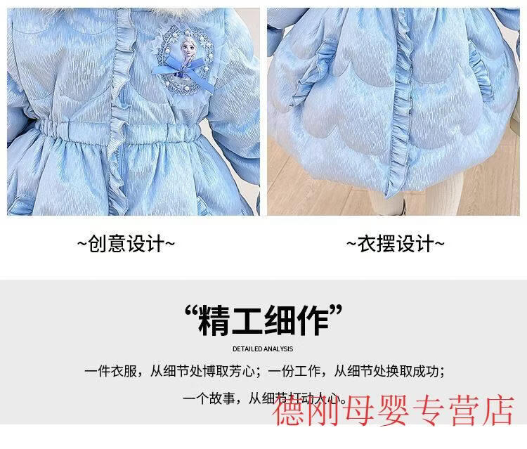 G.duck Princess Elsa Children's Down Jacket Girl Baby Frozen Lolita Winter Wear Mid-Length Thickened Slim Jacket Elsa Down Jacket 100 Recommended age 2-3 years old cm