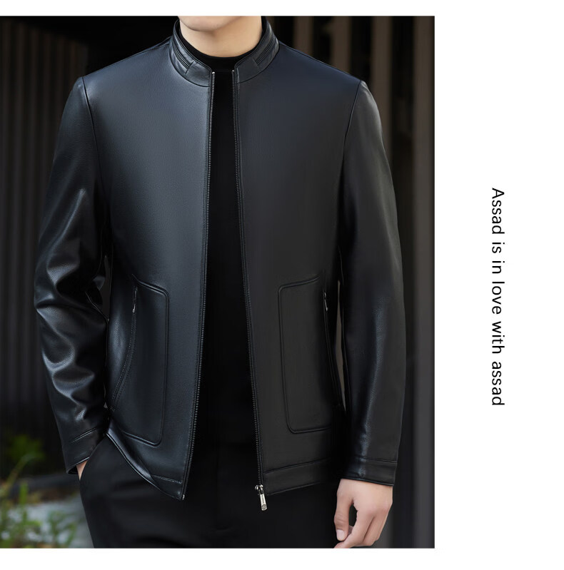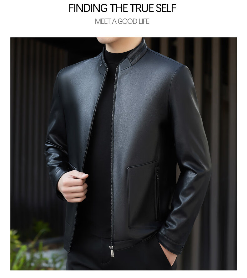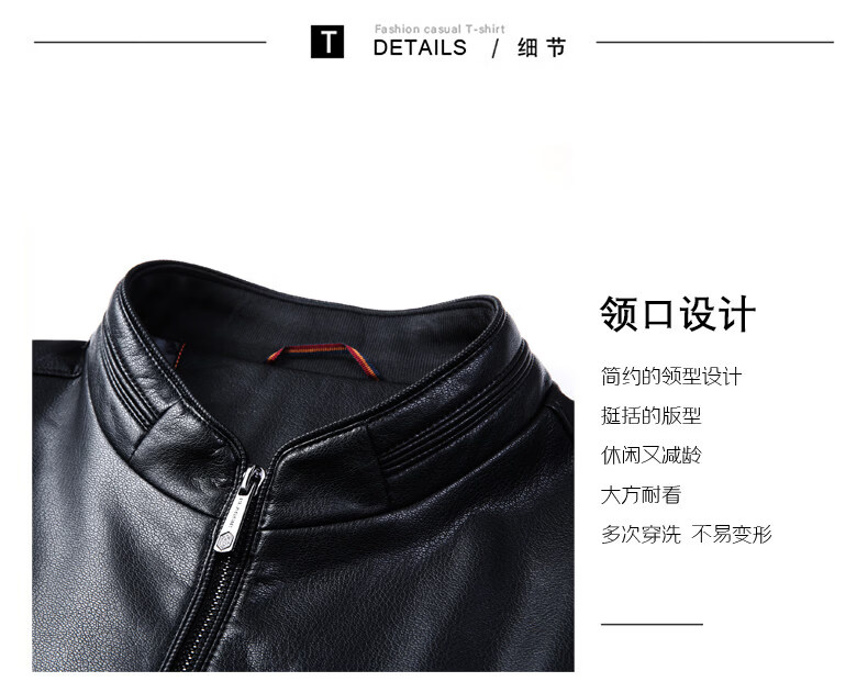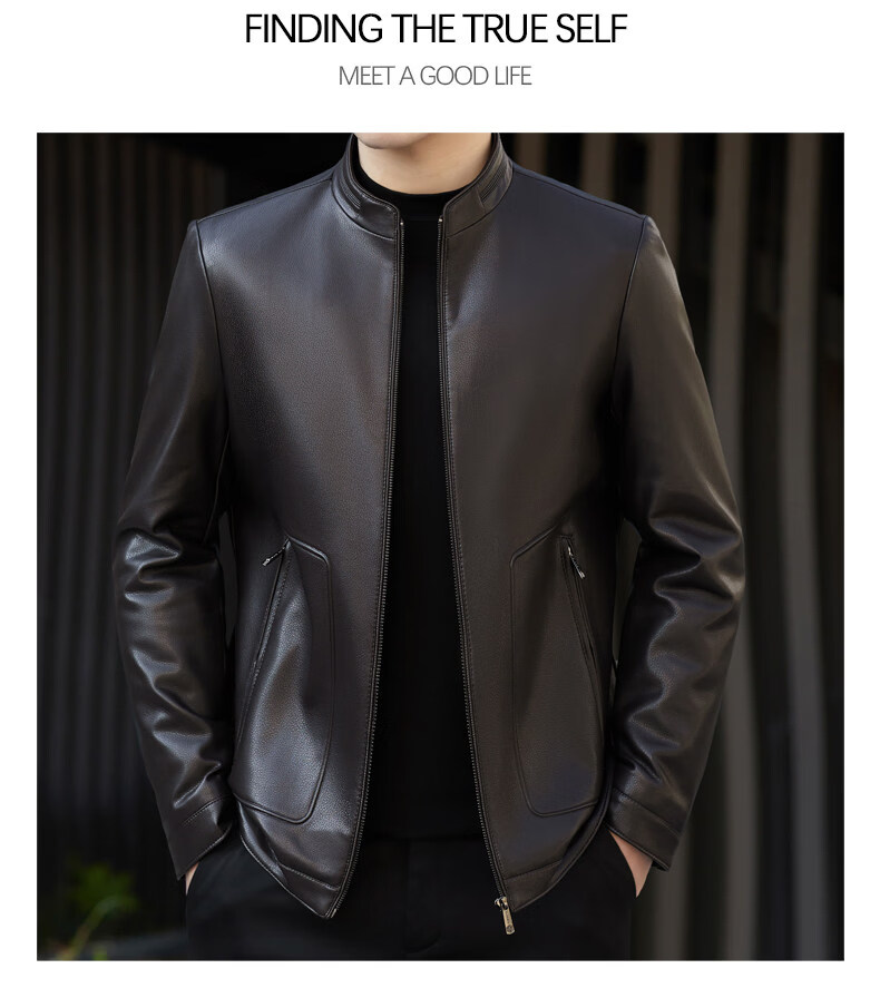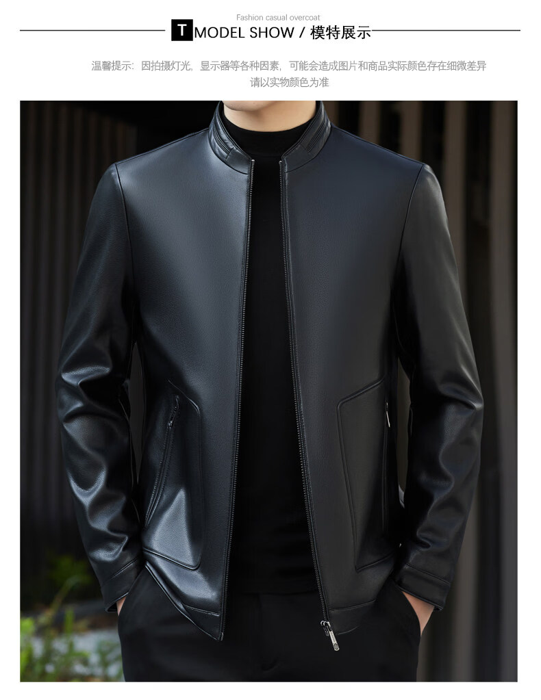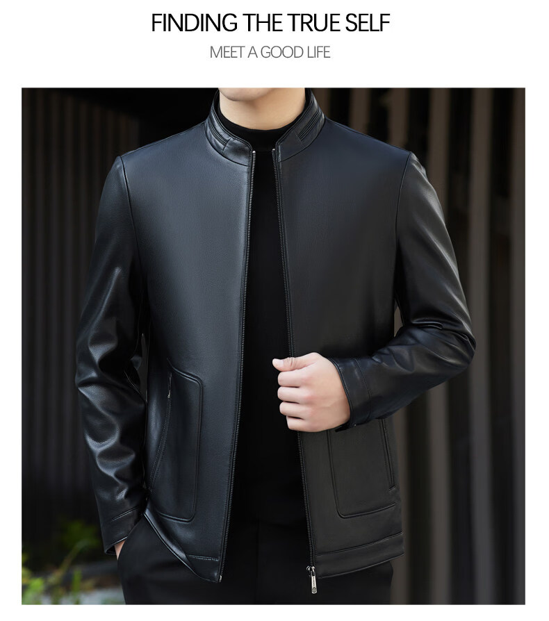 JEEP SPIRIT leather jacket business casual men's winter lapel casual daddy sheepskin jacket middle-aged short leather jacket black S 165