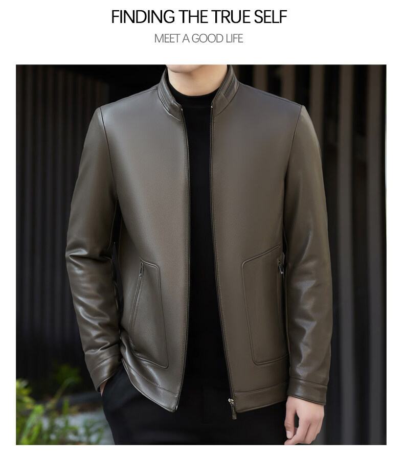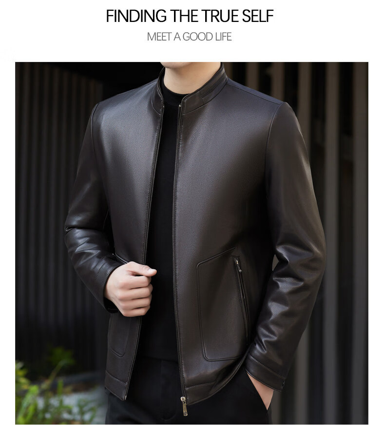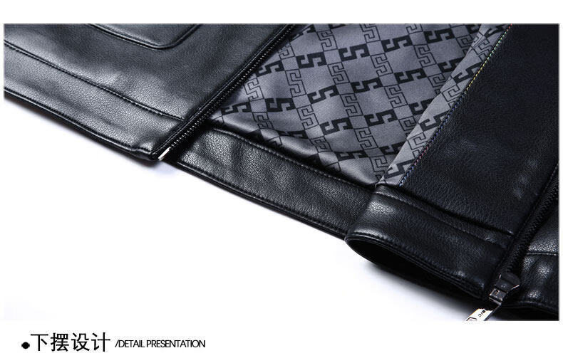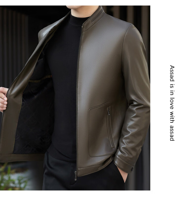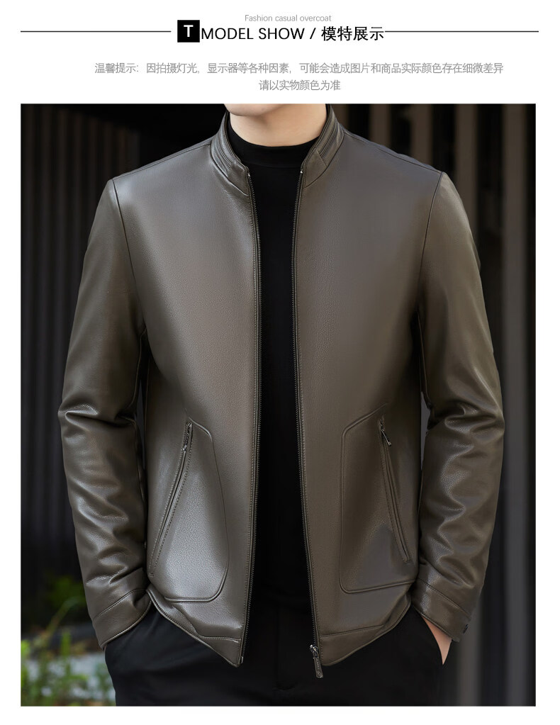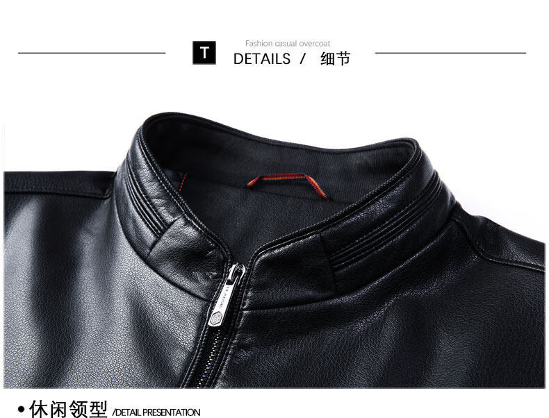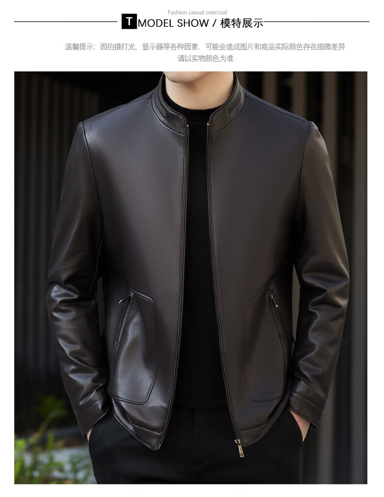 JEEP SPIRIT leather jacket business casual men's winter lapel casual daddy sheepskin jacket middle-aged short leather jacket black S 165