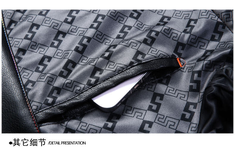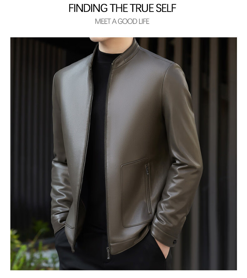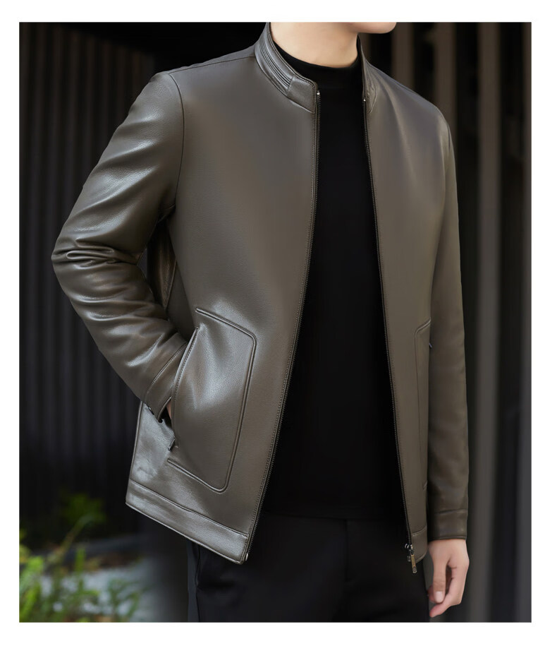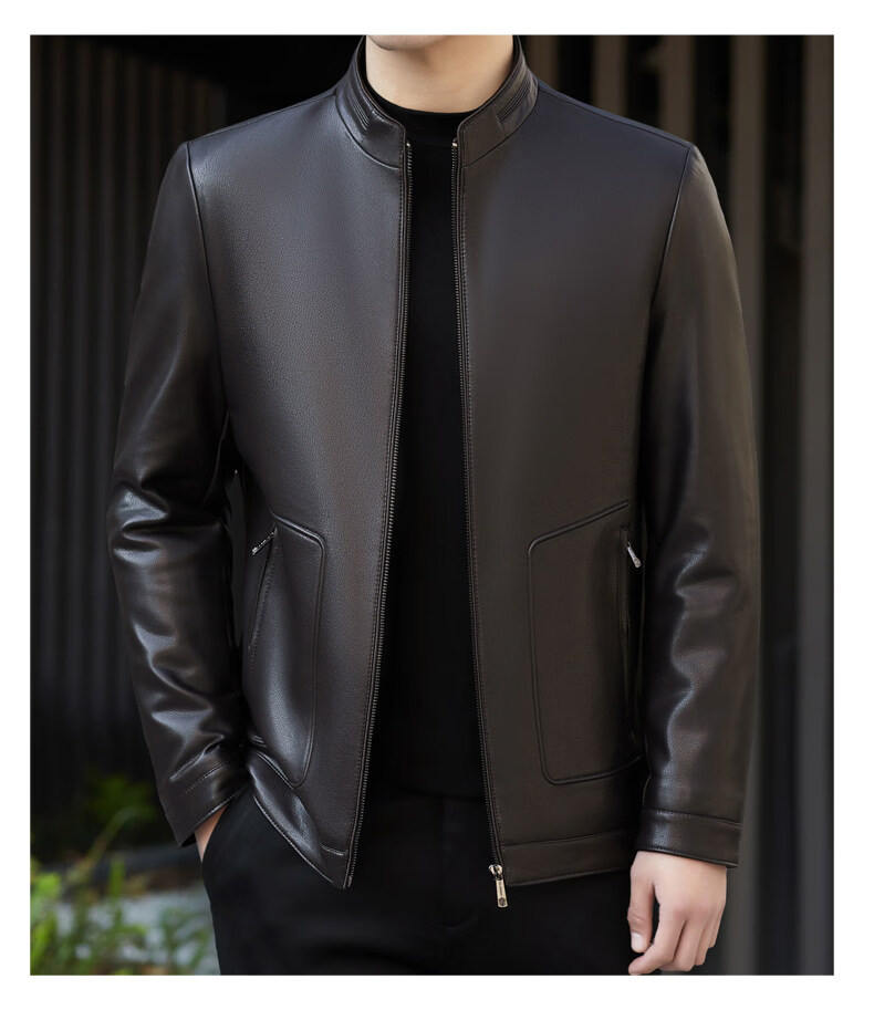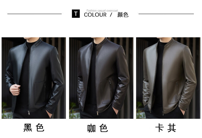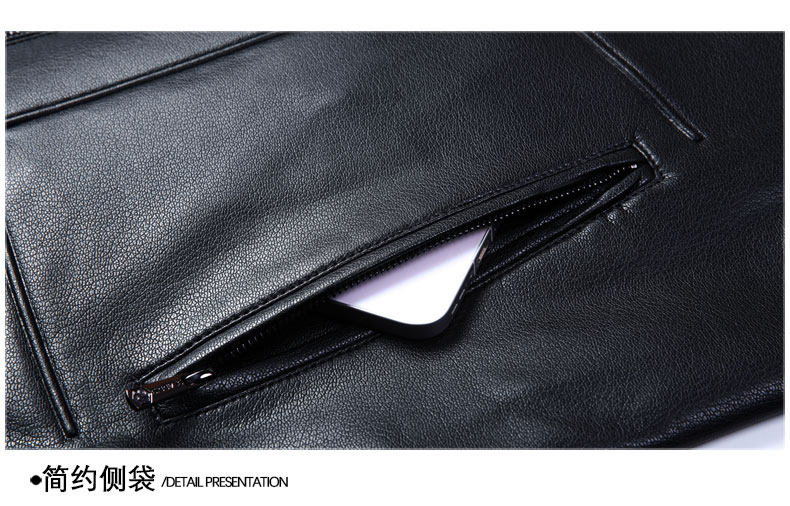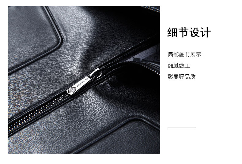 JEEP SPIRIT leather jacket business casual men's winter lapel casual daddy sheepskin jacket middle-aged short leather jacket black S 165