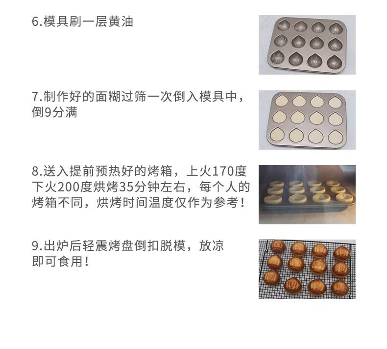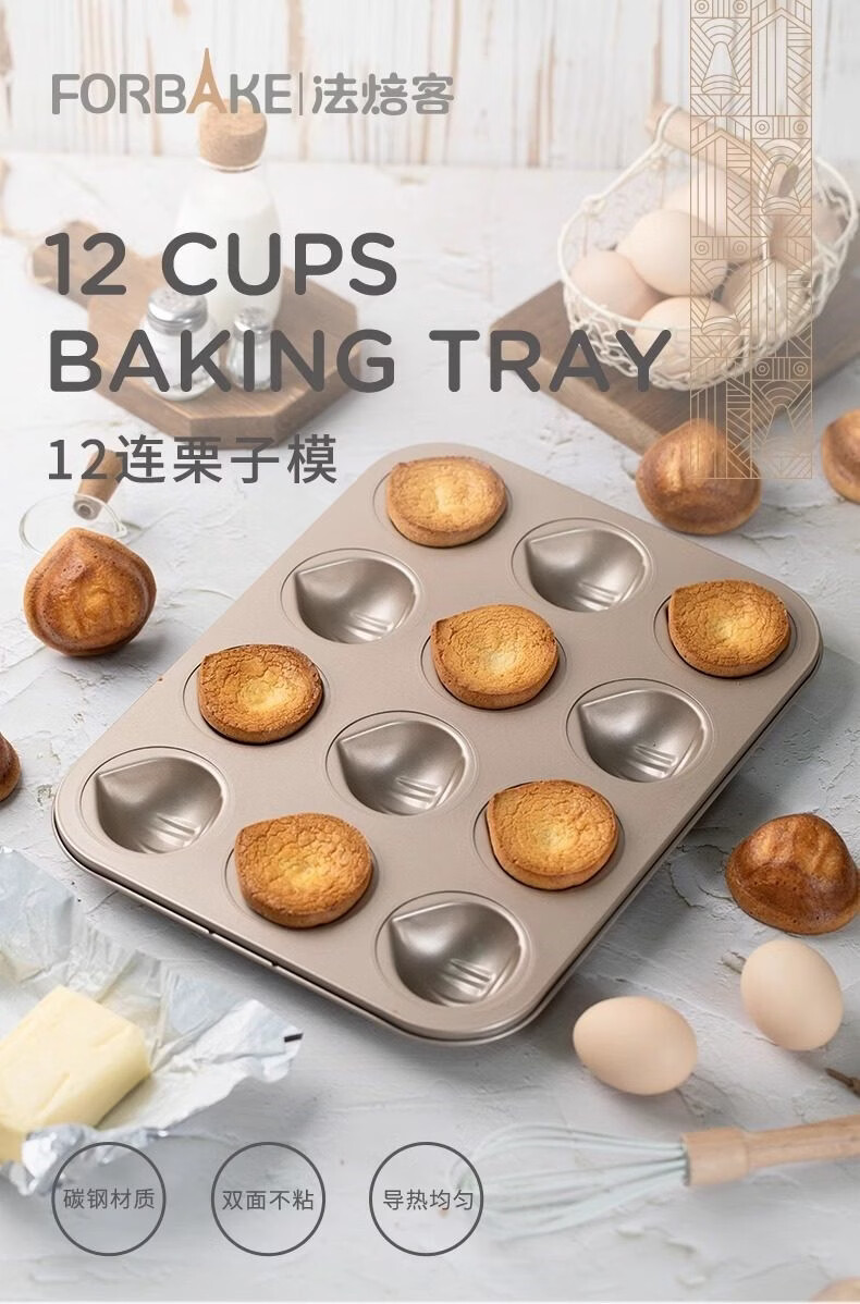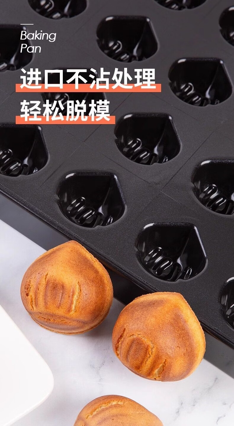 Sanneng internet celebrity butter rice cake mold non-stick chestnut madeleine mold 54-piece baking pan roasted chestnut shell grinding tool 30-piece chestnut mold one nano ceramic non-stick DZA 1 inch